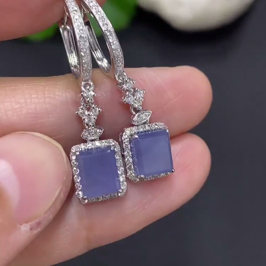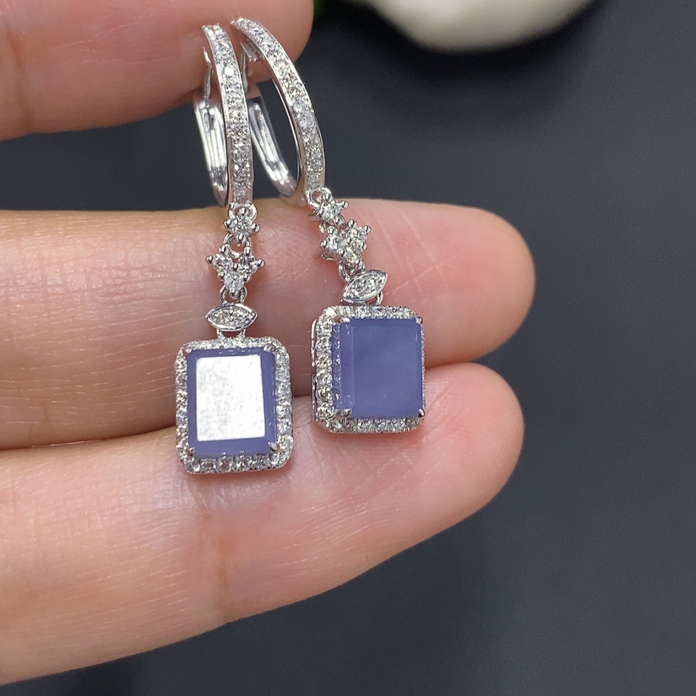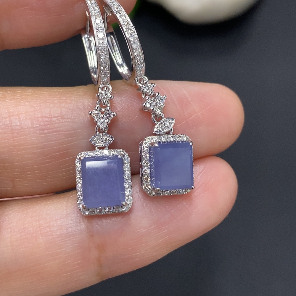Jadeite earrings set in 18K gold with a total weight of approximately 4 grams (accented with diamonds)