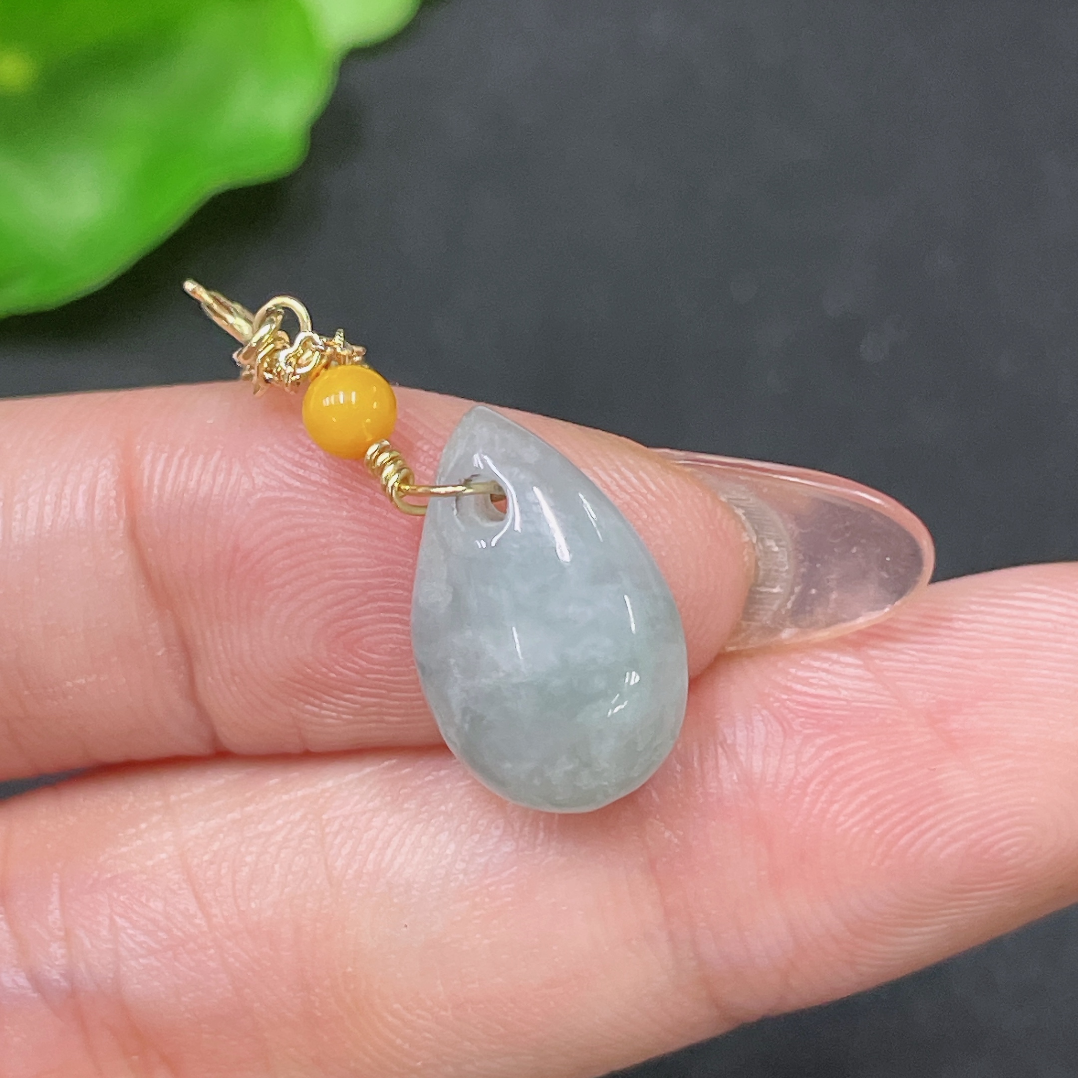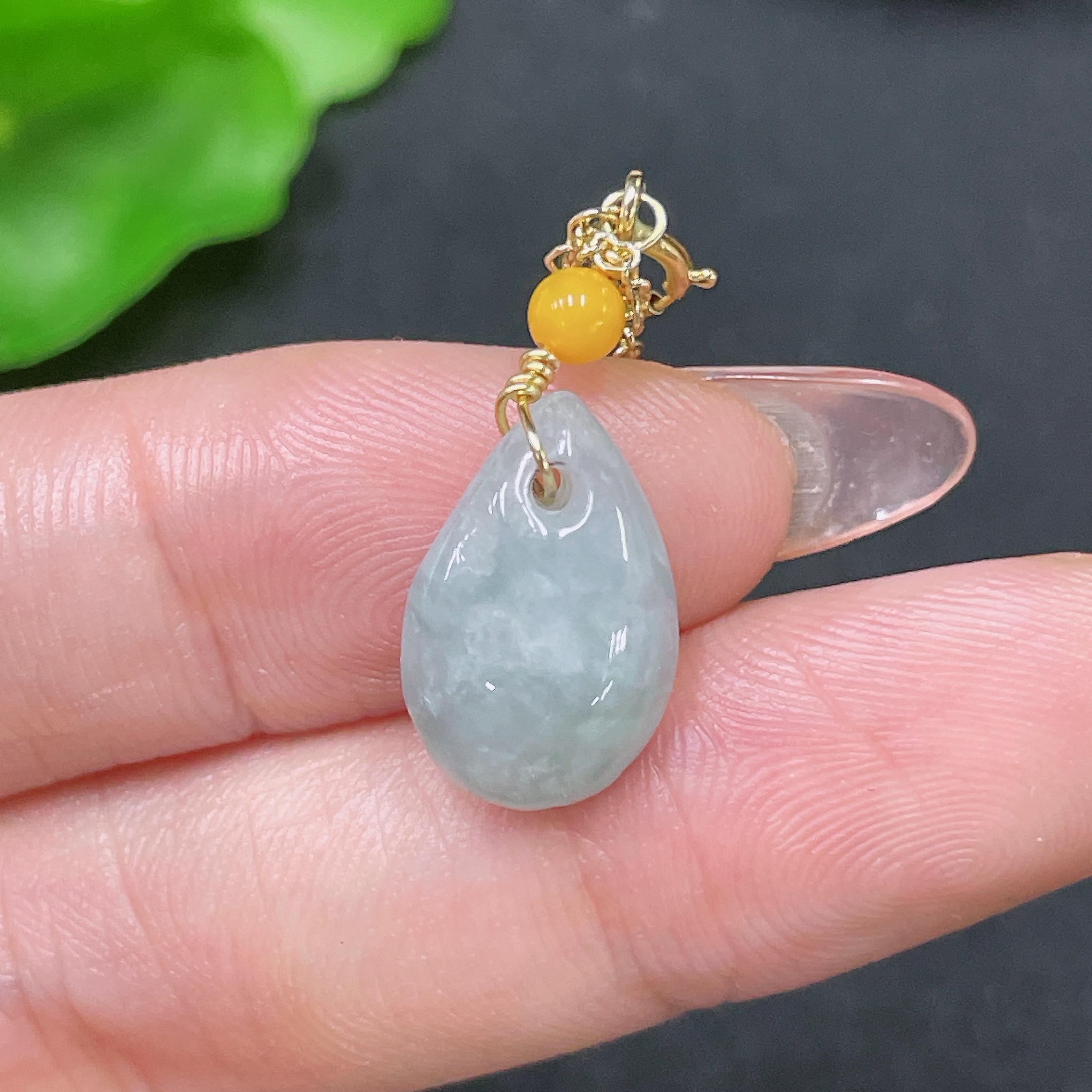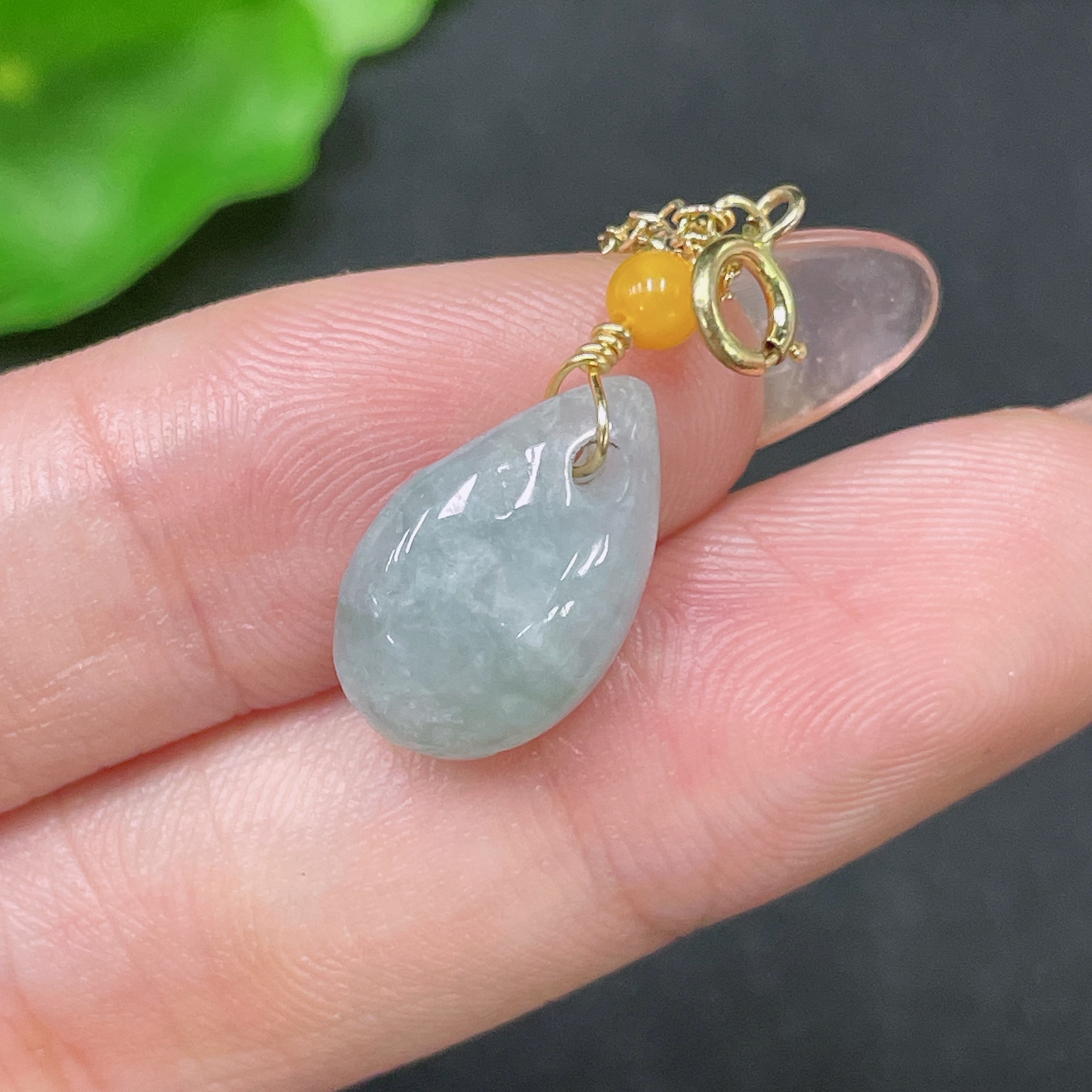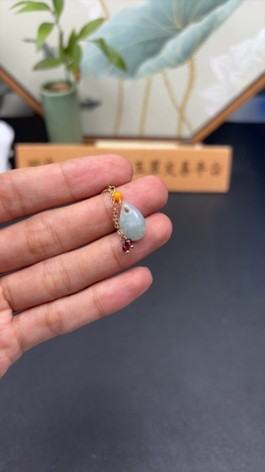 Jadeite Pendant Non-Gold Total Weight Approx. 1.76g with Beads Amber+Garnet