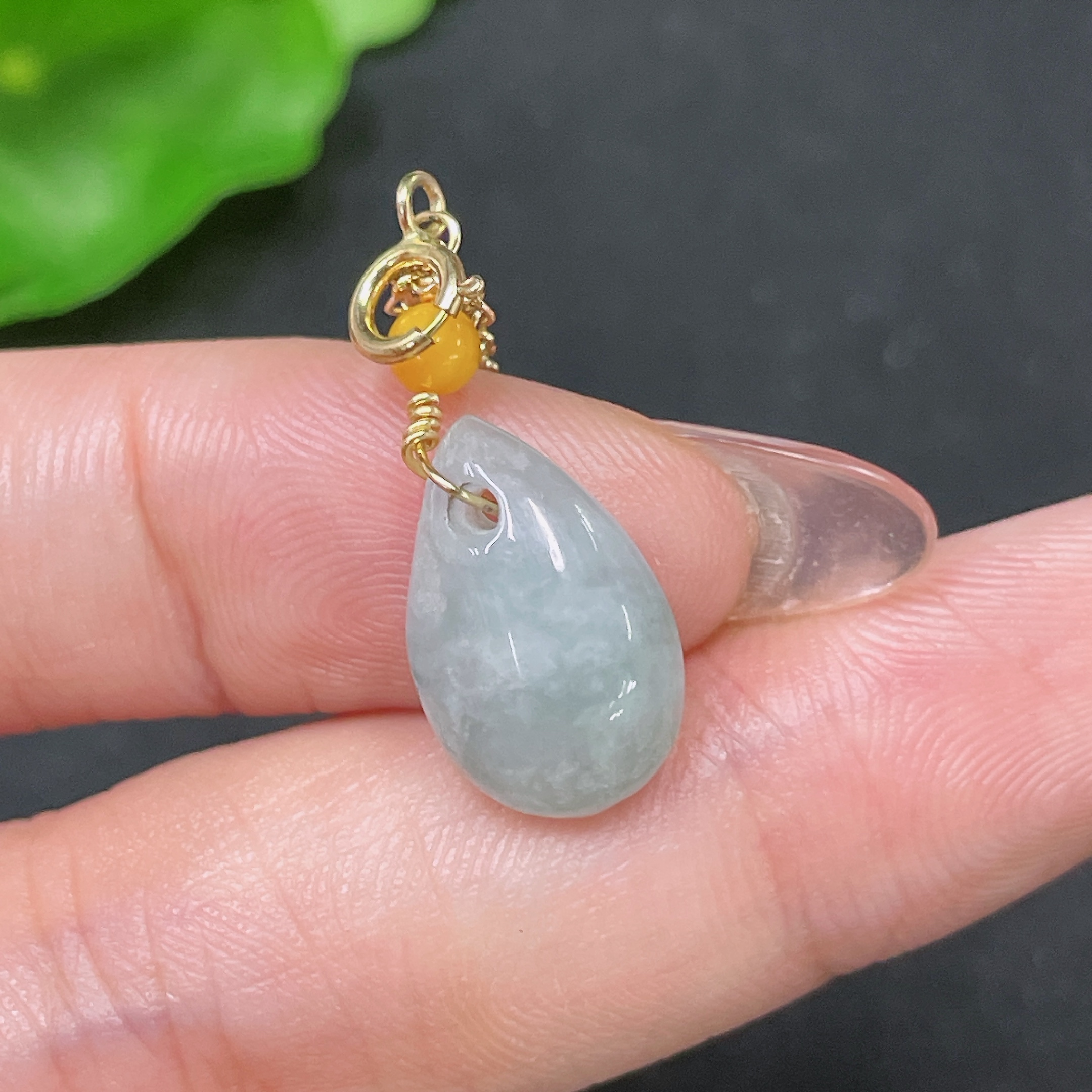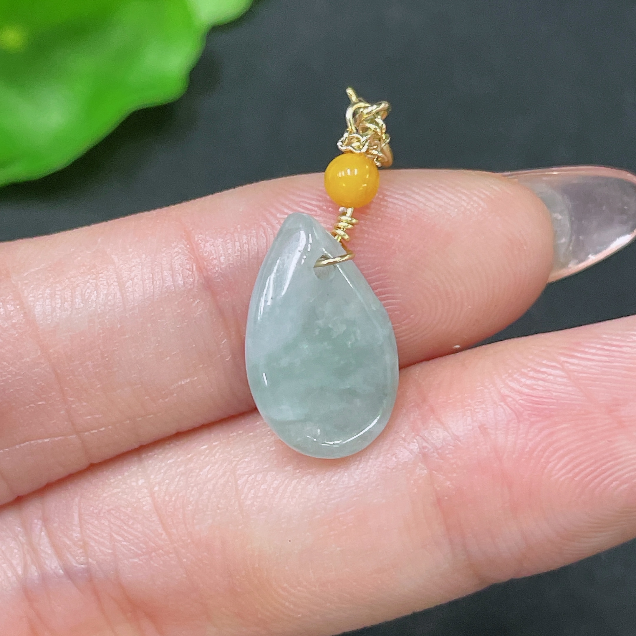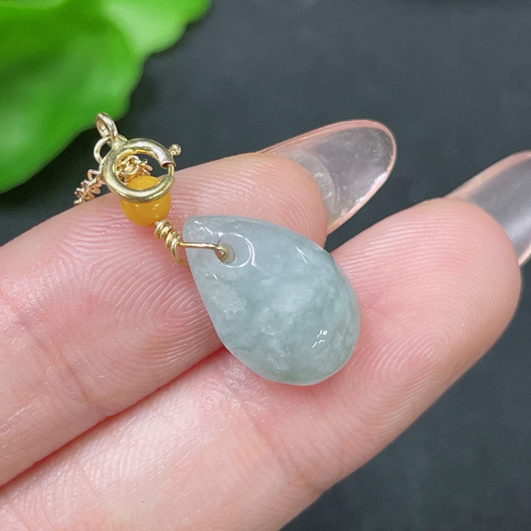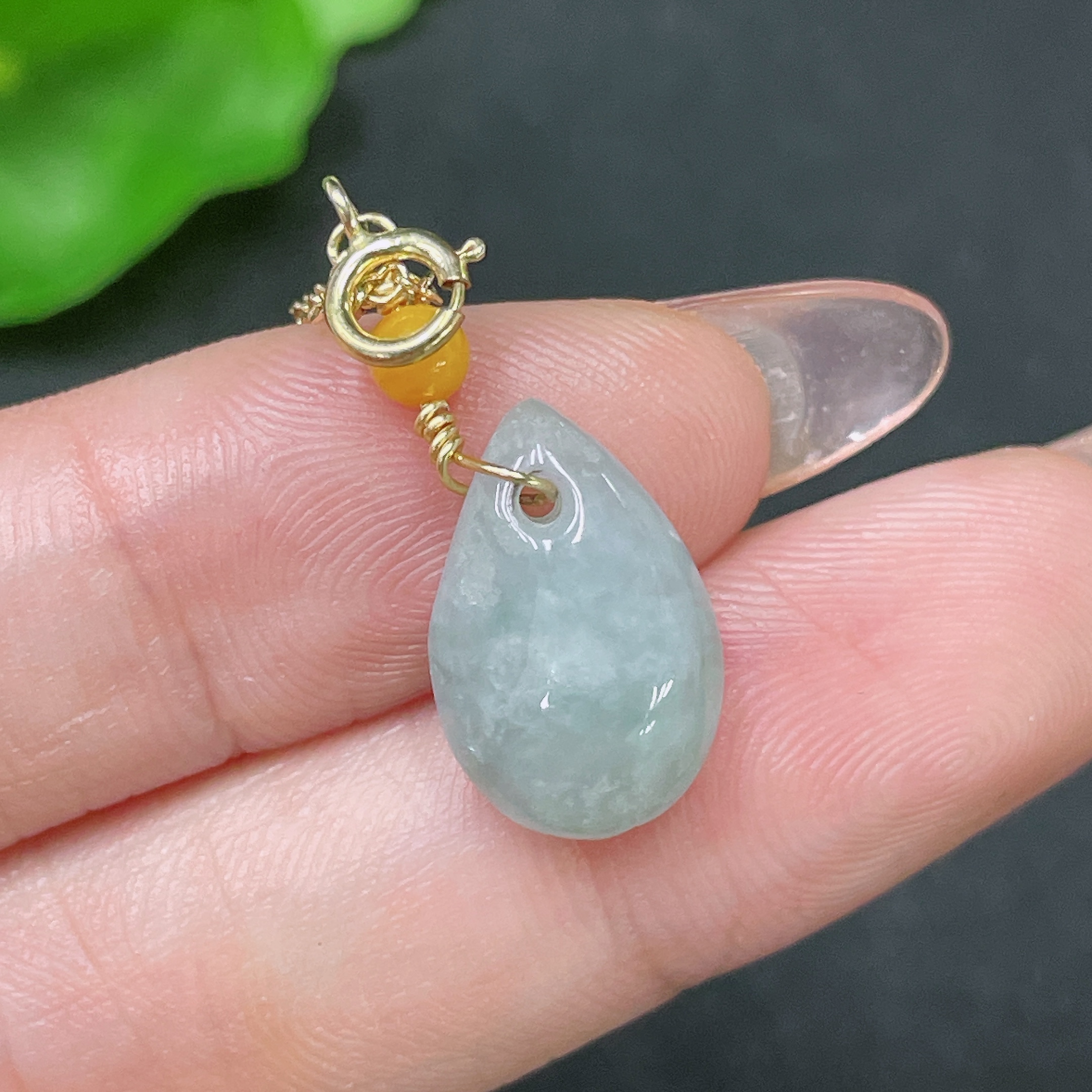 Jadeite Pendant Non-Gold Total Weight Approx. 1.76g with Beads Amber+Garnet