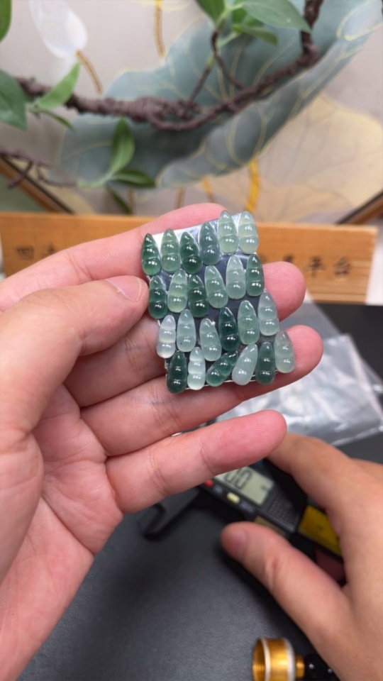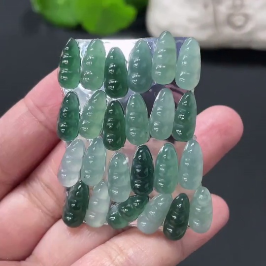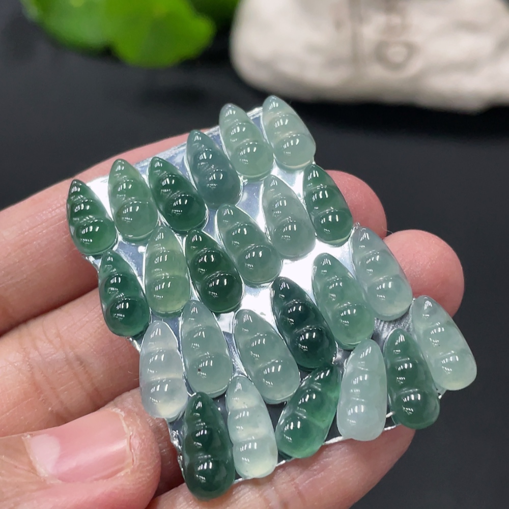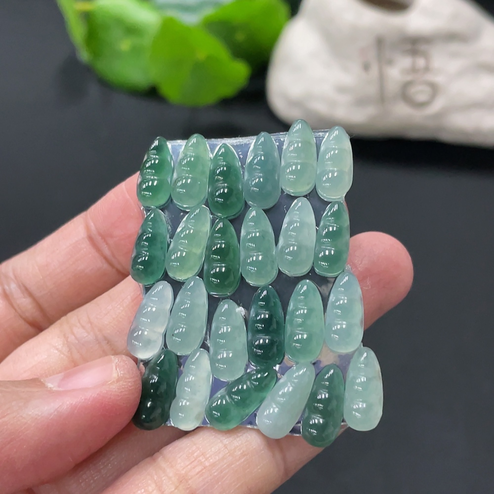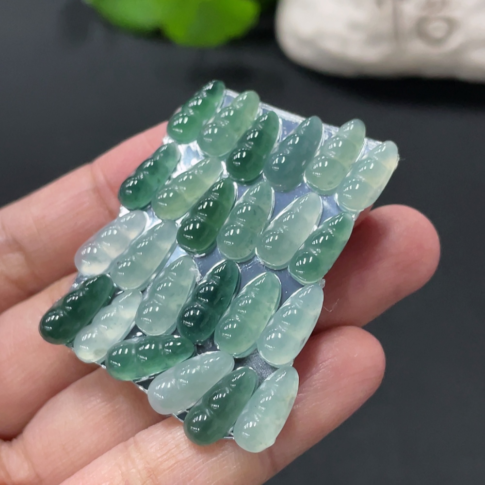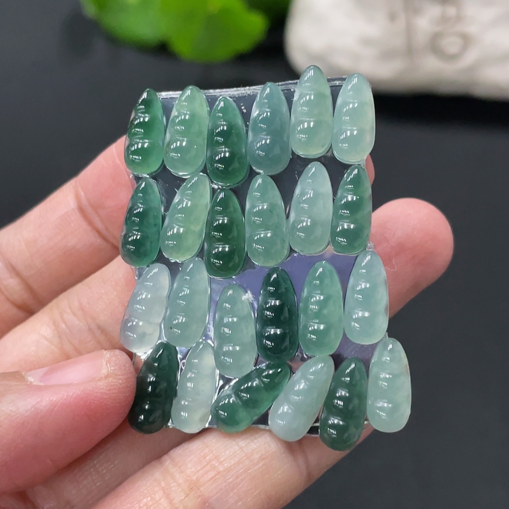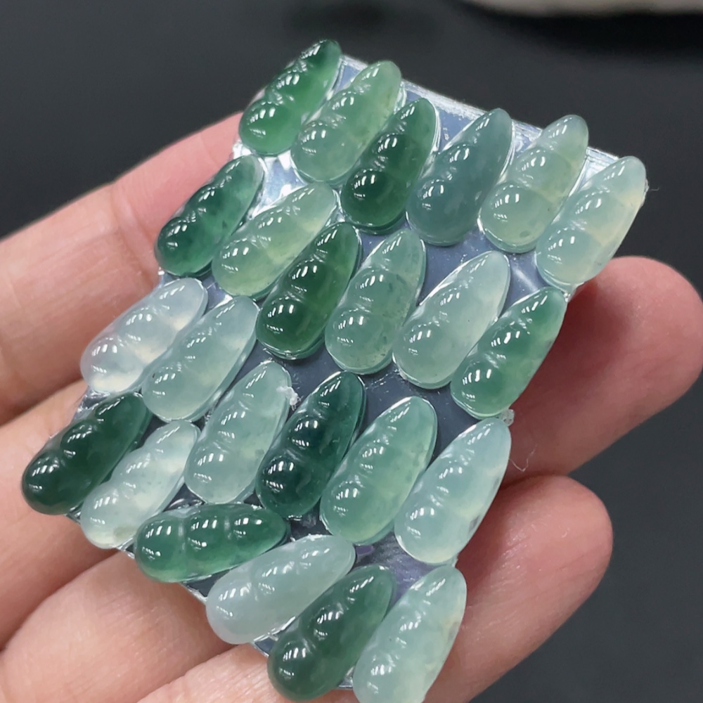 Jadeite Blessed Bean Inlaid Pieces Sell as a Lot Total Weight Approx. 7.67g (Including Paper)