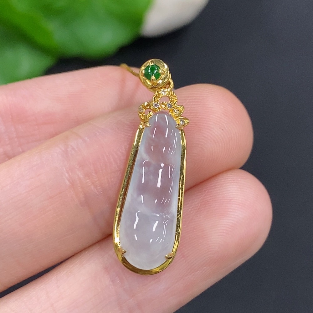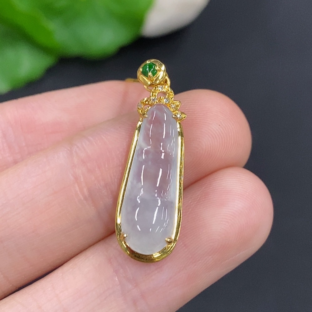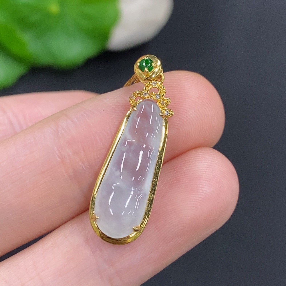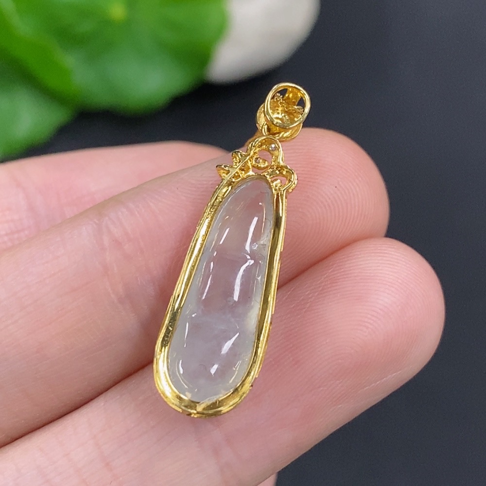 Jadeite Auspicious Bean Pendant Set in 18K Gold, Total Weight Approx. 2.4g (Including Chain), Accented with Diamonds