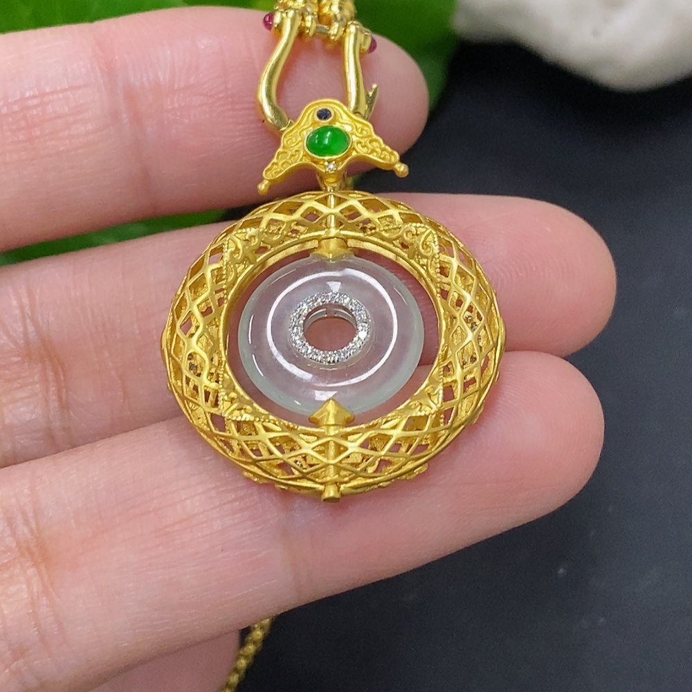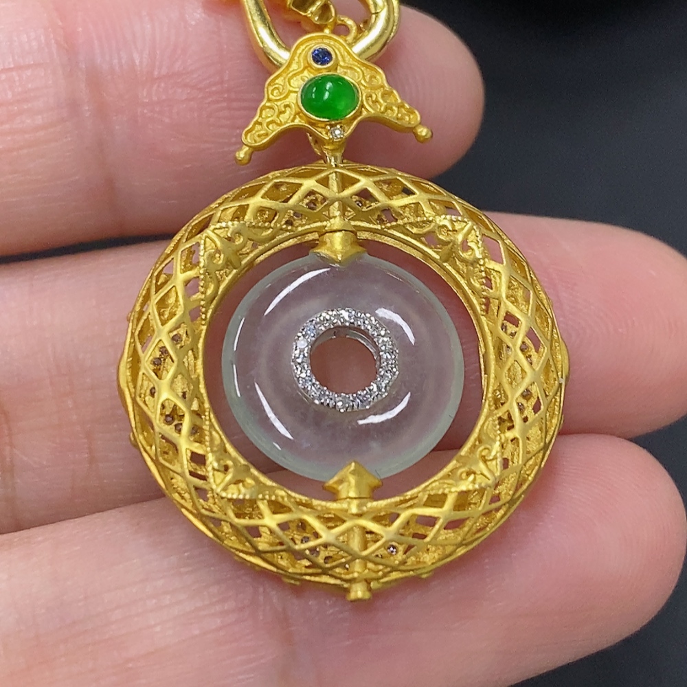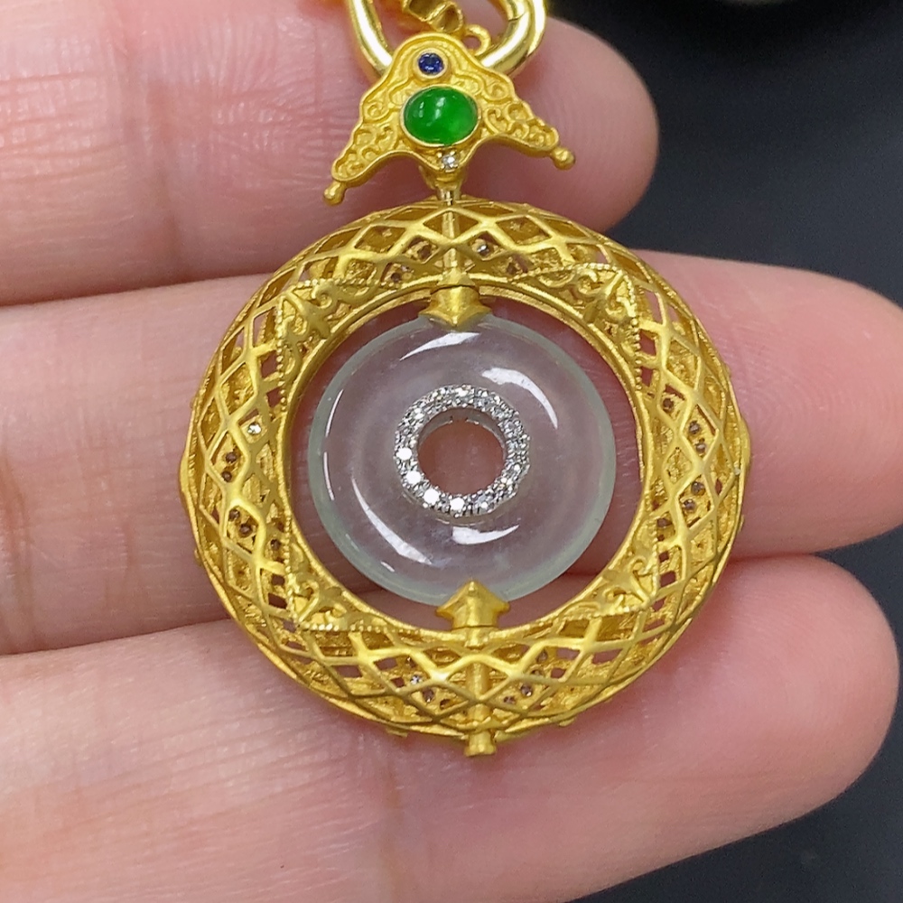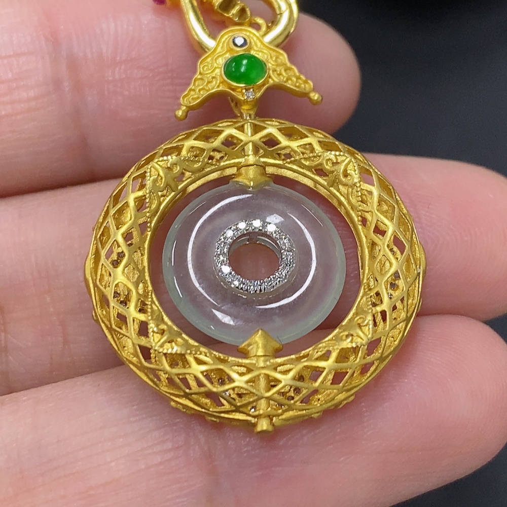 Jadeite inlaid pendant, 18K gold, total weight including chain approx. 7.5g (colorless accessory stones are diamonds)