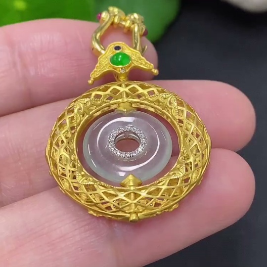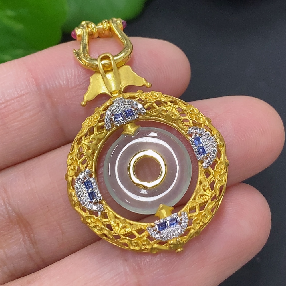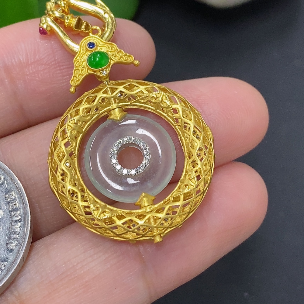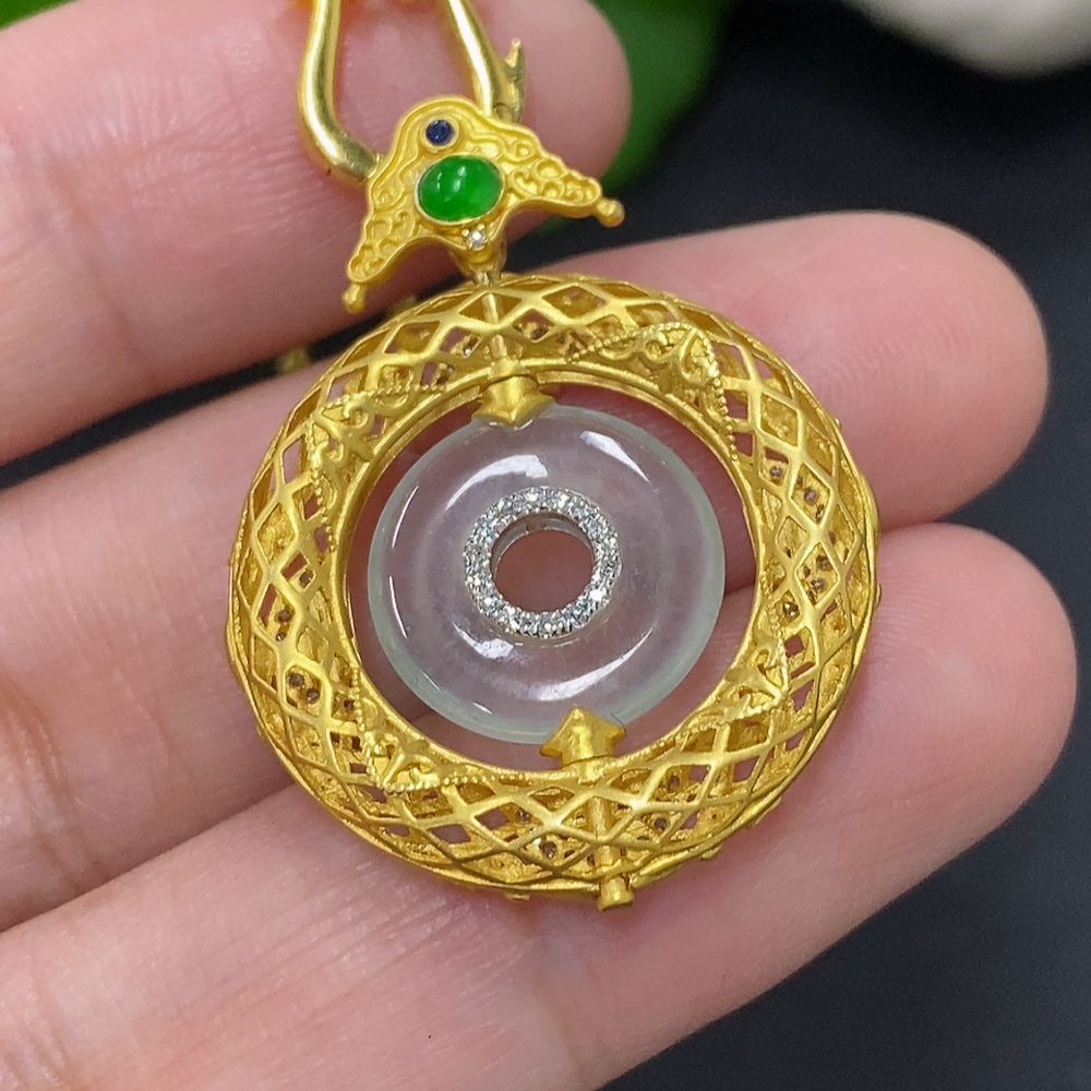 Jadeite inlaid pendant, 18K gold, total weight including chain approx. 7.5g (colorless accessory stones are diamonds)