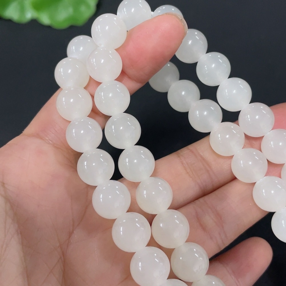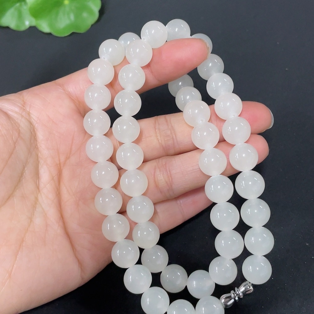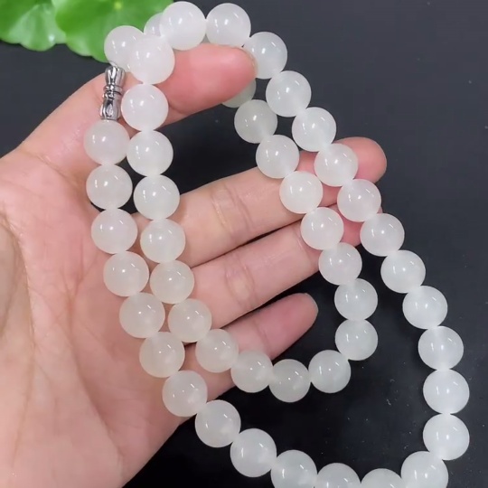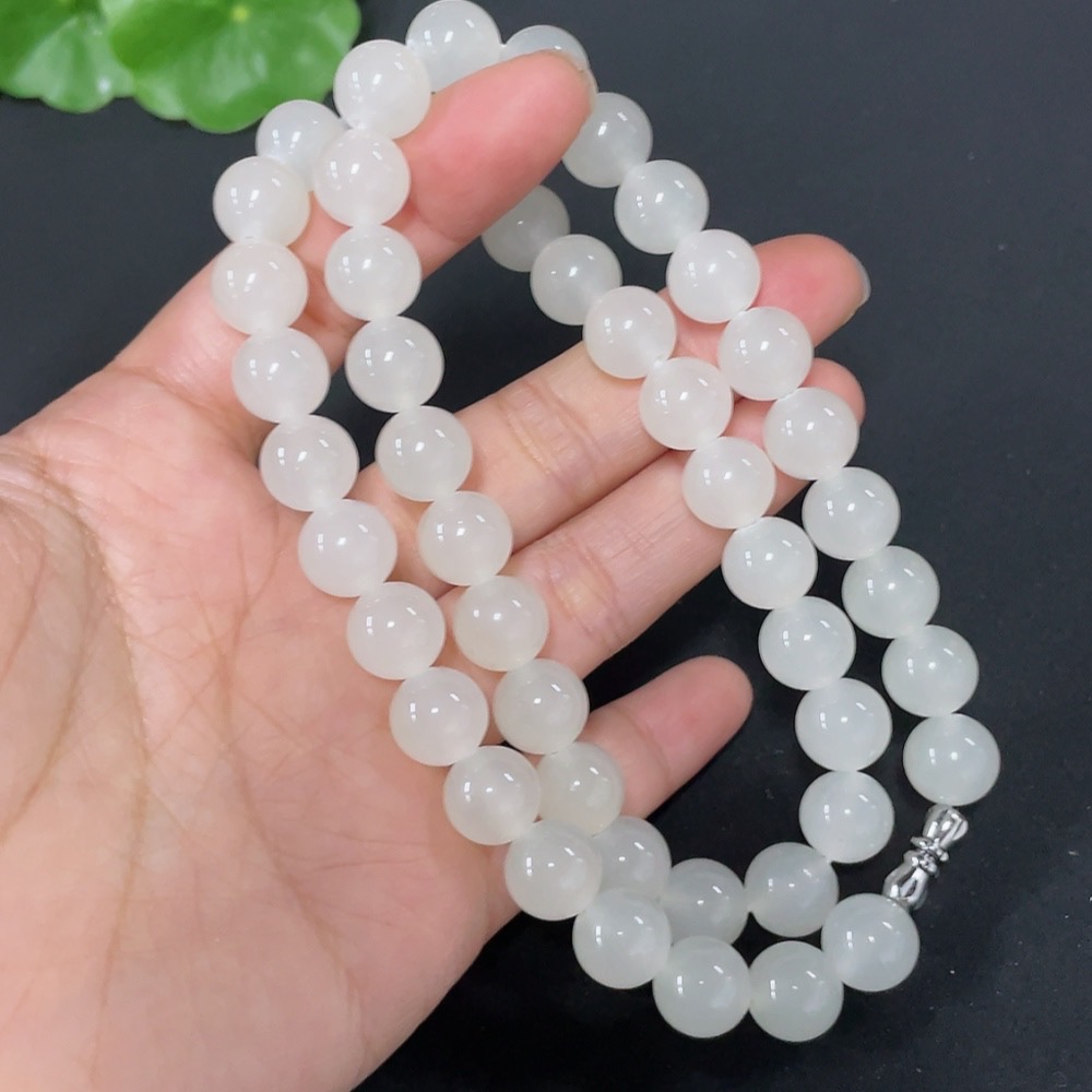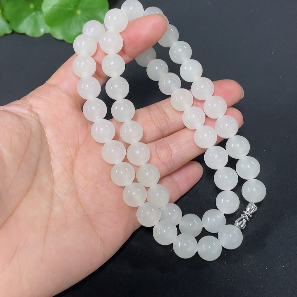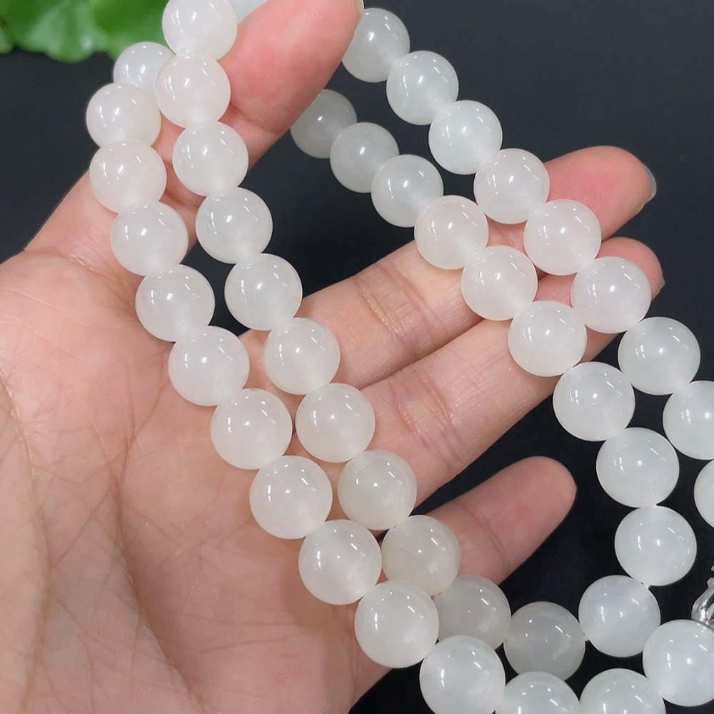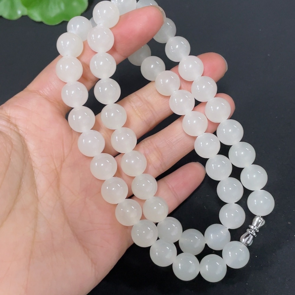 Hetian Jade Bead Necklace, Approx. 9.6mm, Non-Gold, Total Weight Approx. 70.8g