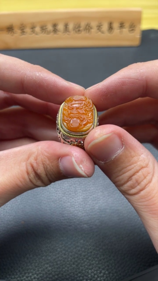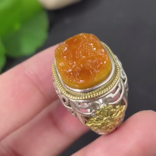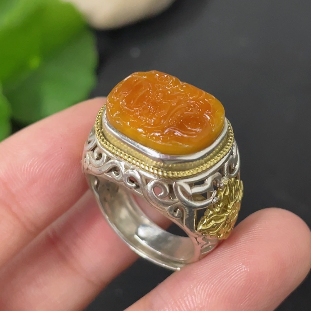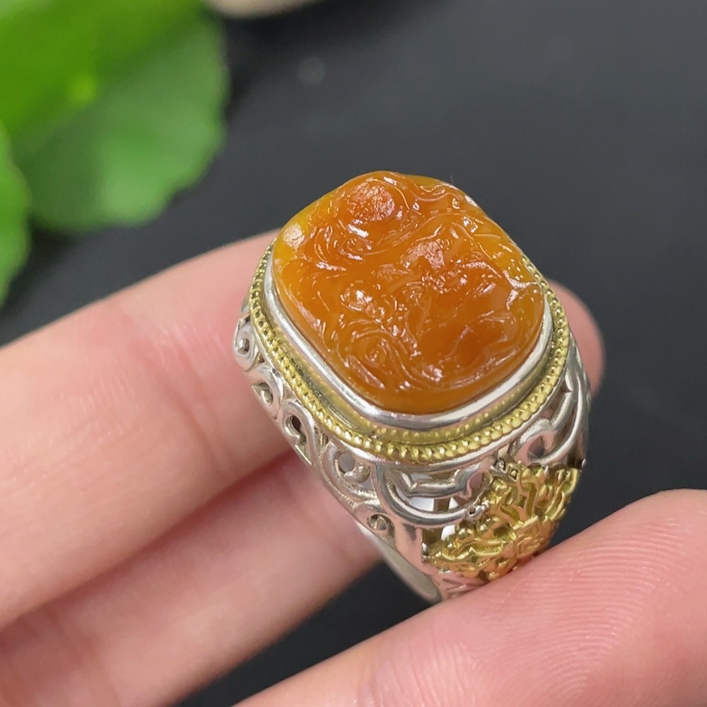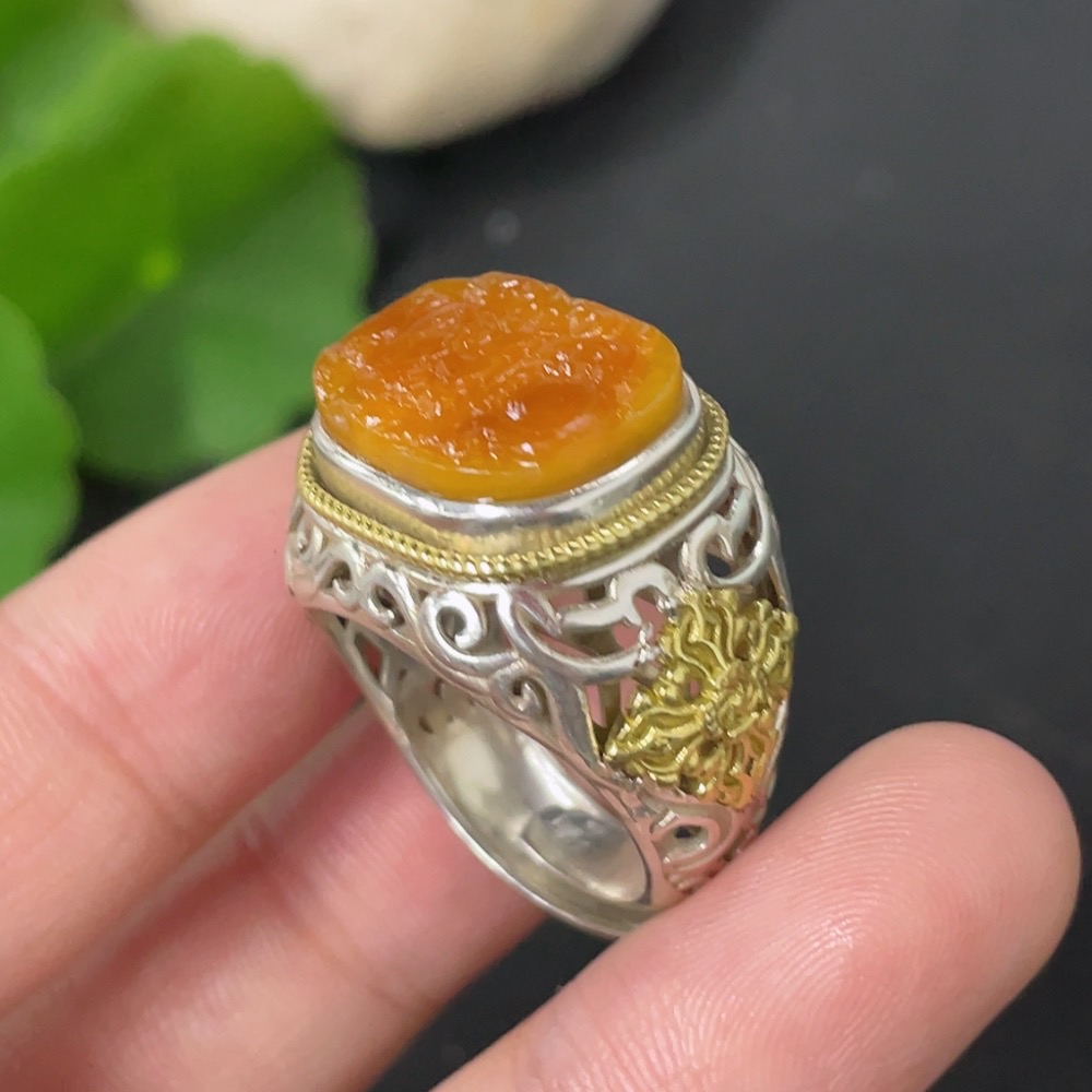 Hetian Jade Inlaid Adjustable Ring, Undetermined Skin Color Origin, Non-Gold, Total Weight Approximately 10.2g