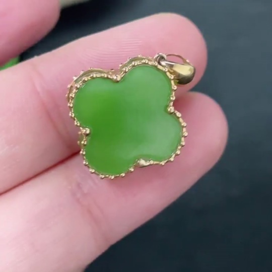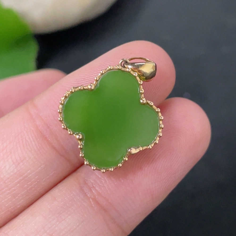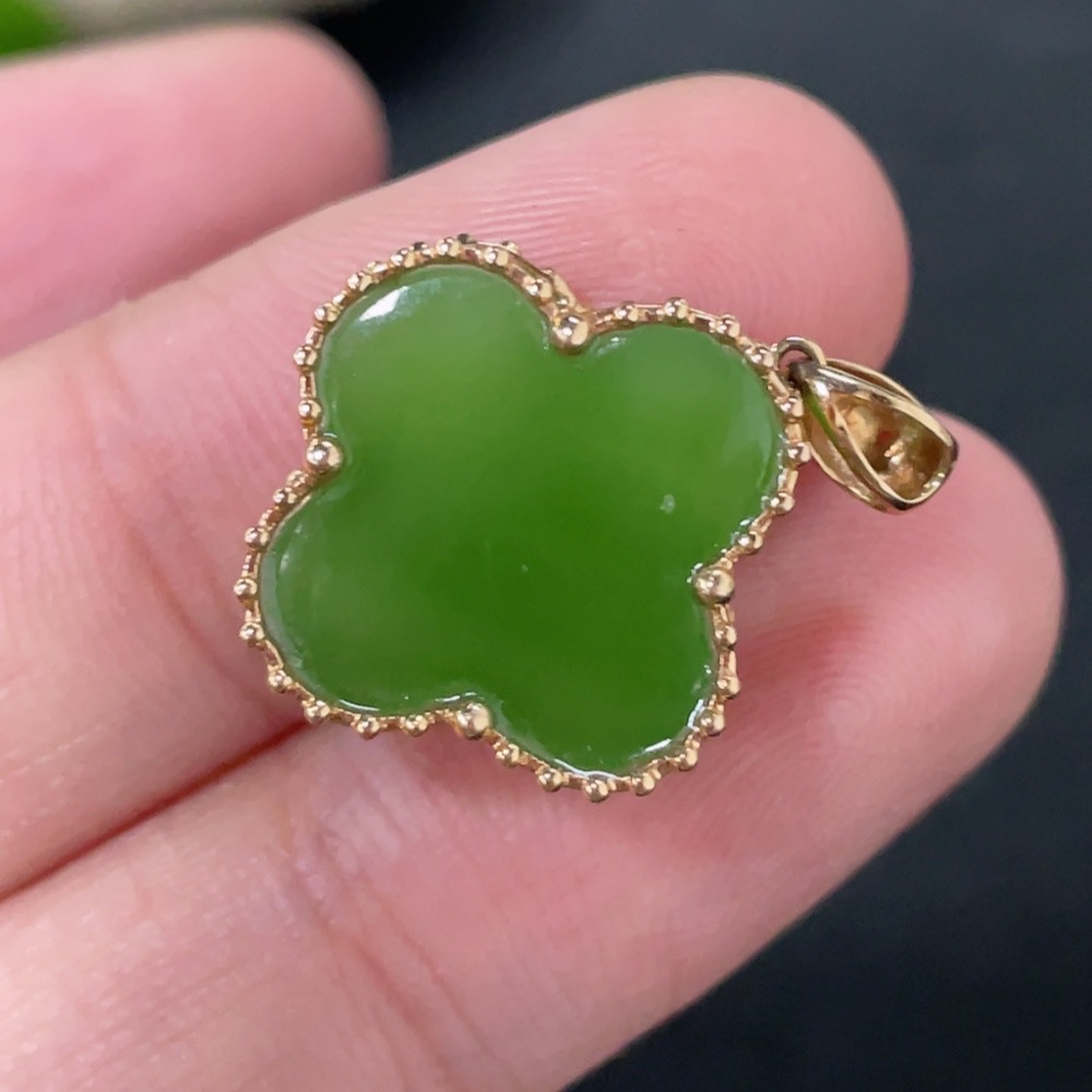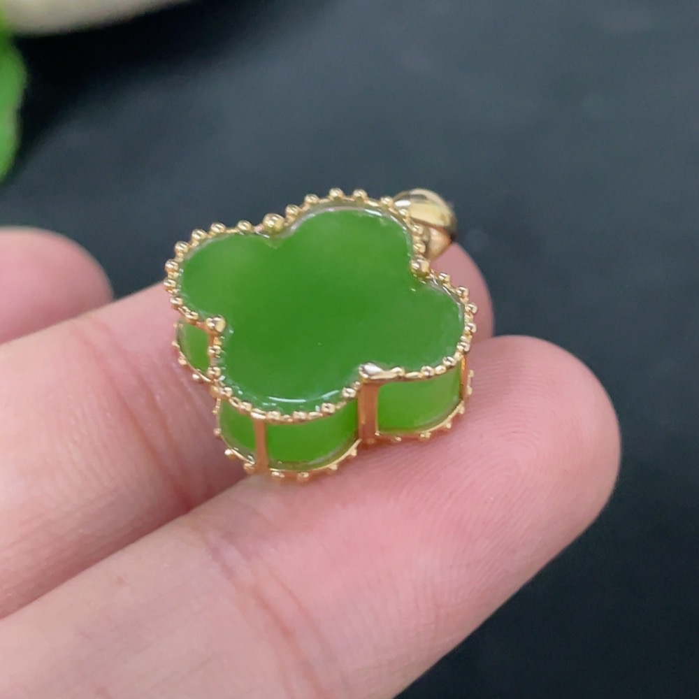 Hetian Jade Jasper Inlaid Pendant Clover 18K Gold Total Weight Approx. 2.7g