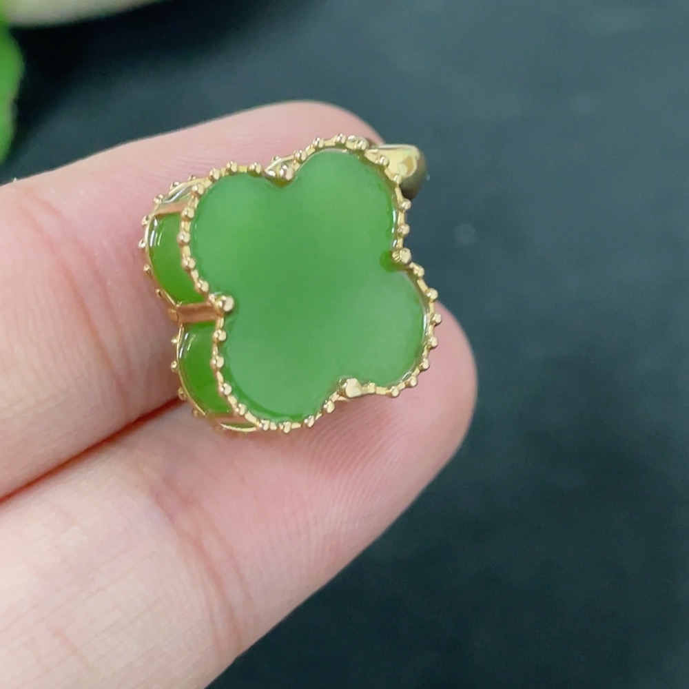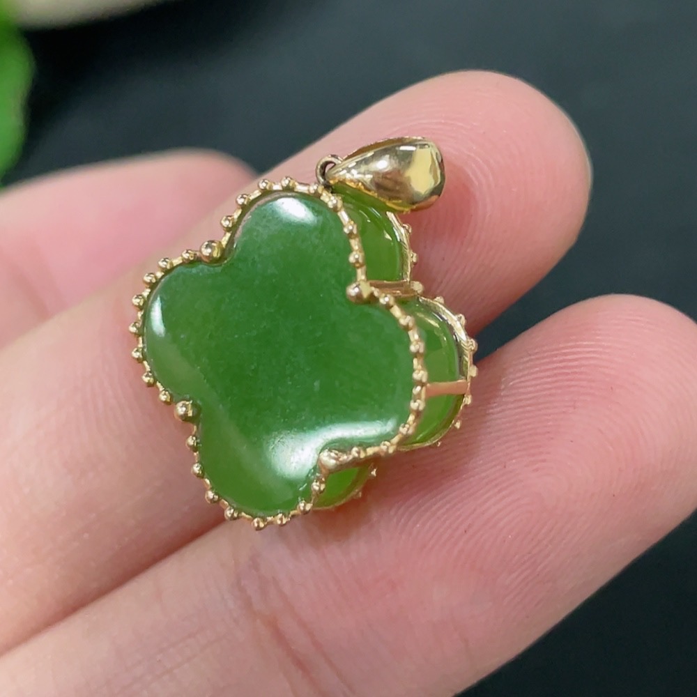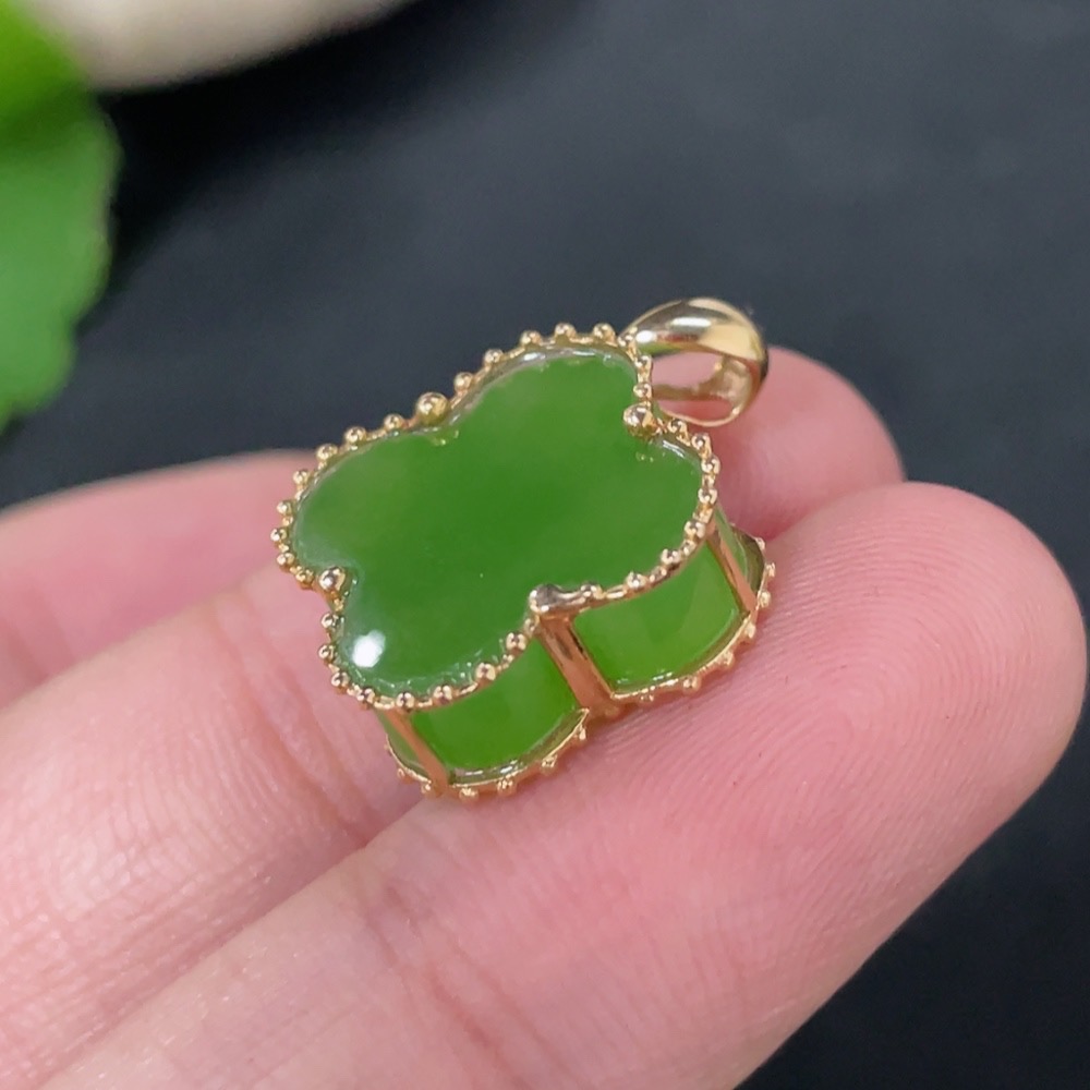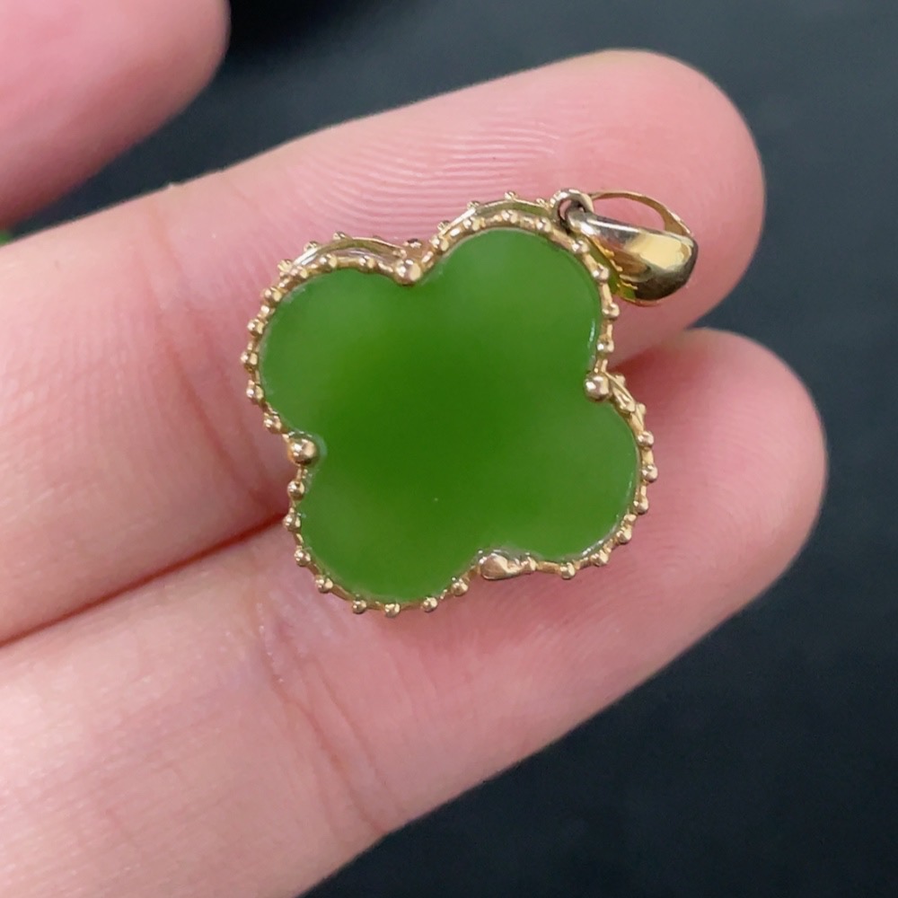 Hetian Jade Jasper Inlaid Pendant Clover 18K Gold Total Weight Approx. 2.7g