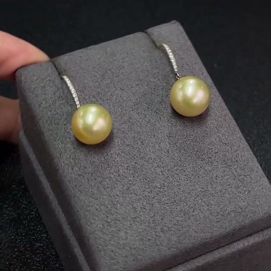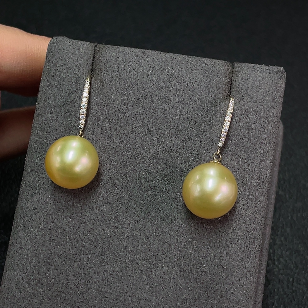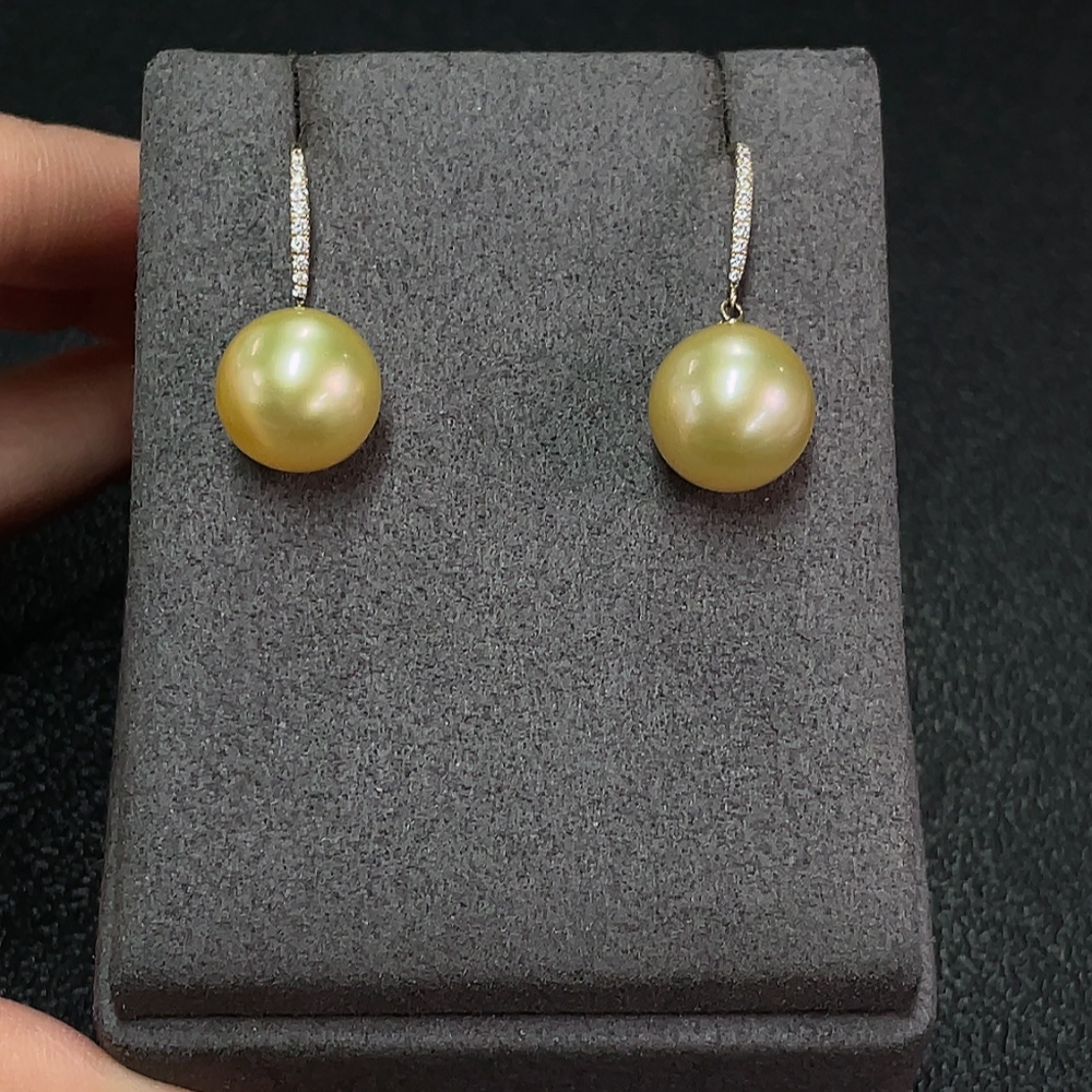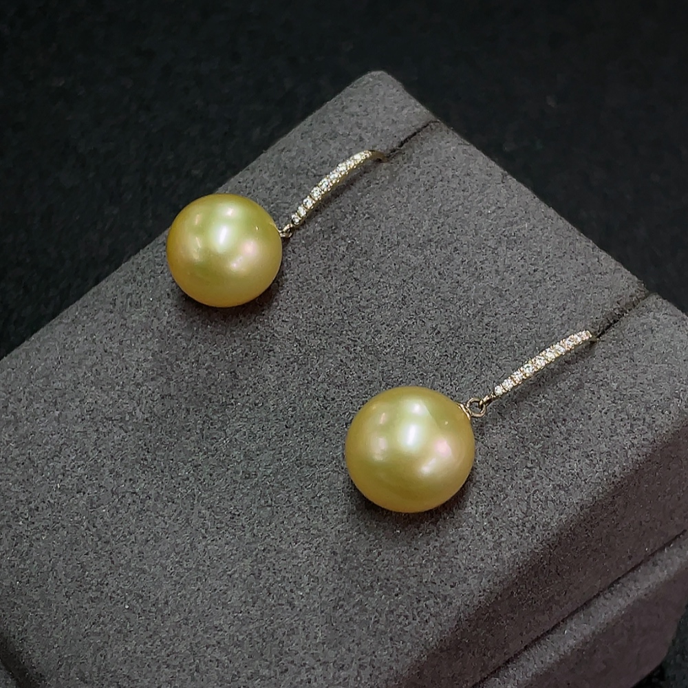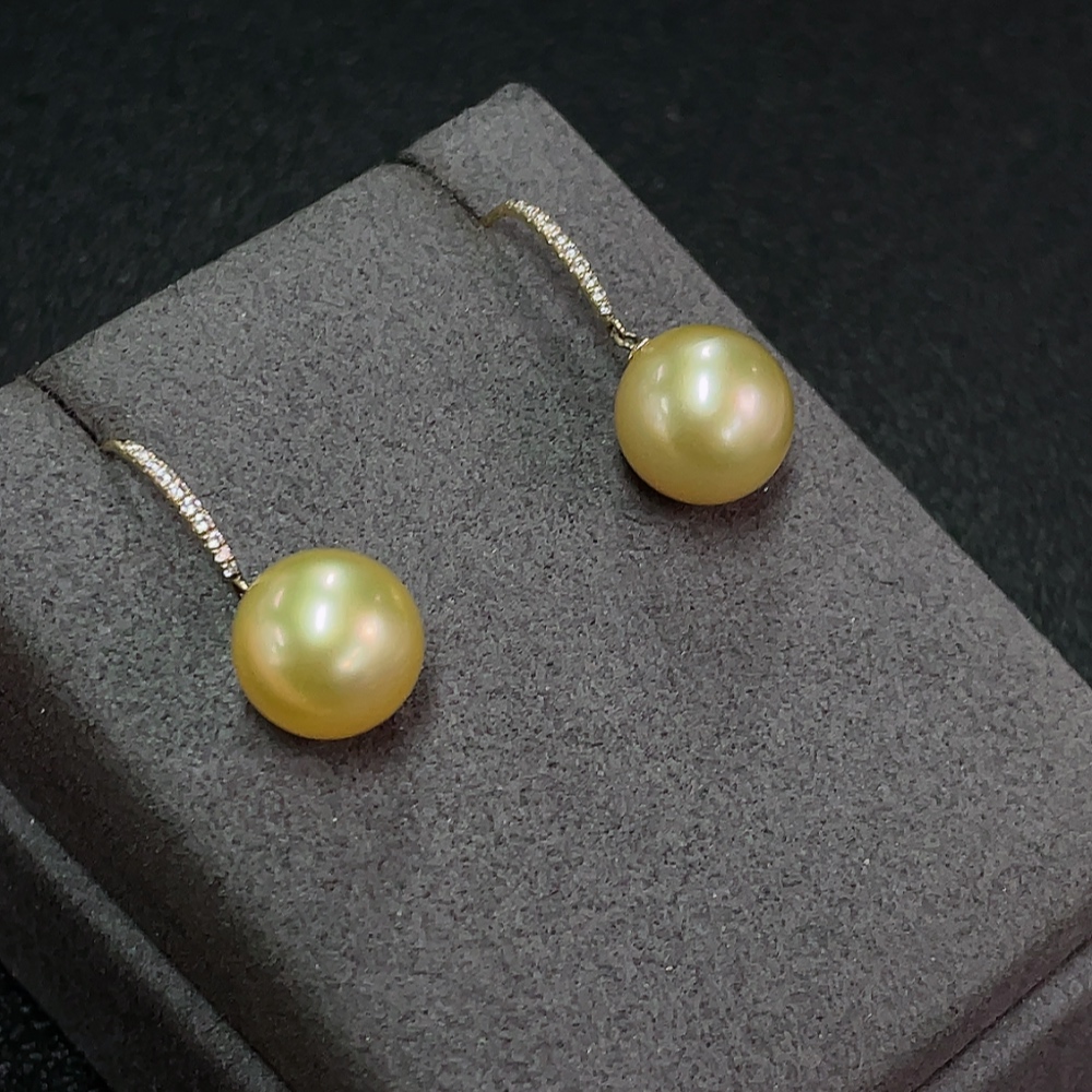 Seawater Pearl Earrings, Color Origin Undetermined, Gold Content Au58%, Total Weight Approx. 5.38g, Size About 11.6mm