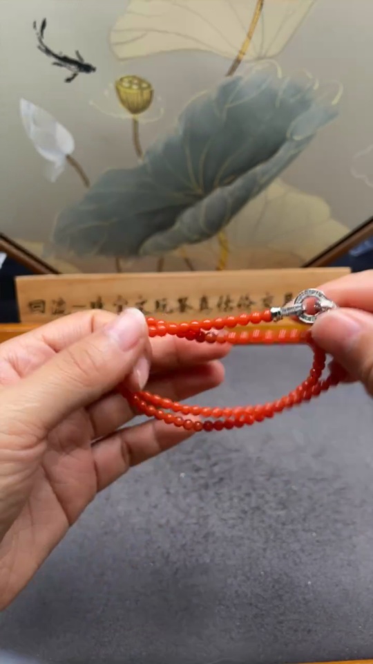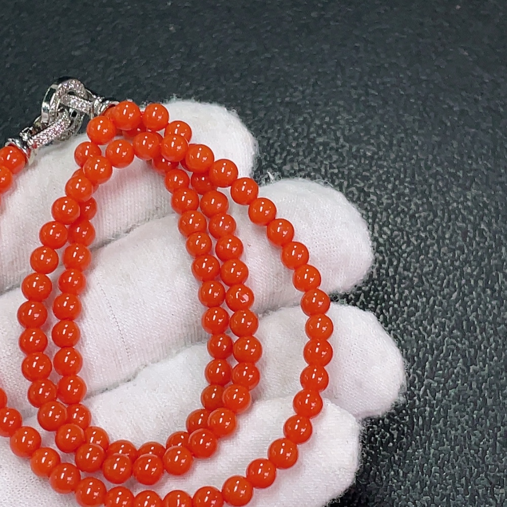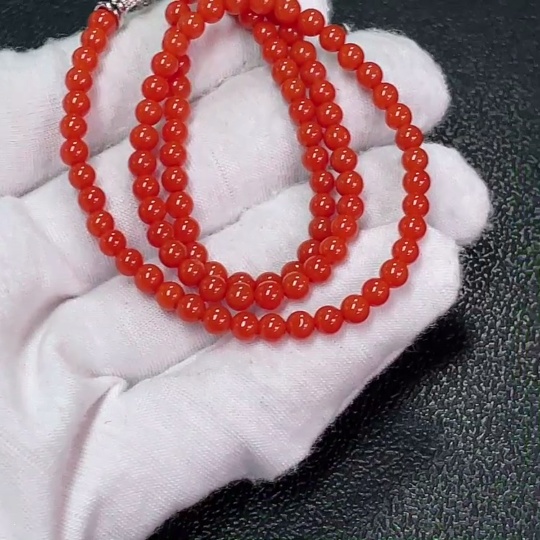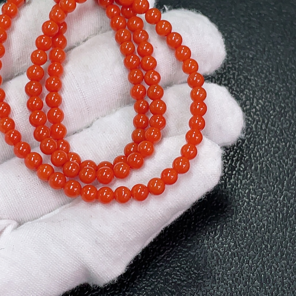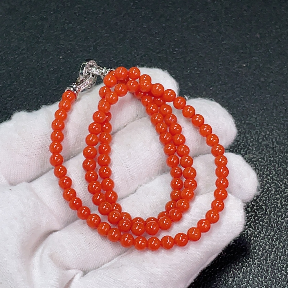 Red Agate Bead Necklace with Visible Organic Matter, Total Weight Approx. 10.61g, 4mm Beads, Non-Gold