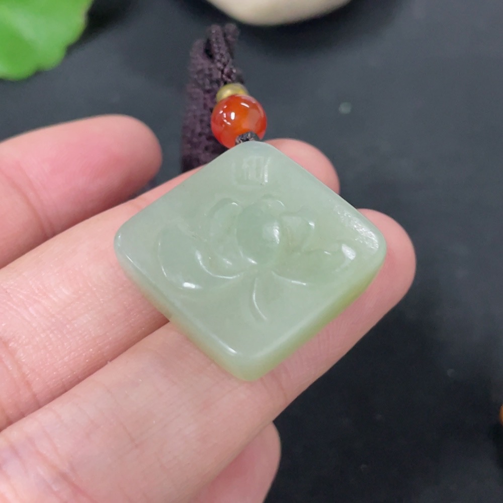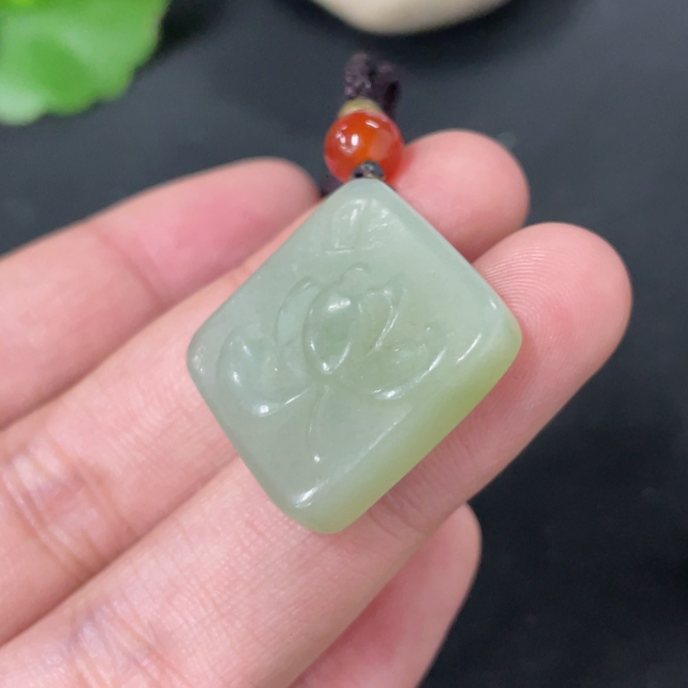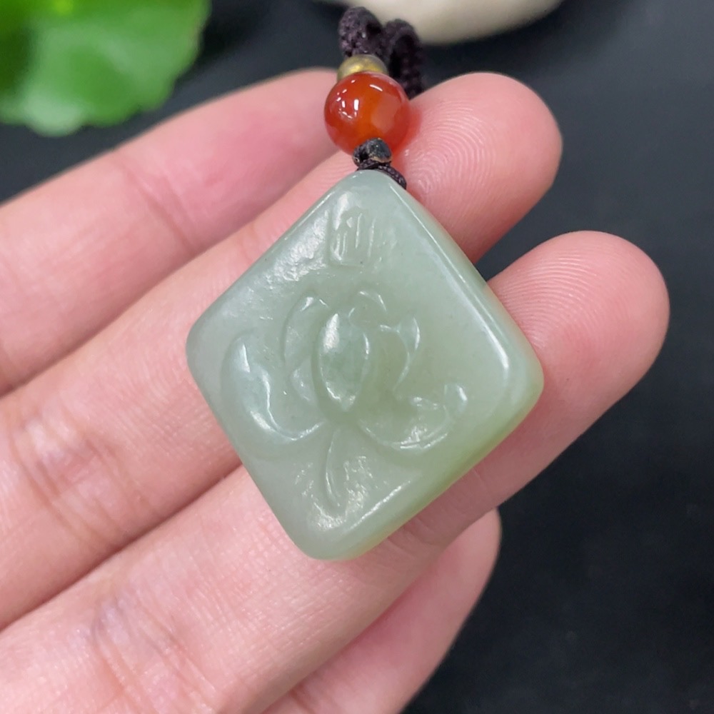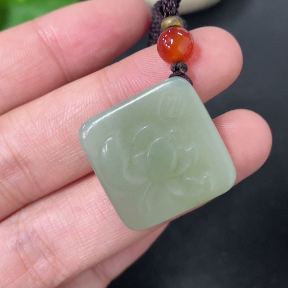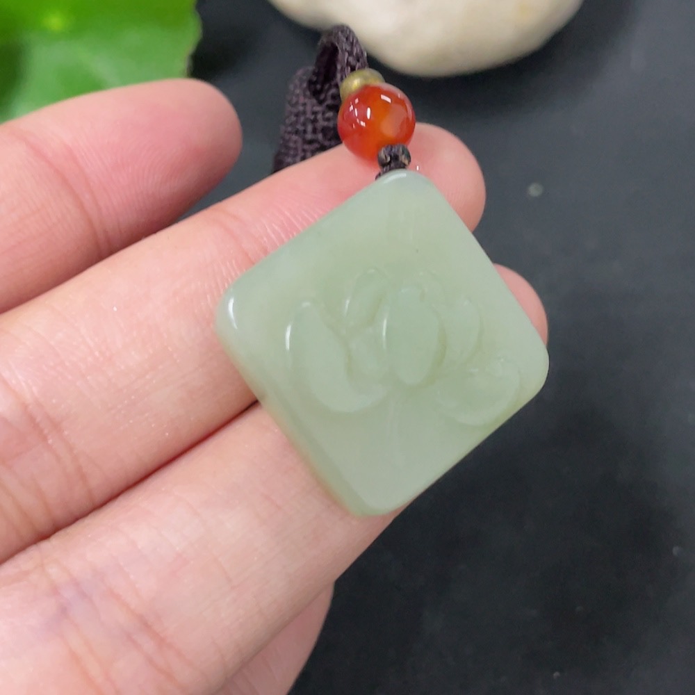Hetian Jade Pendant - Flourishing and Prosperous (with non-Hetian jade beads)