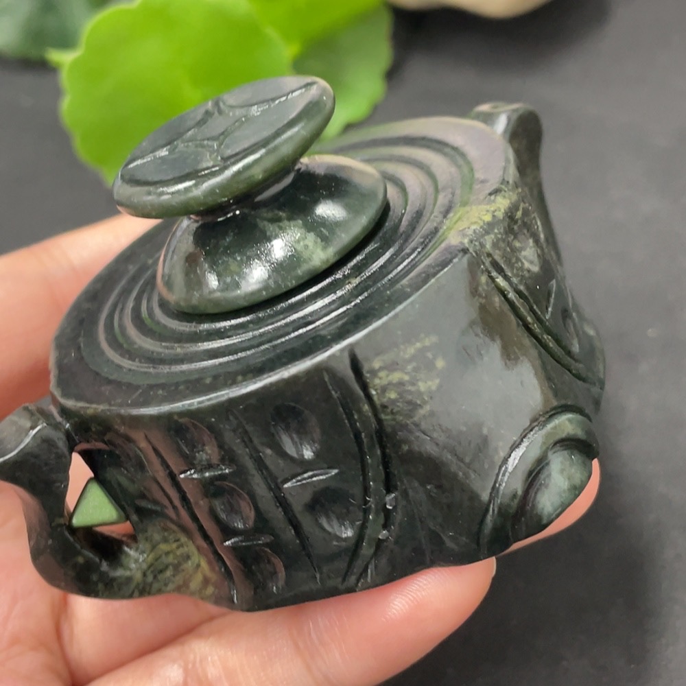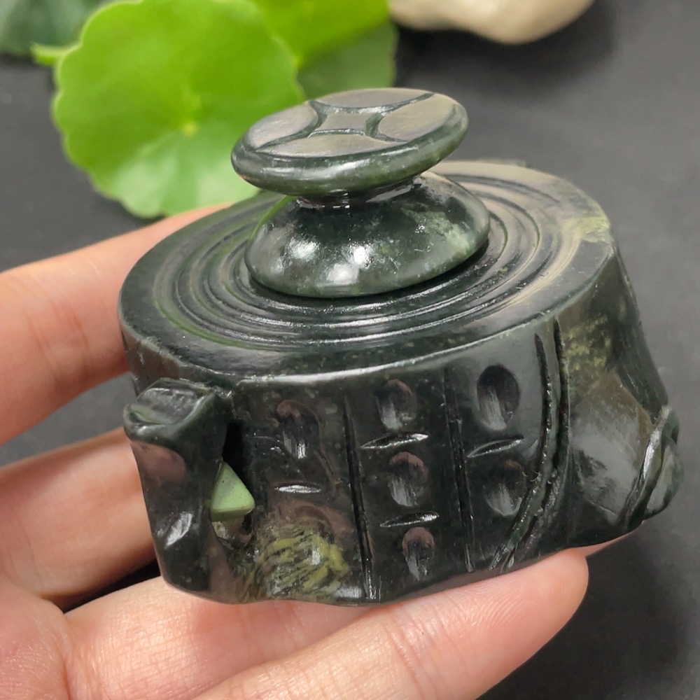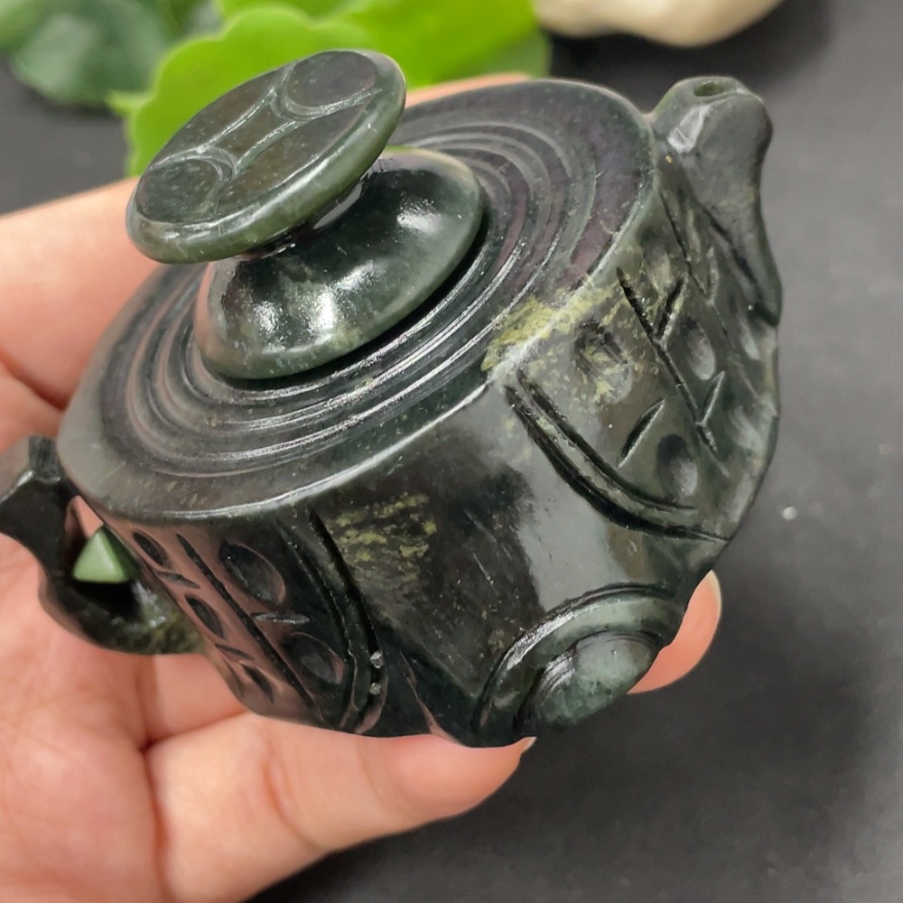 Hetian Jade Ornament Teapot Containing Other Mineral Components Total Weight Approx. 221.5g