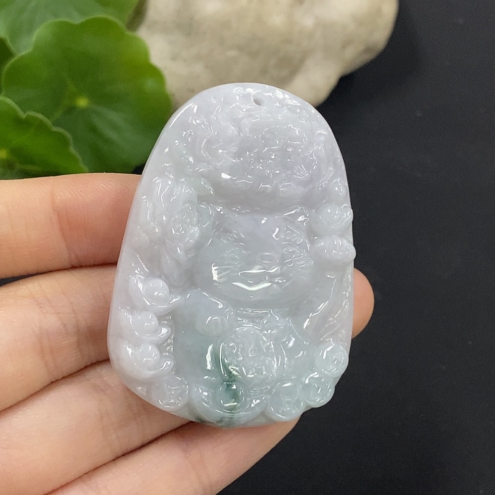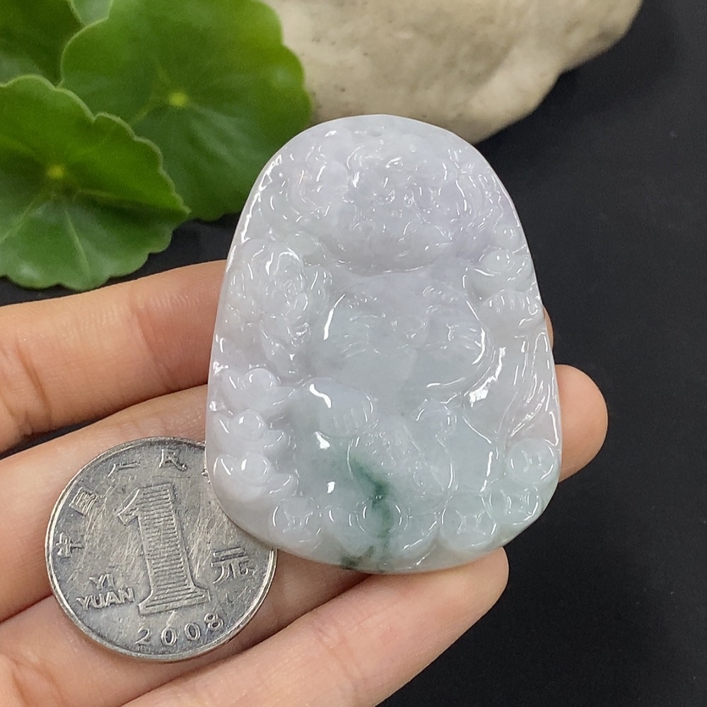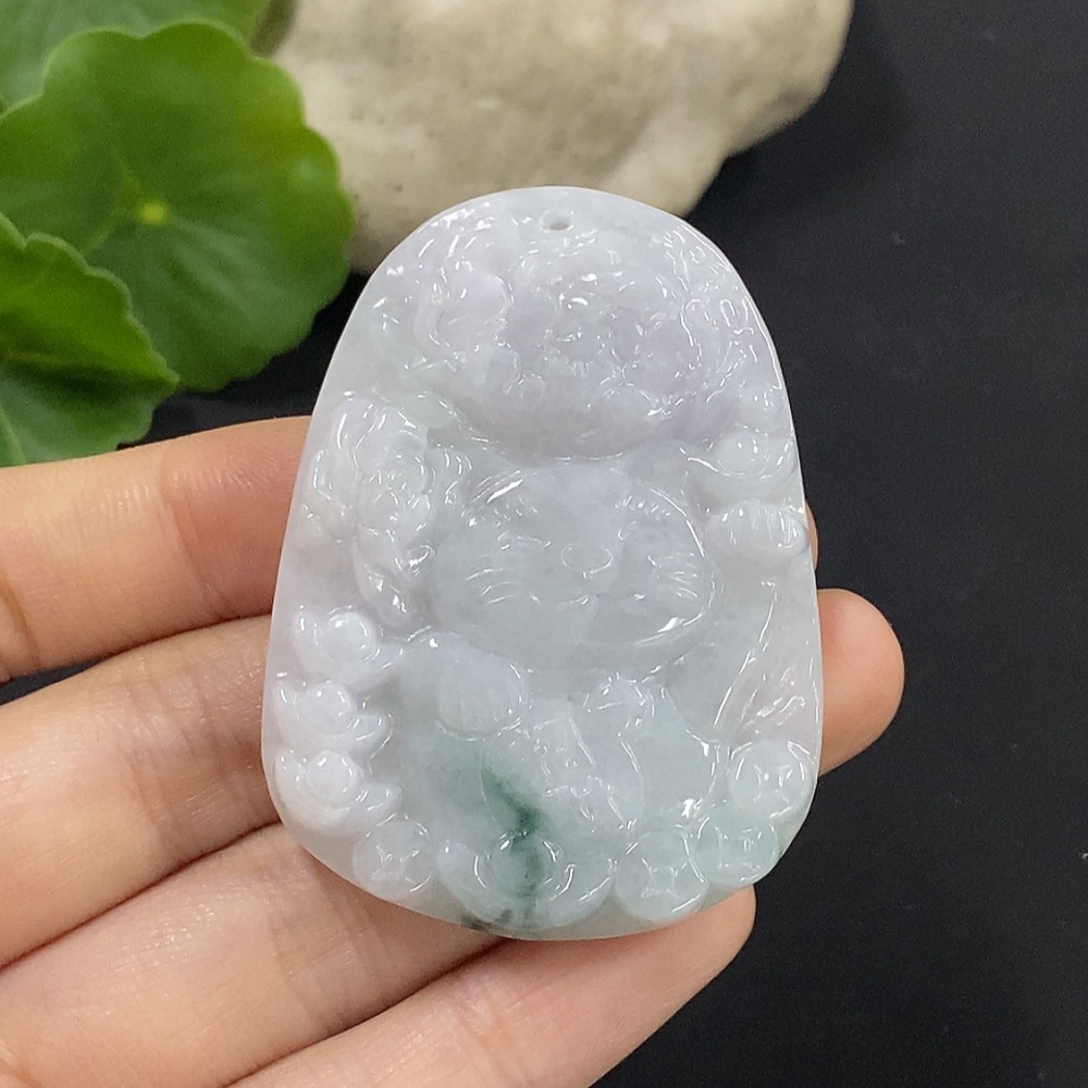 Jadeite Lucky Cat Pendant, Total Weight Approx. 27.5g