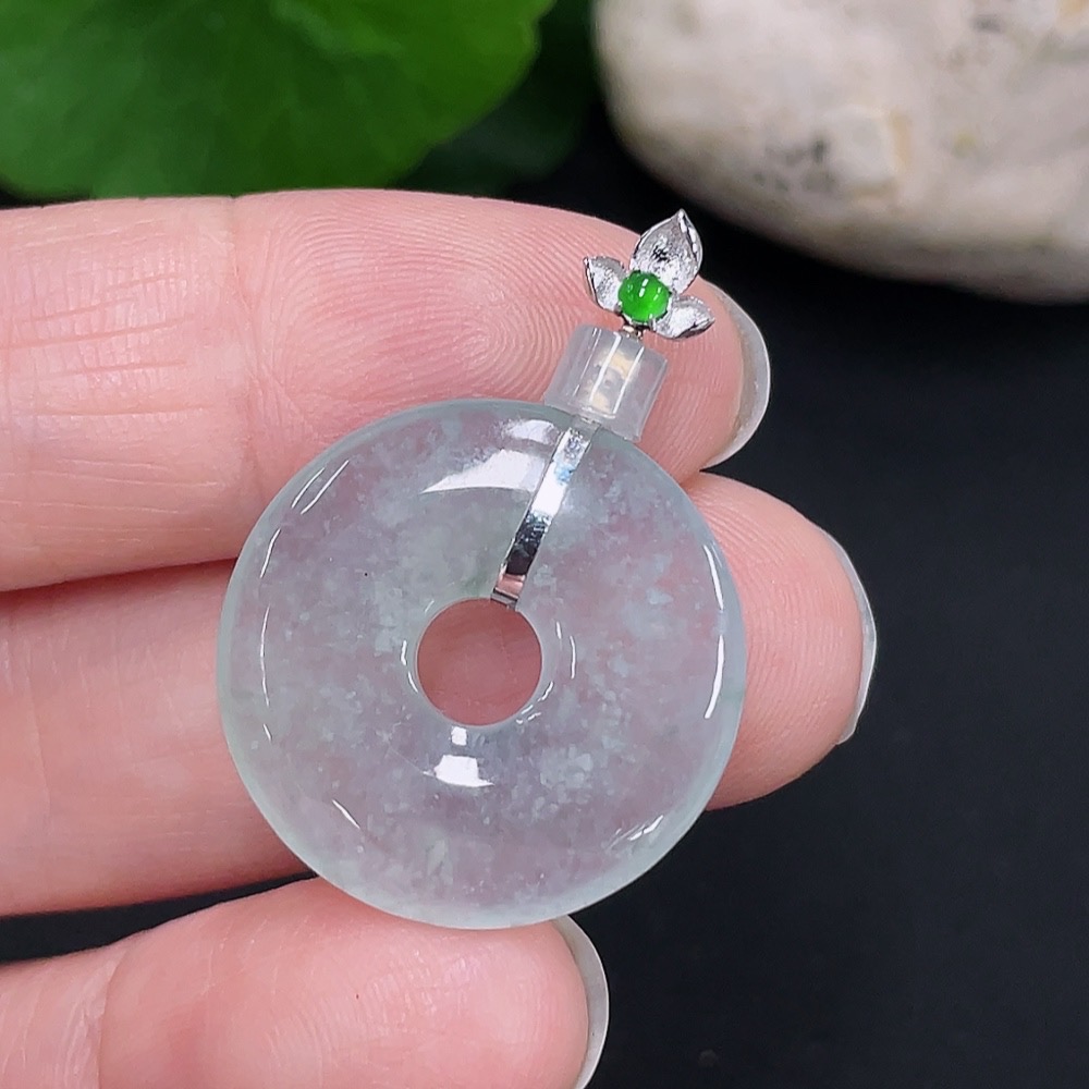 Jadeite Safety Buckle Pendant, 18K Gold, Total Weight Approx. 3.1g