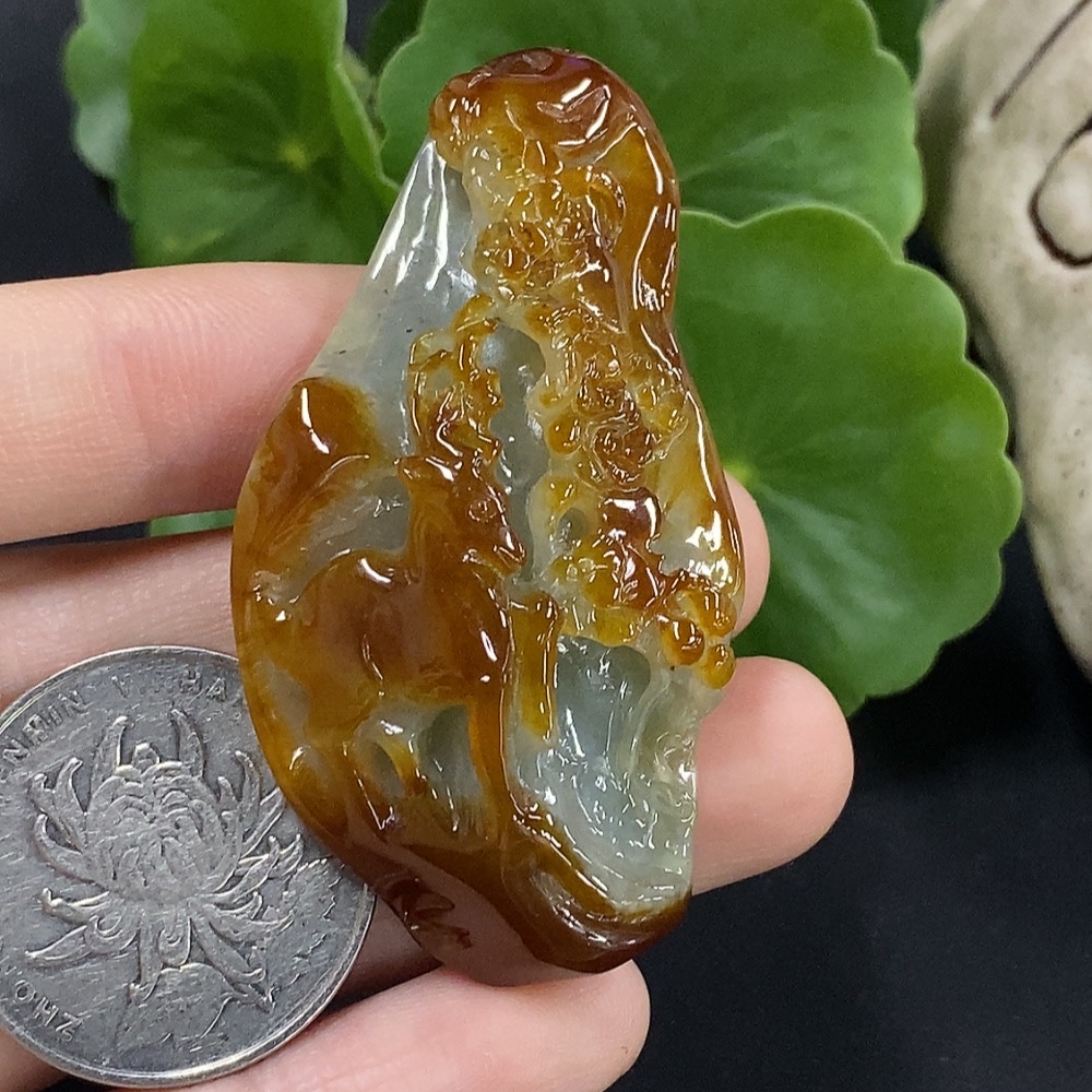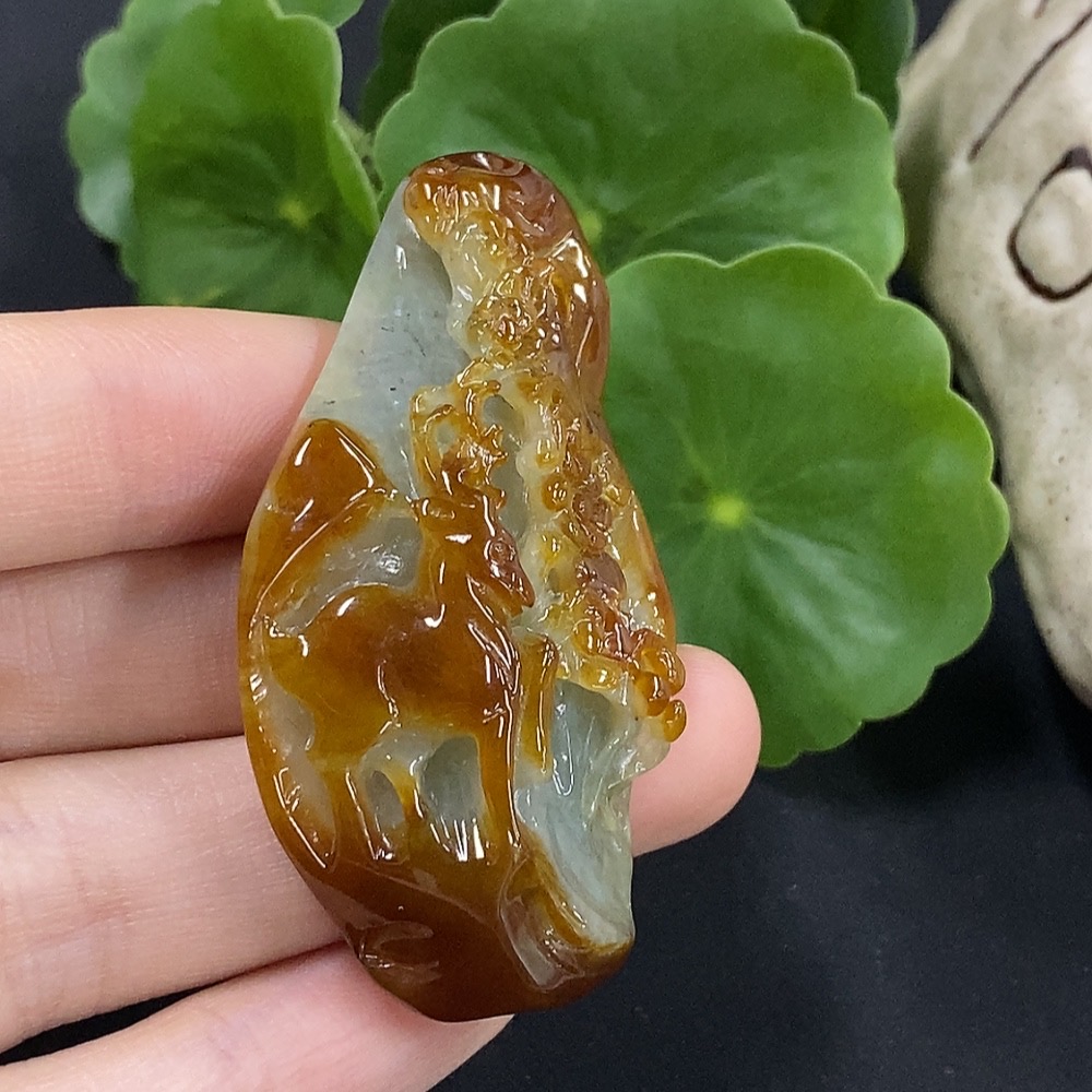 Jadeite Deer Pendant Total Weight Approx. 25.44g
