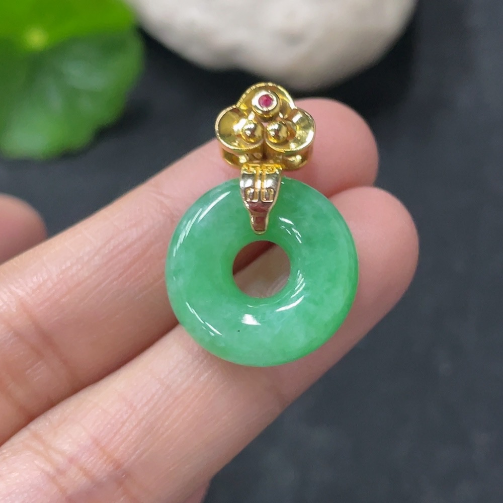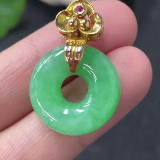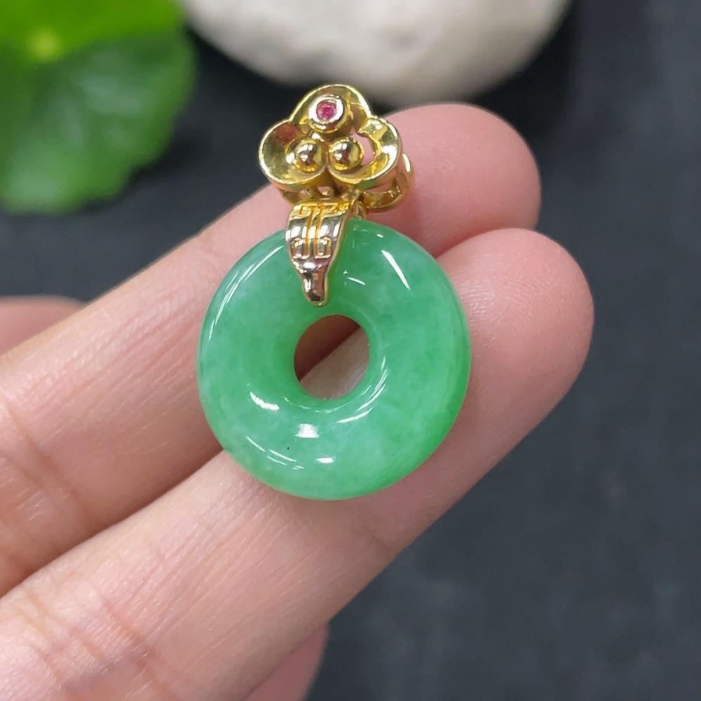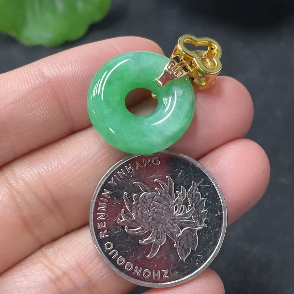 Jadeite Pendant Donut Suspected Gold-Plated Total Weight Approx. 3.59g
