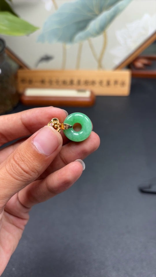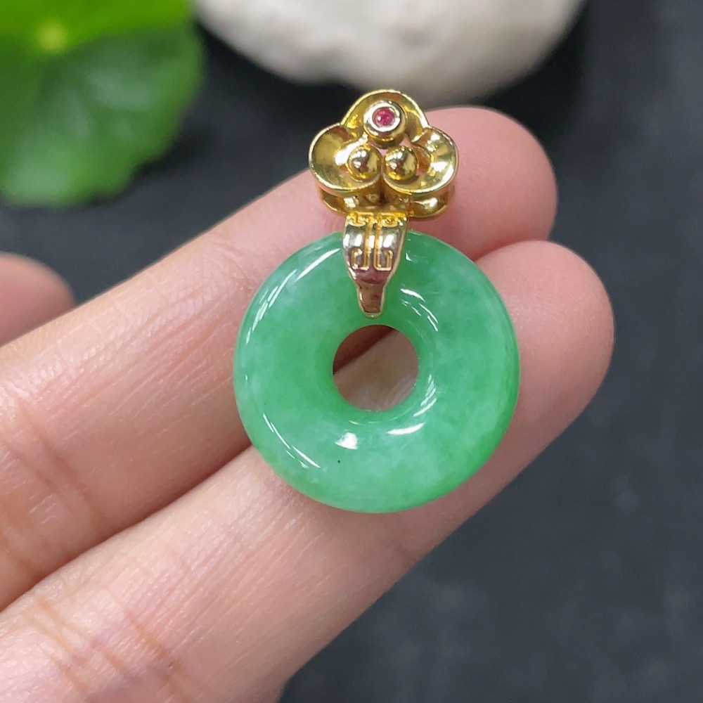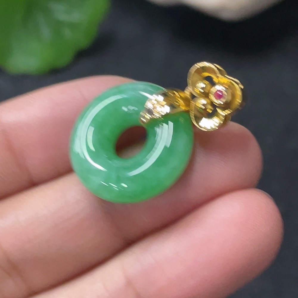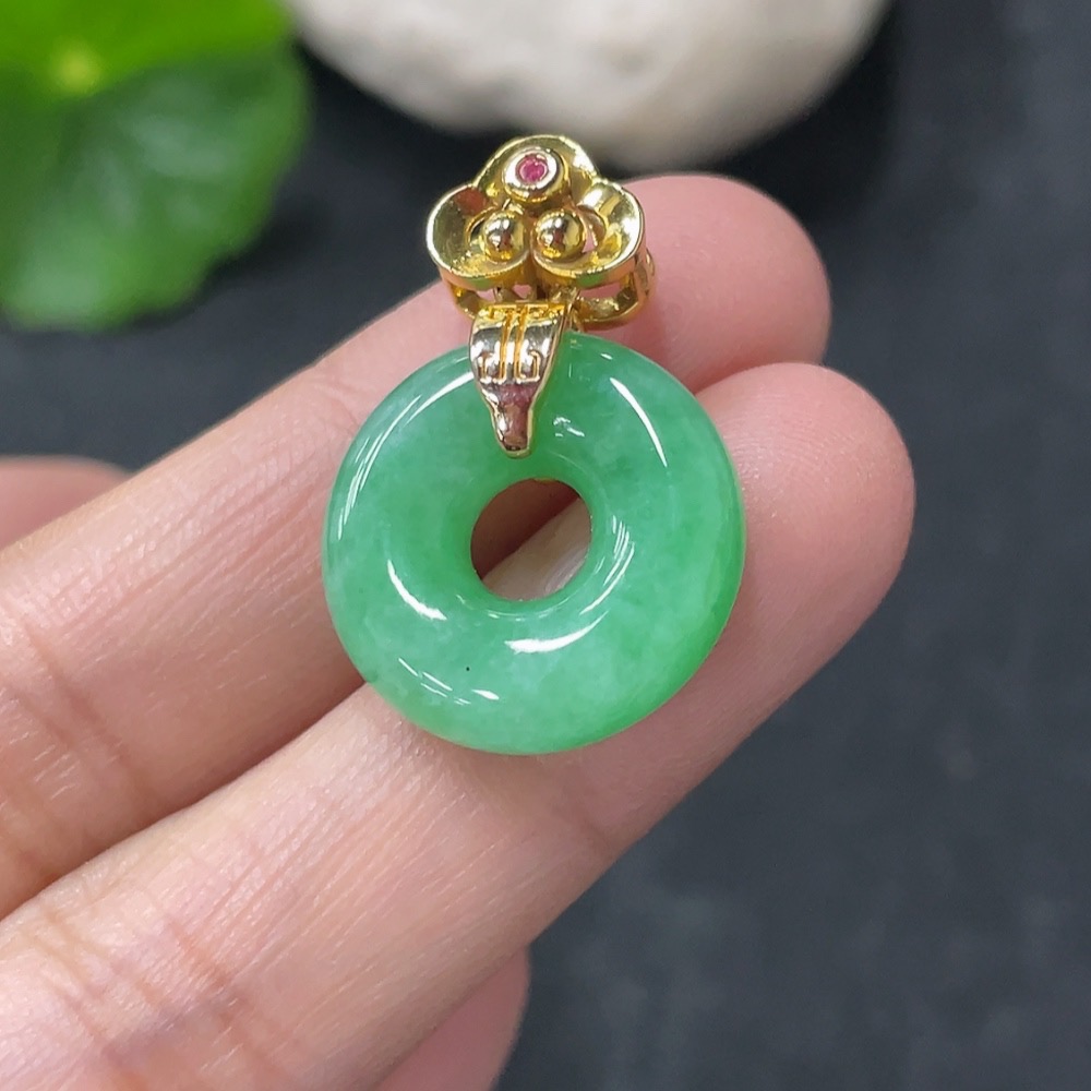 Jadeite Pendant Donut Suspected Gold-Plated Total Weight Approx. 3.59g