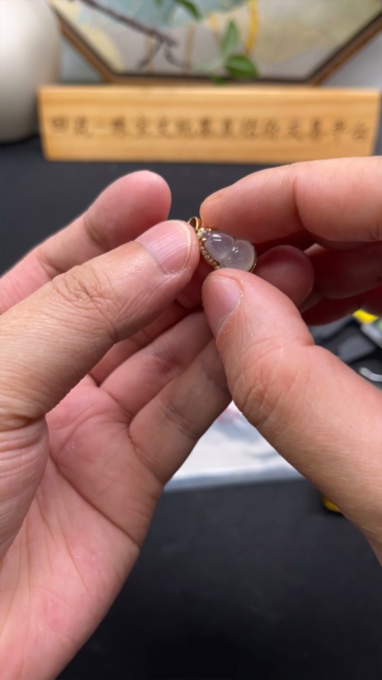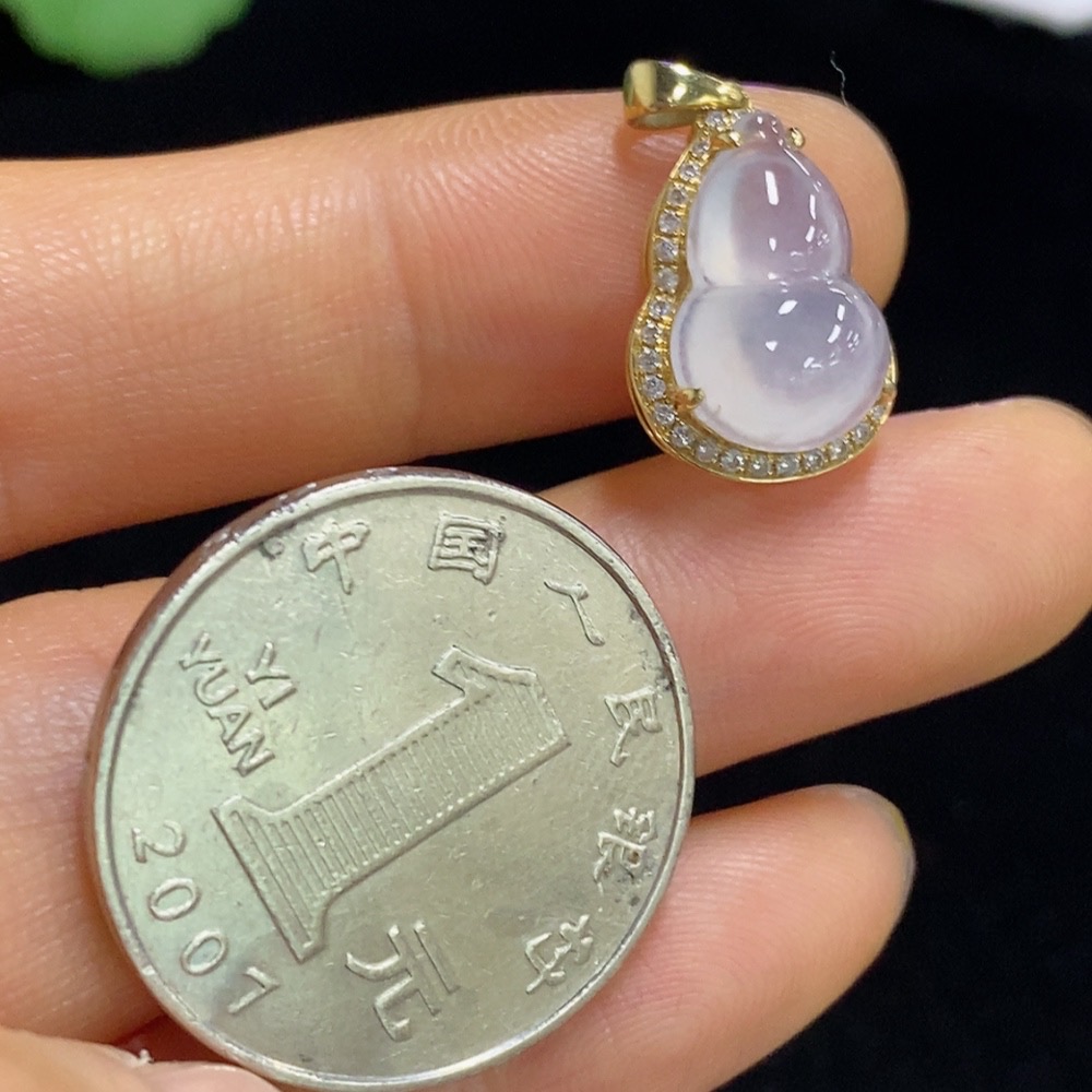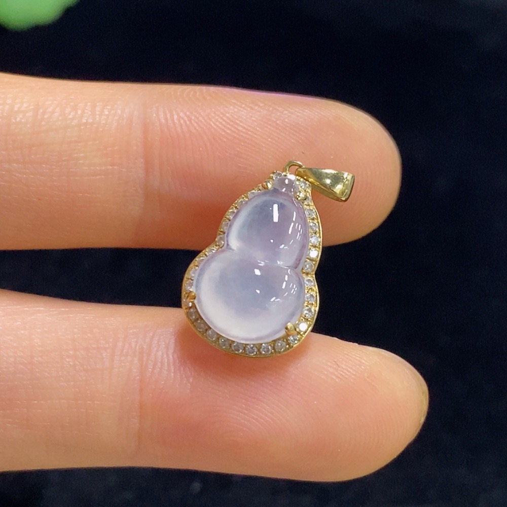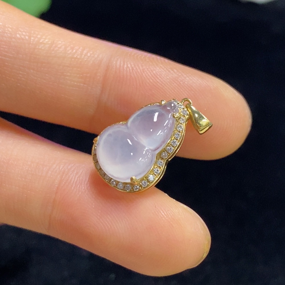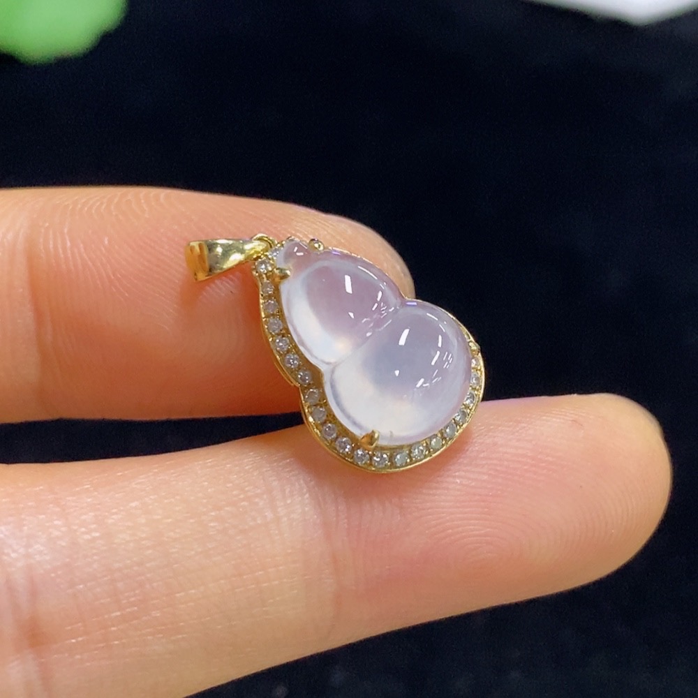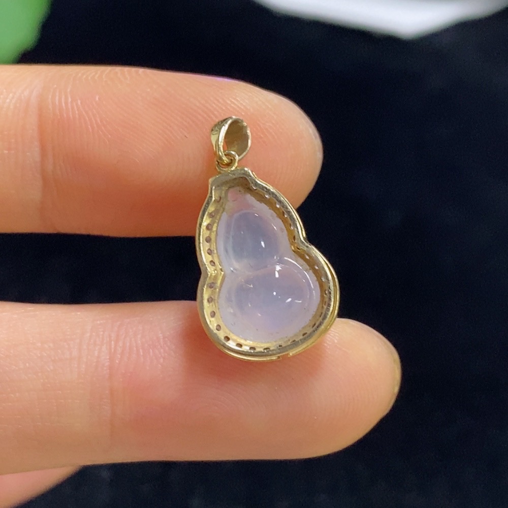 Jadeite Gourd Inlaid Pendant 18k Total Weight Approx. 1.97g