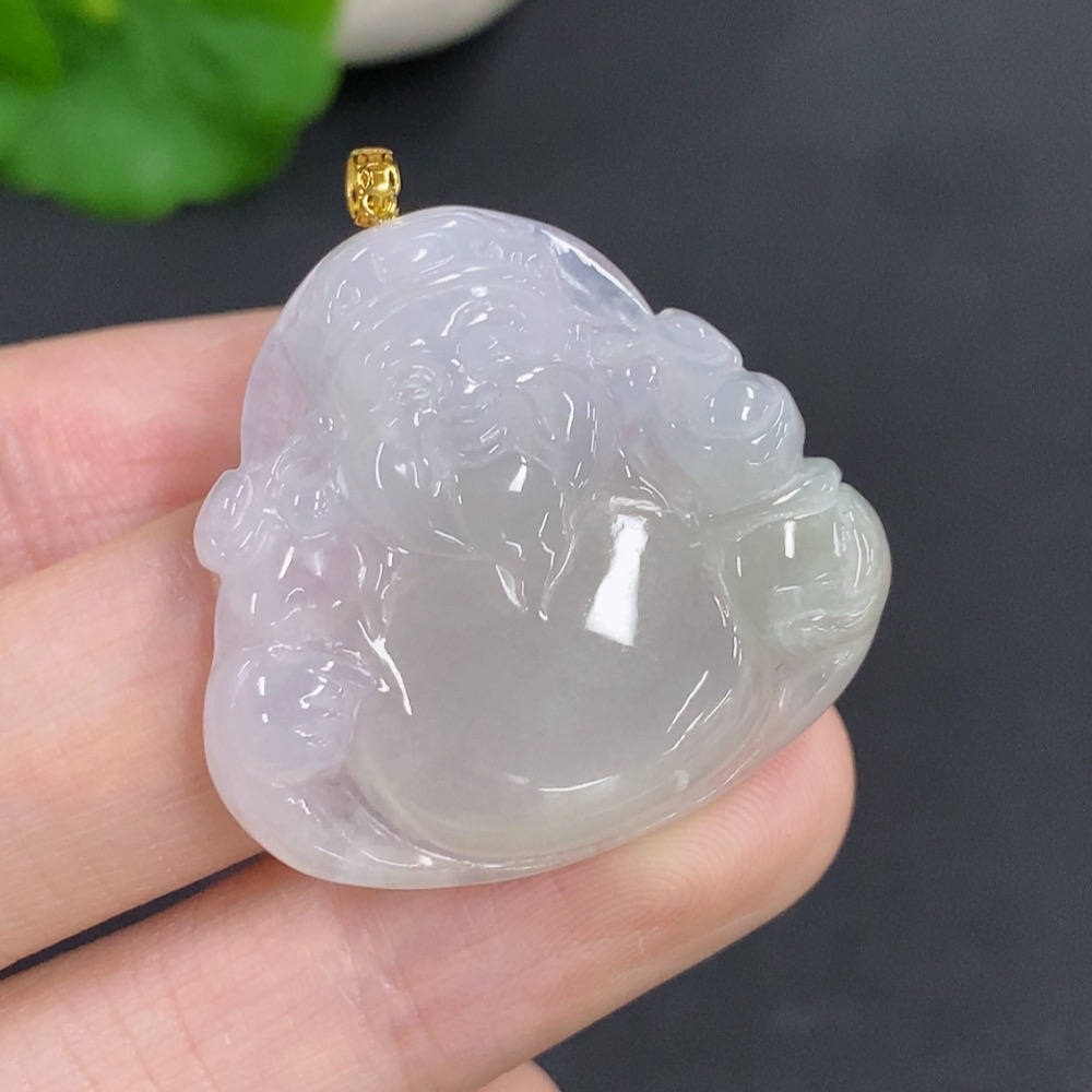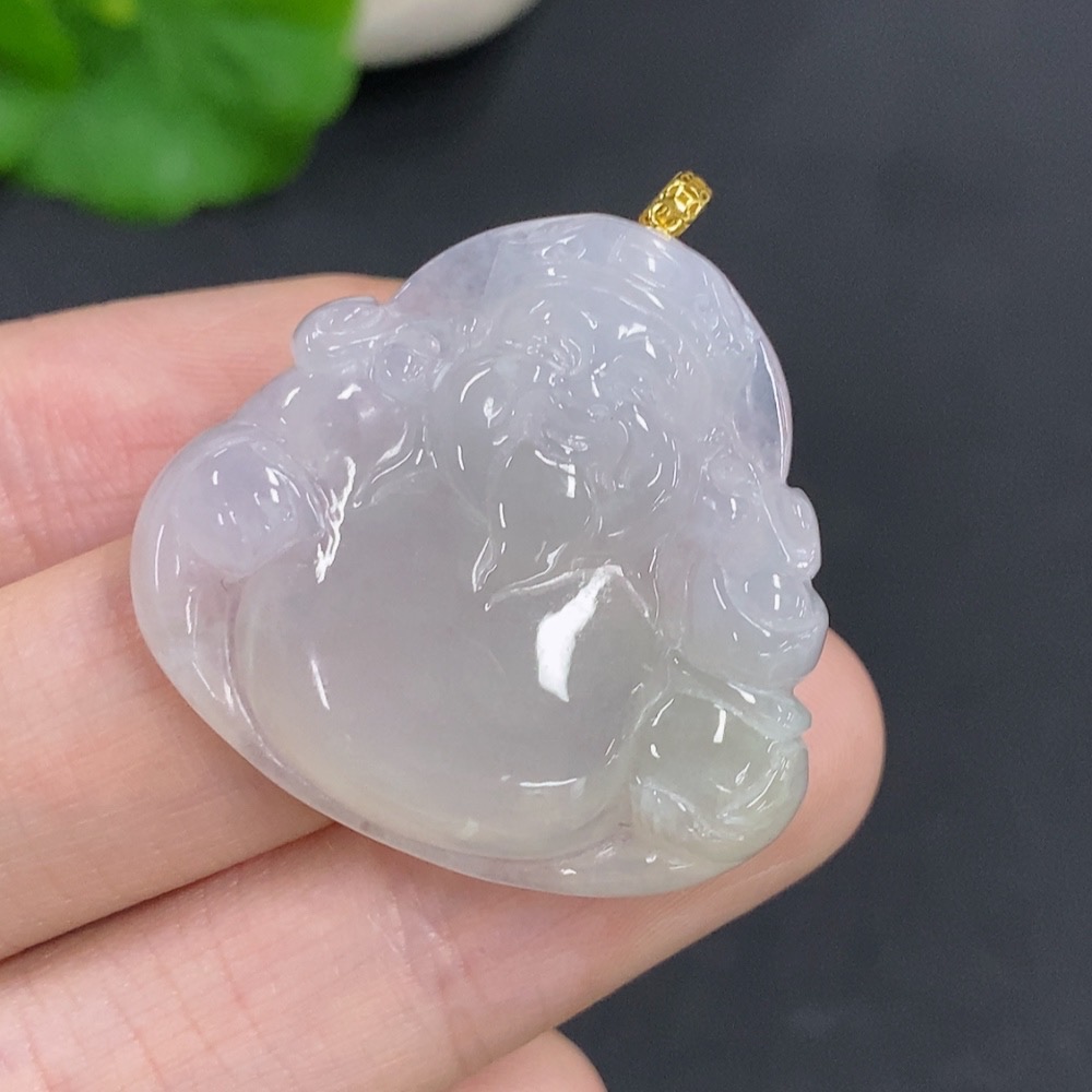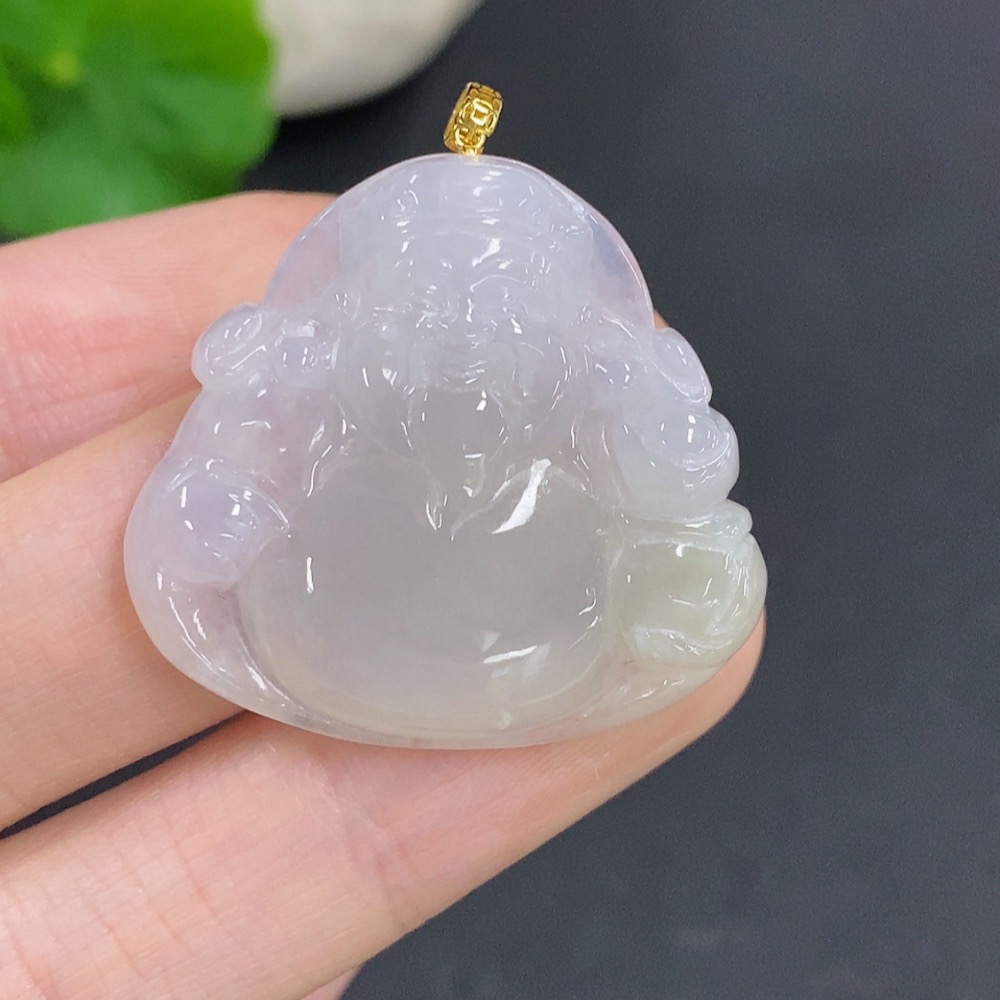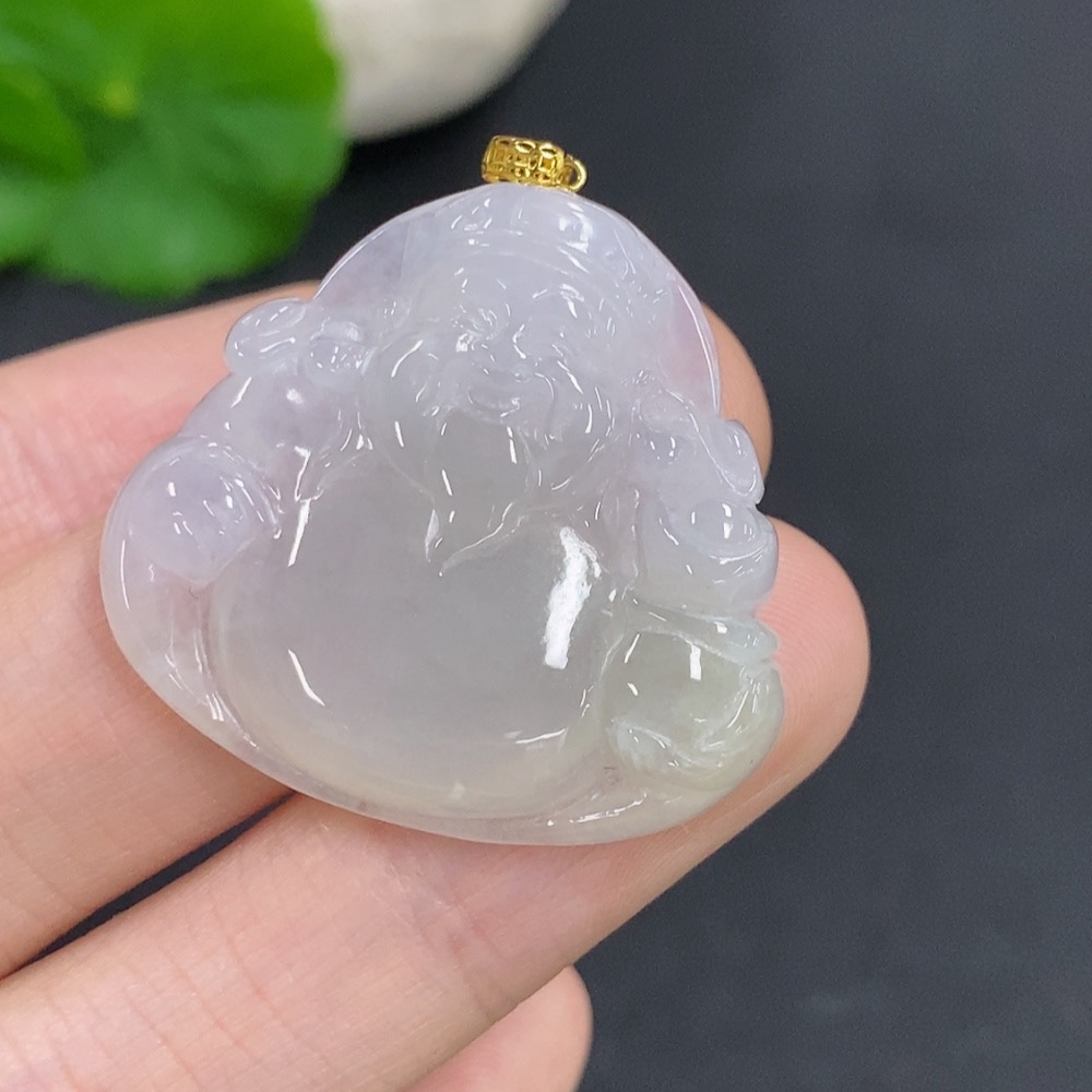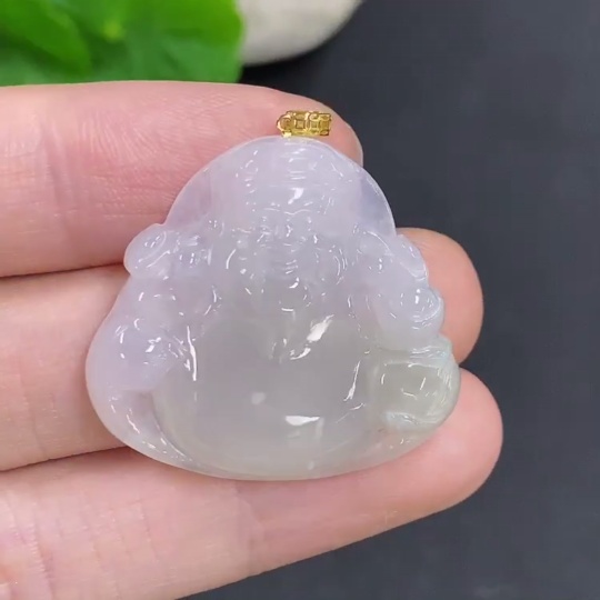 Jadeite God of Wealth Pendant with 18K Gold Clasp, Total Weight Approx. 8.2g