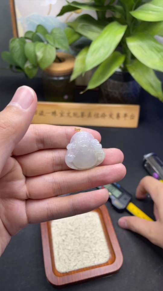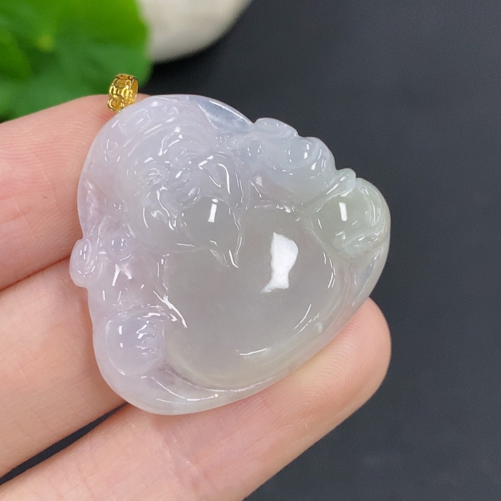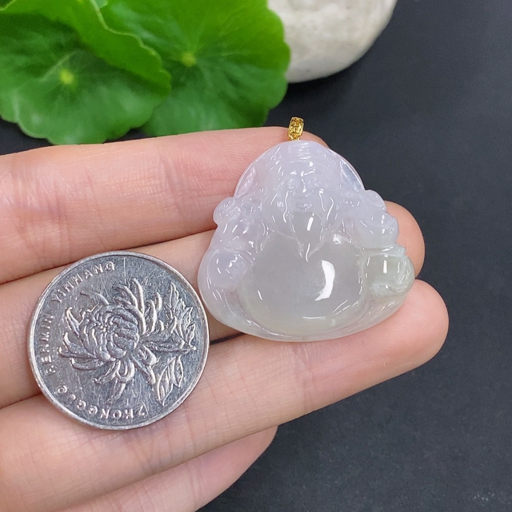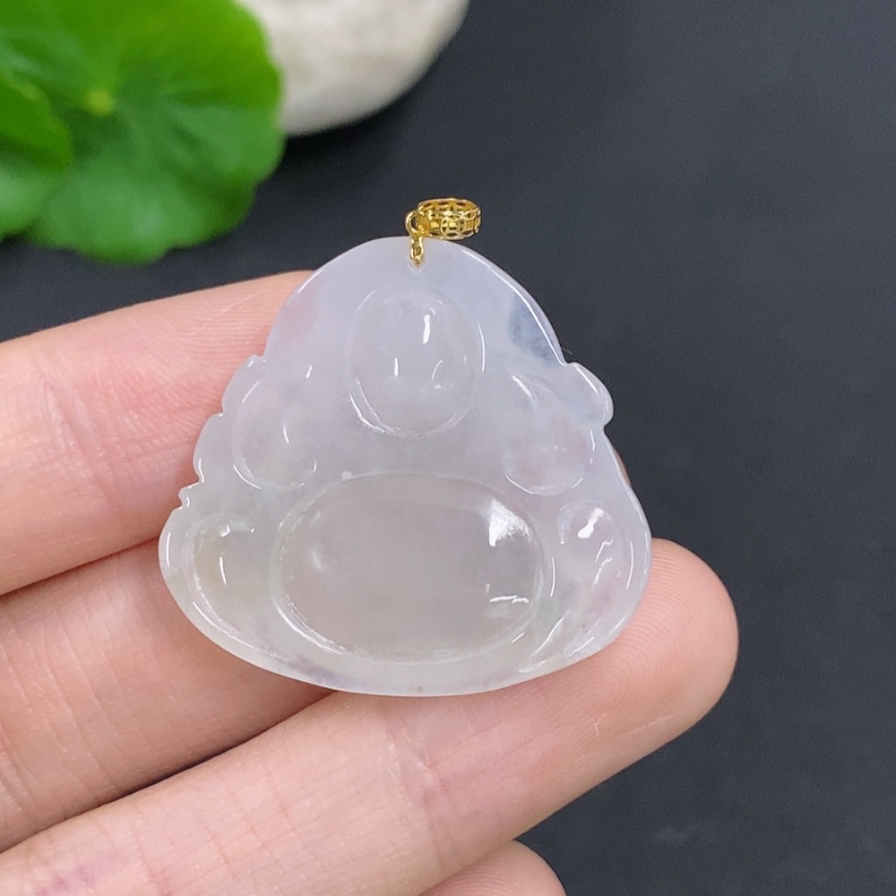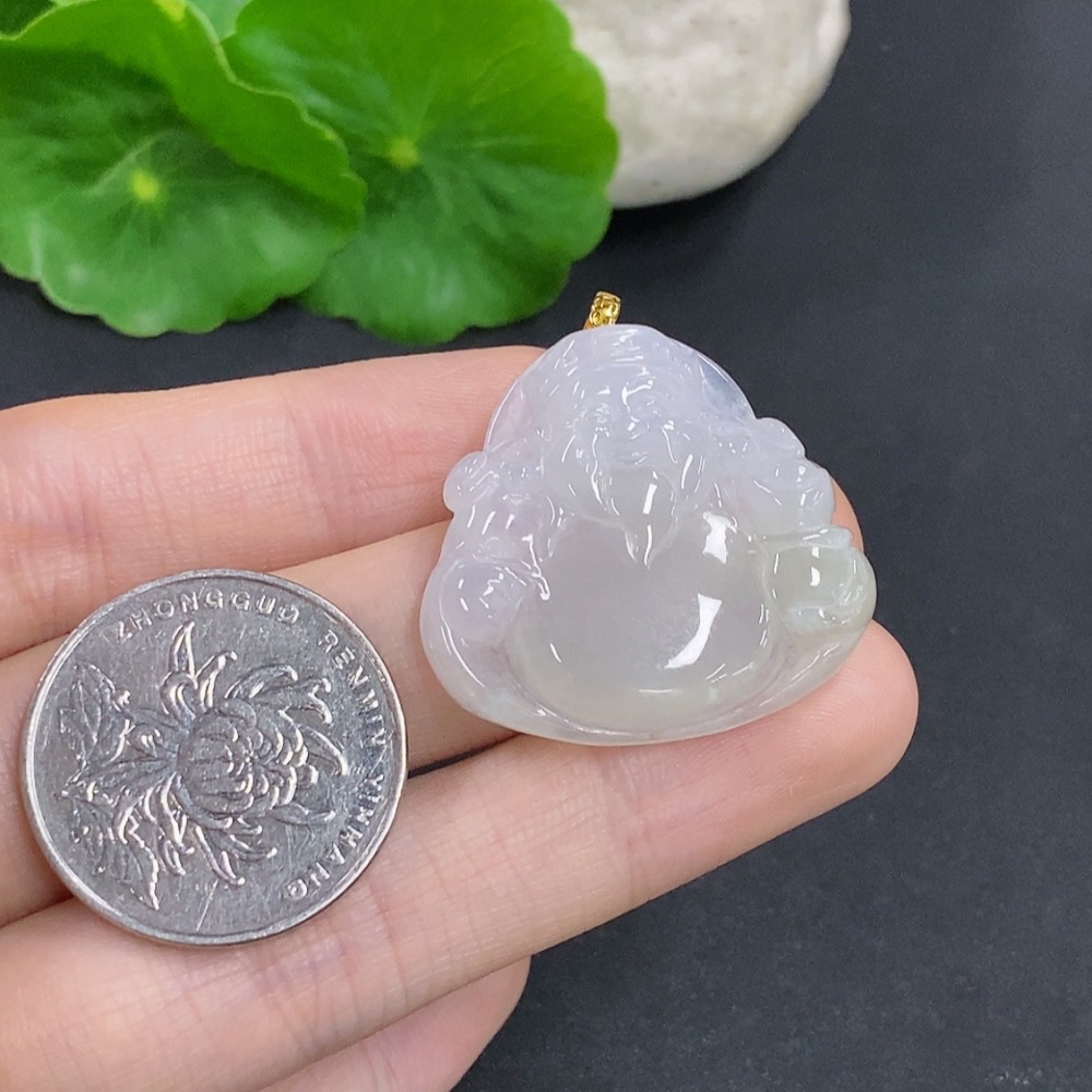 Jadeite God of Wealth Pendant with 18K Gold Clasp, Total Weight Approx. 8.2g