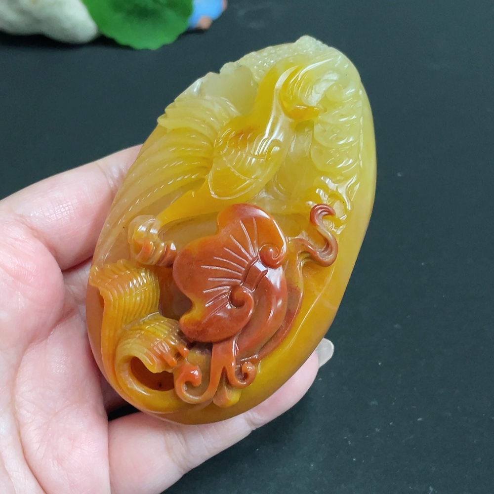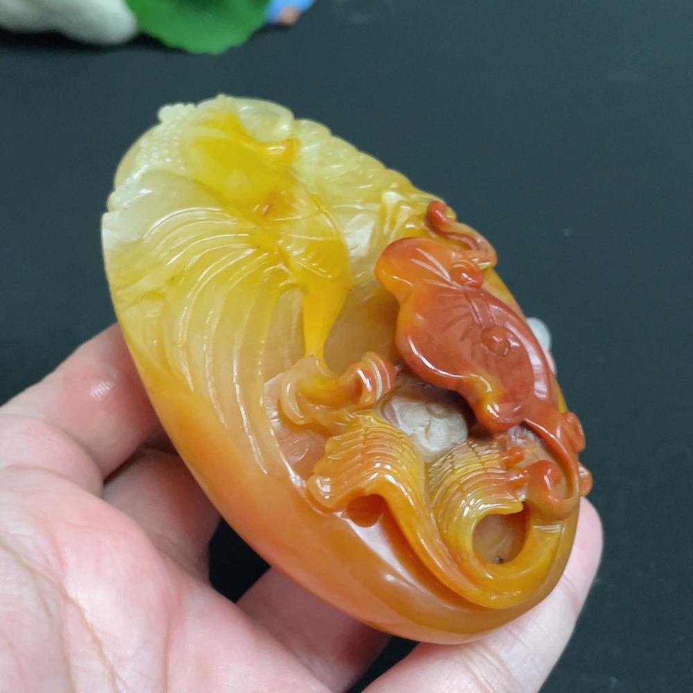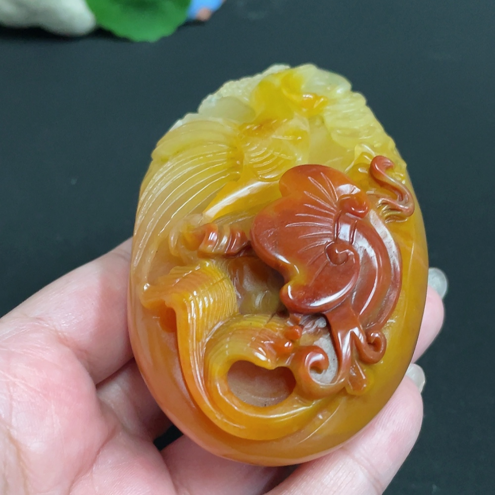 Huanglong Jade Hand Piece - Auspicious and Prosperous, Total Weight Approx. 253.8g