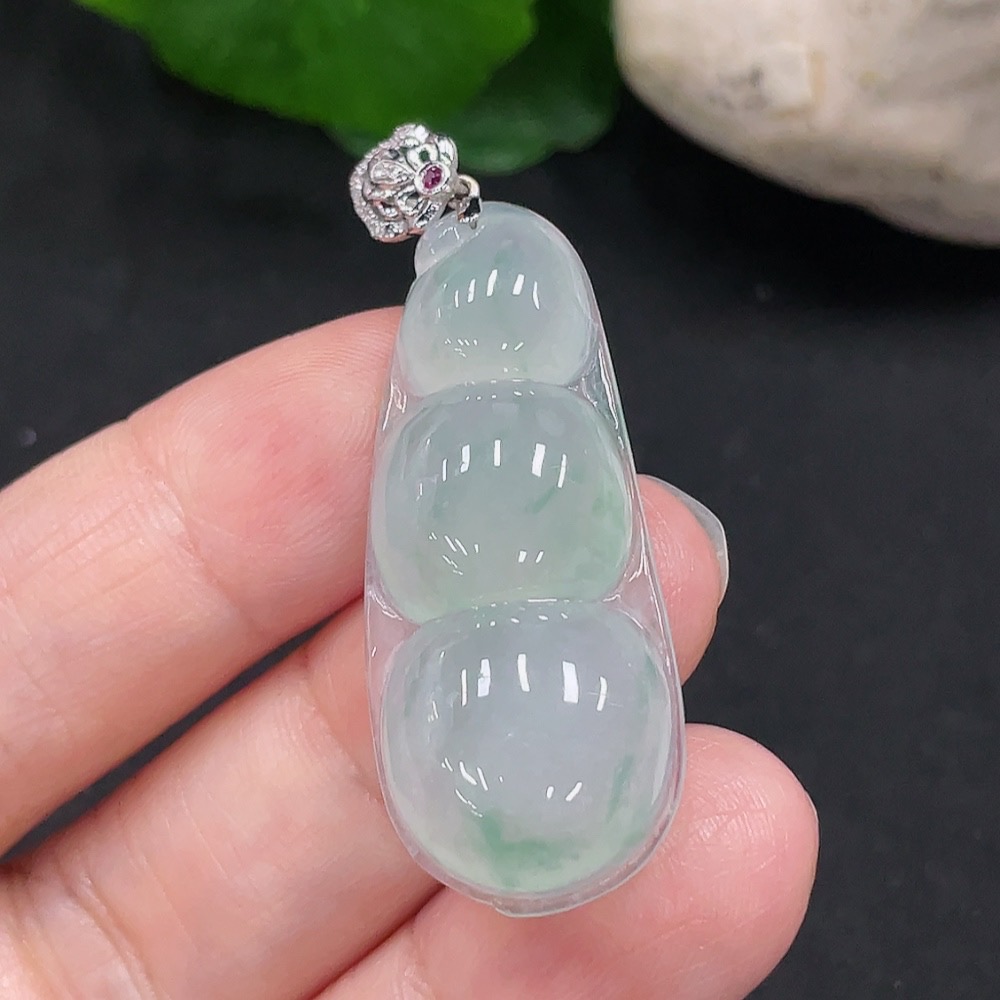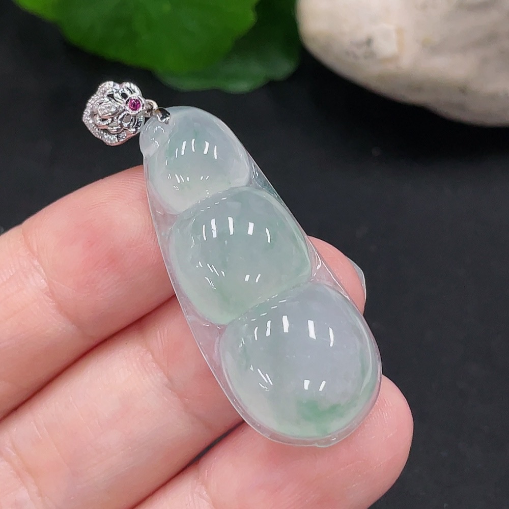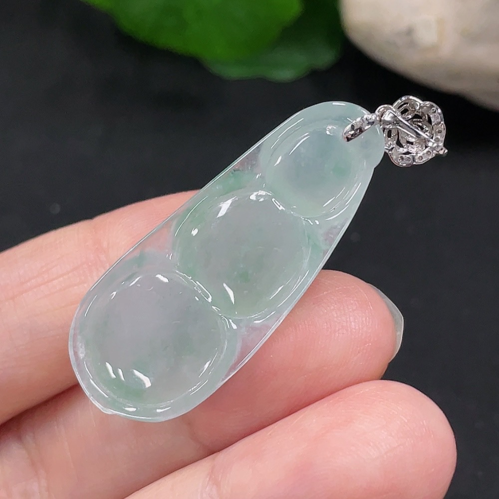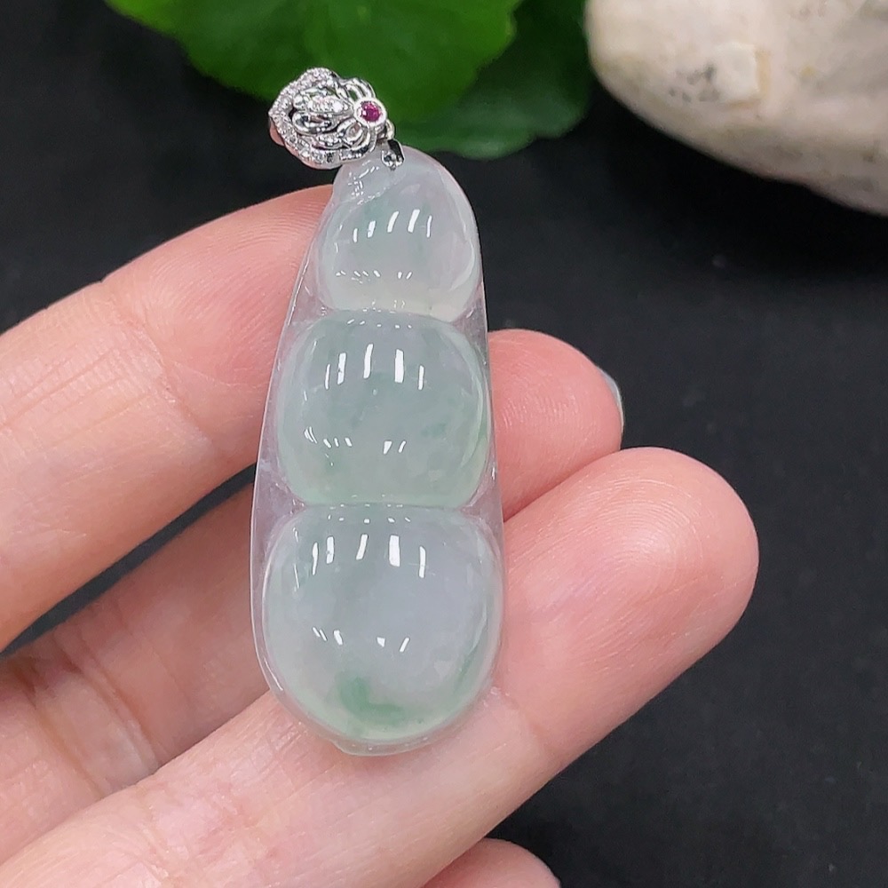 Jadeite Lucky Bean Pendant 18K Gold Total Weight Approx. 6.1g (With Diamond Accents)