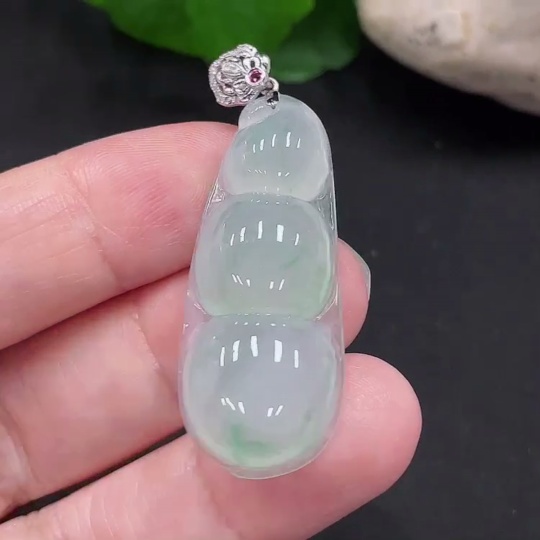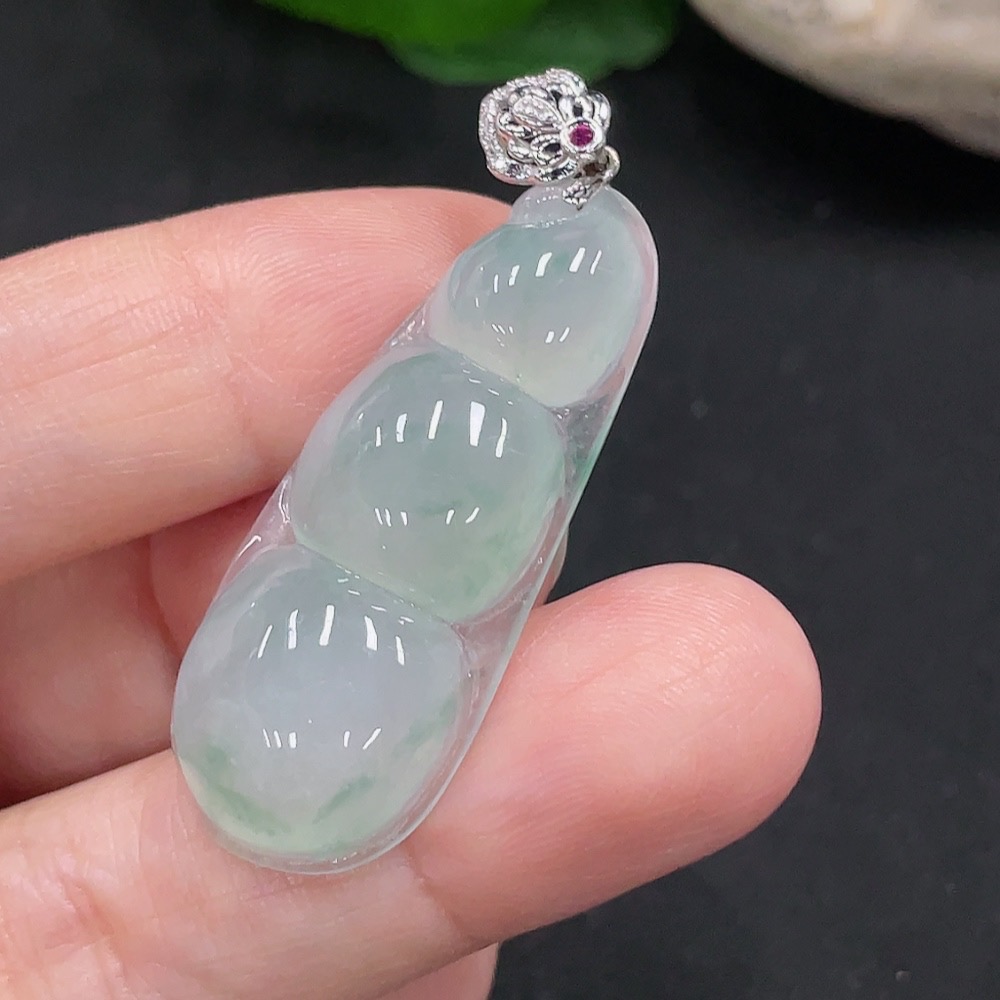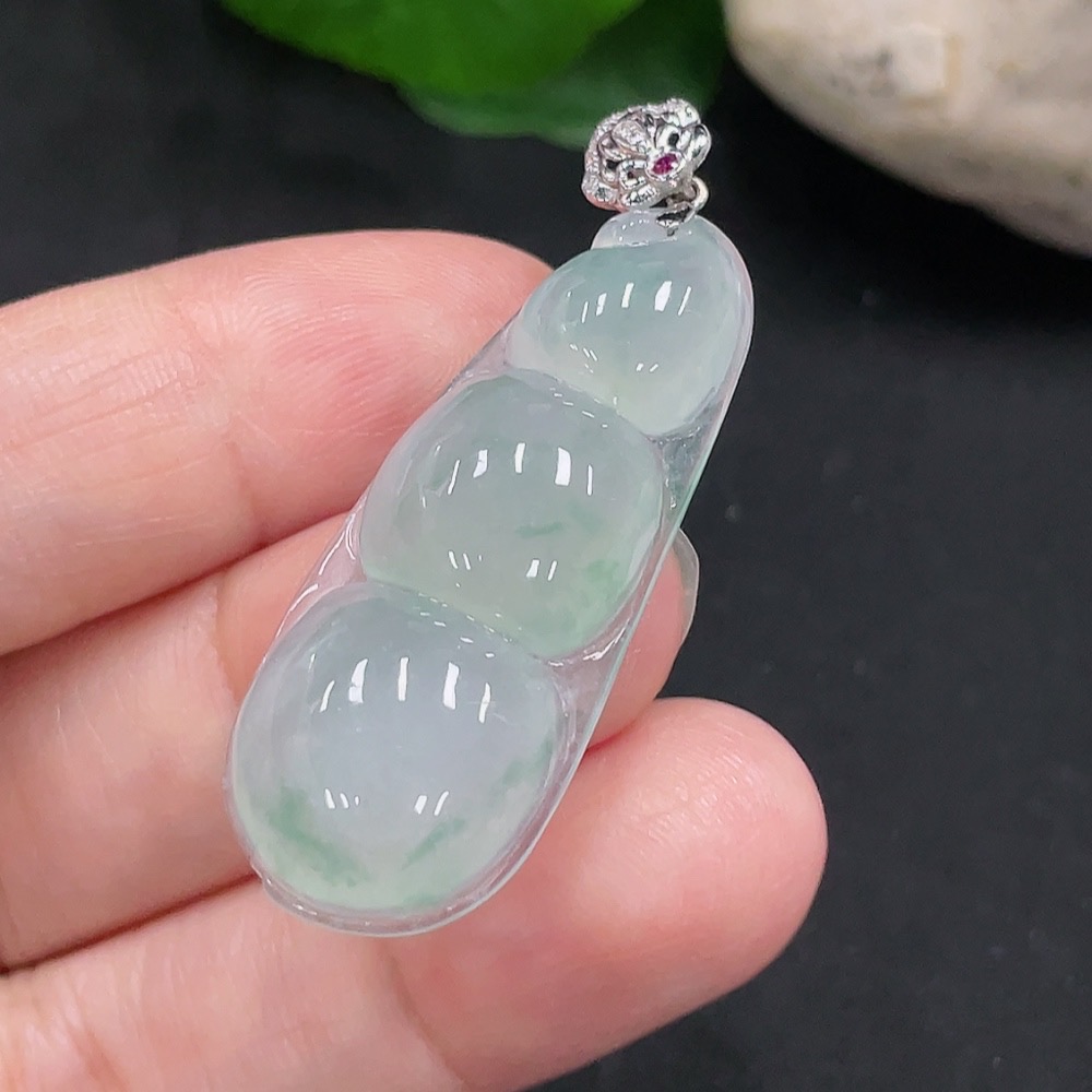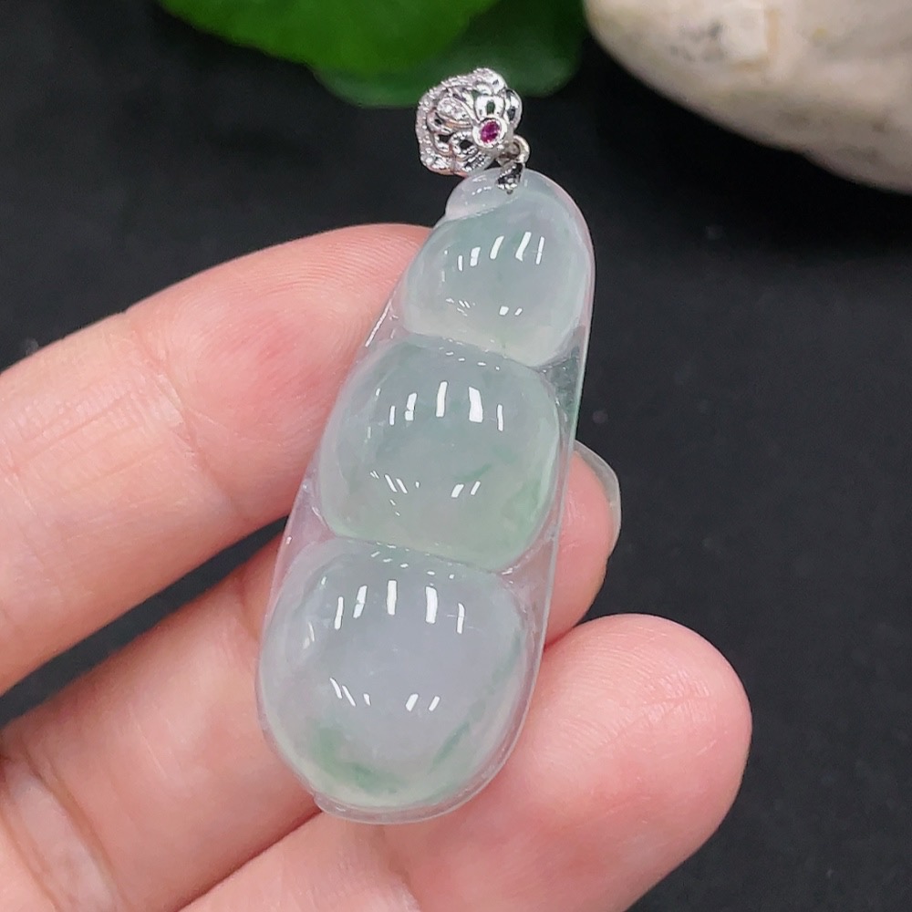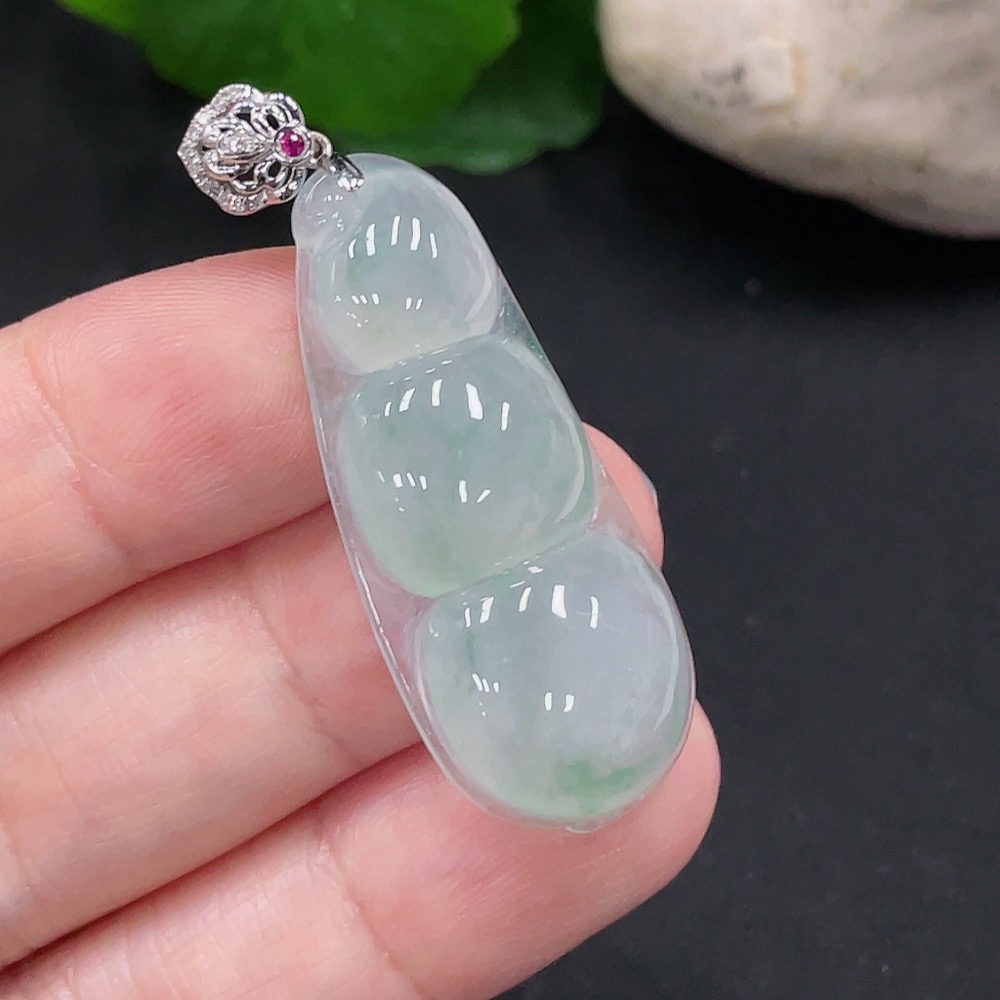 Jadeite Lucky Bean Pendant 18K Gold Total Weight Approx. 6.1g (With Diamond Accents)