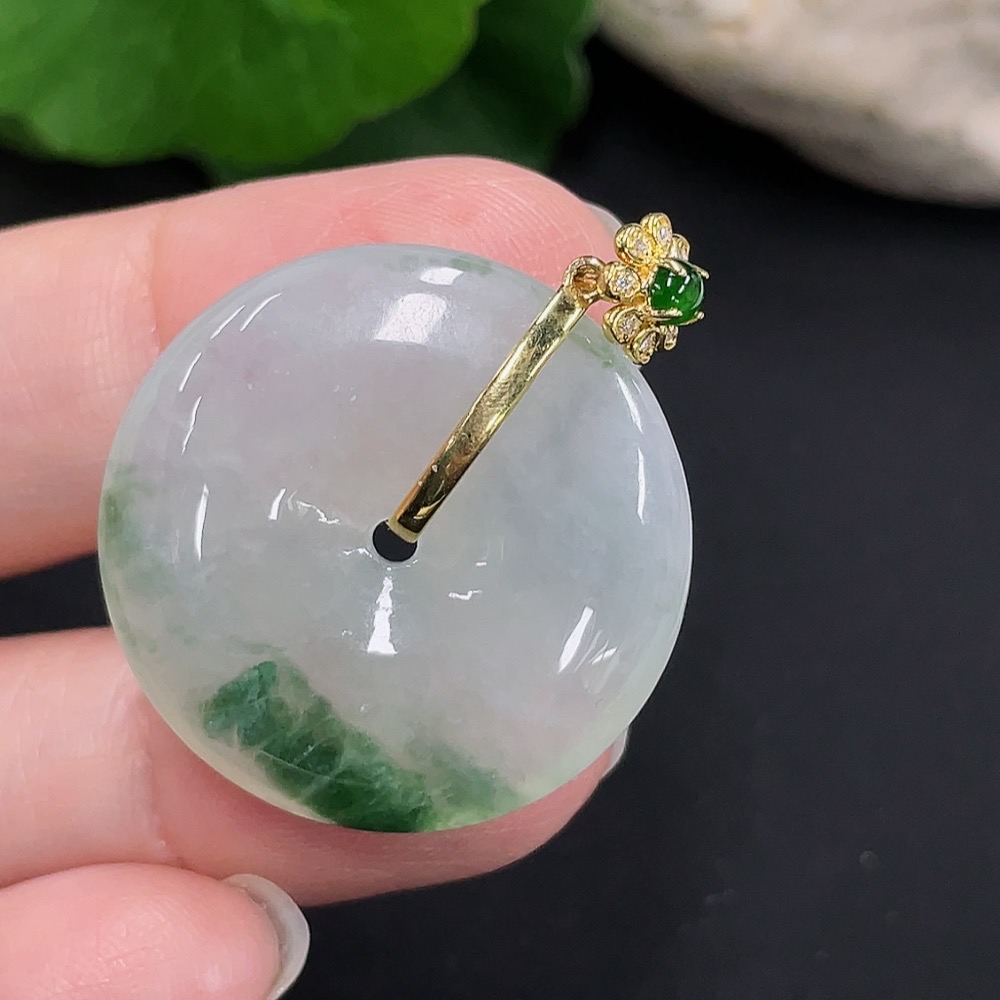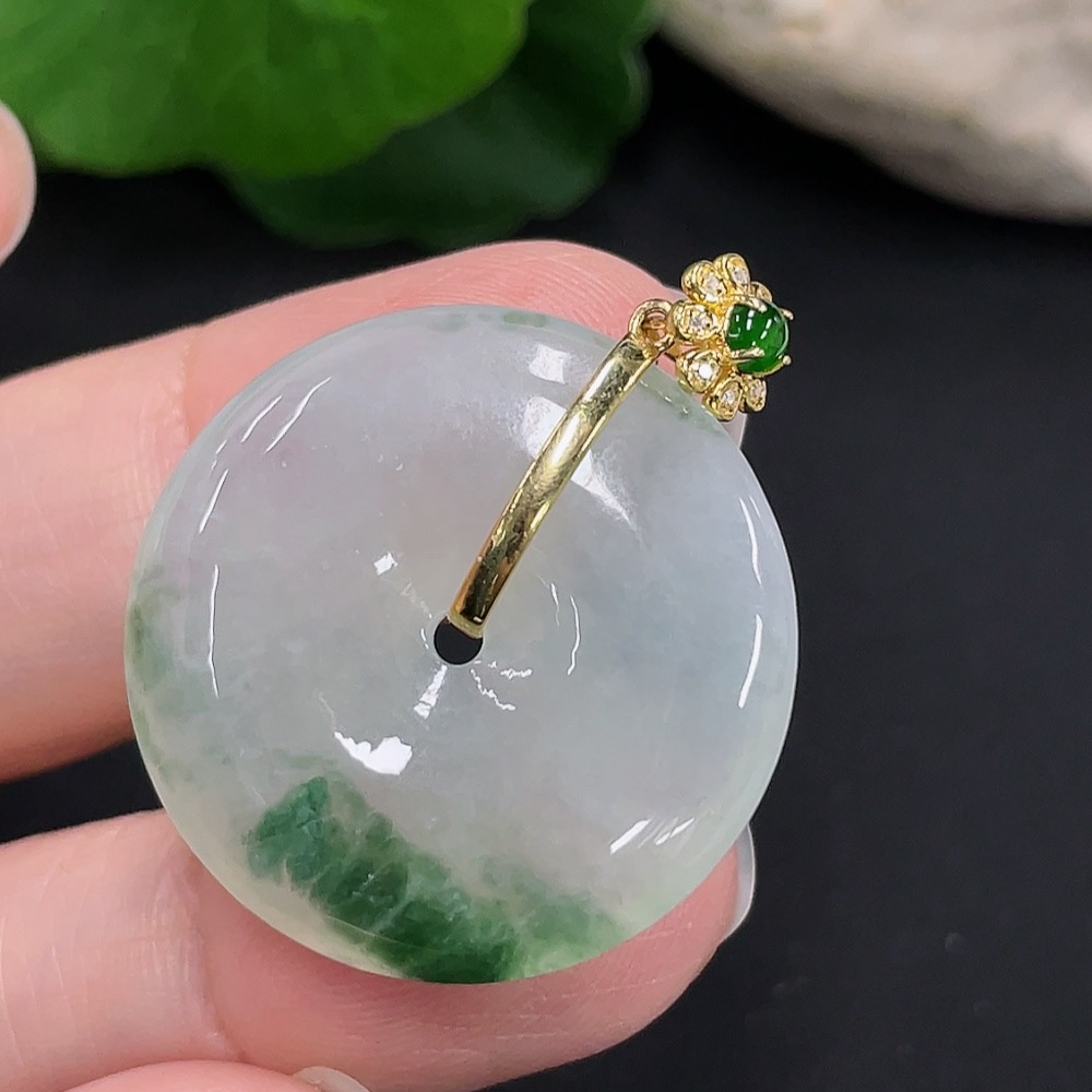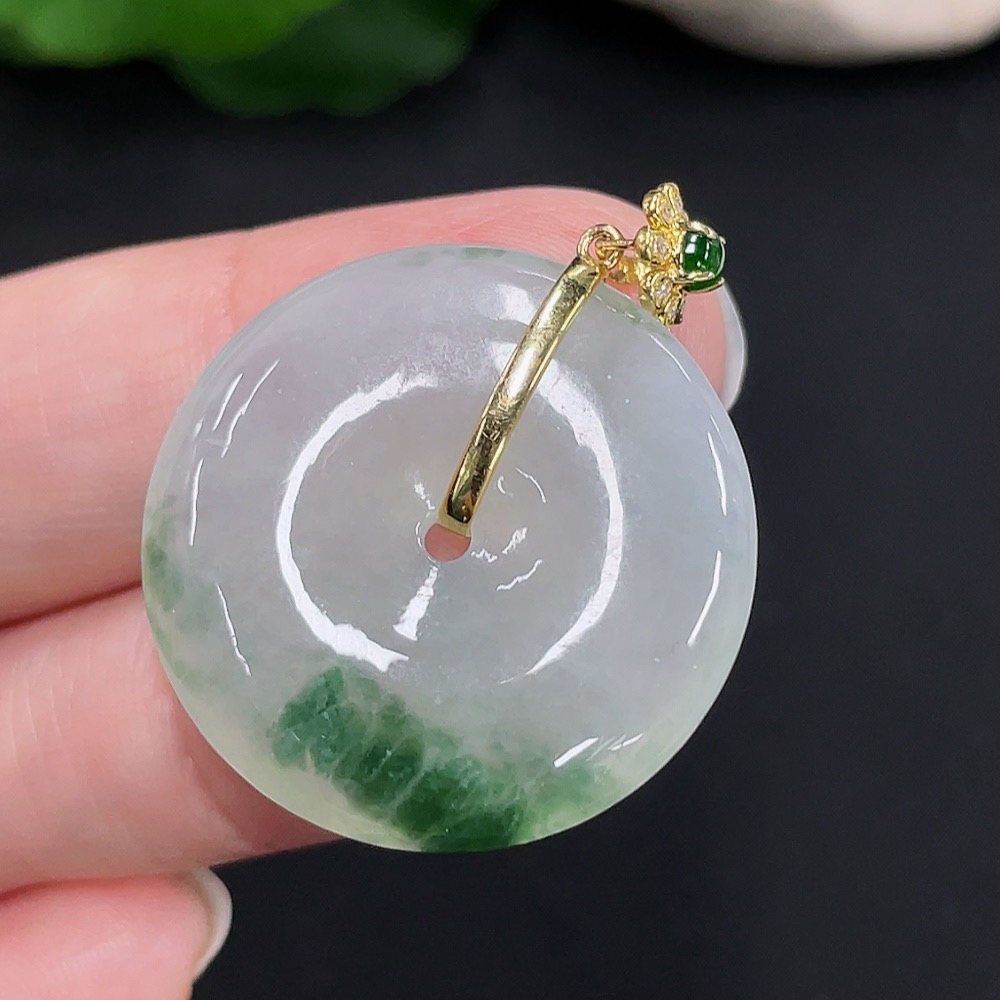 Jadeite safety buckle pendant 18K gold total weight about 8.3g (with diamond accents)