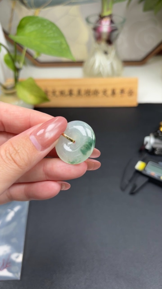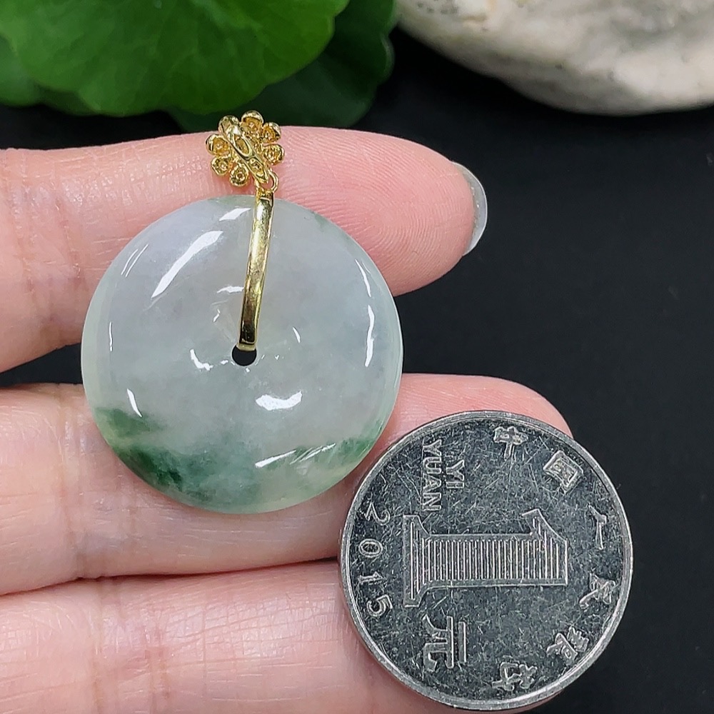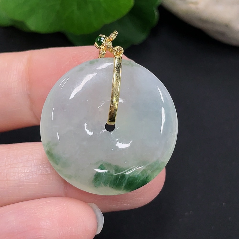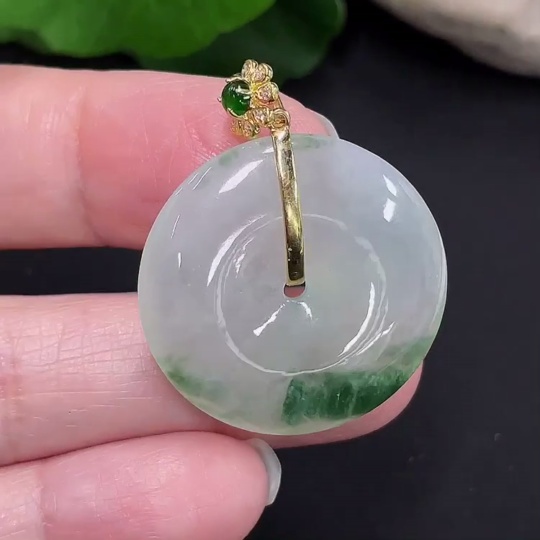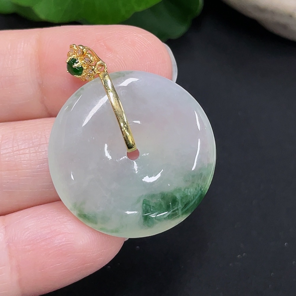 Jadeite safety buckle pendant 18K gold total weight about 8.3g (with diamond accents)