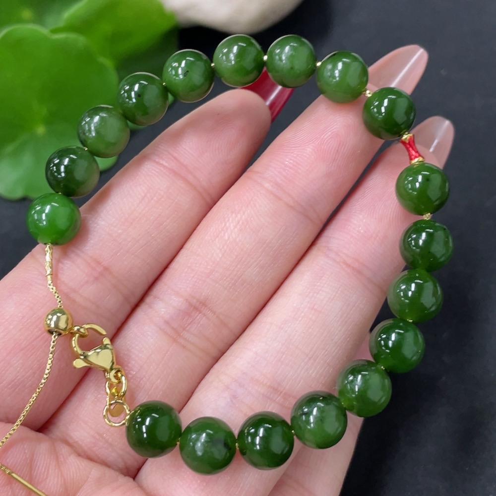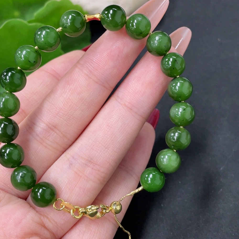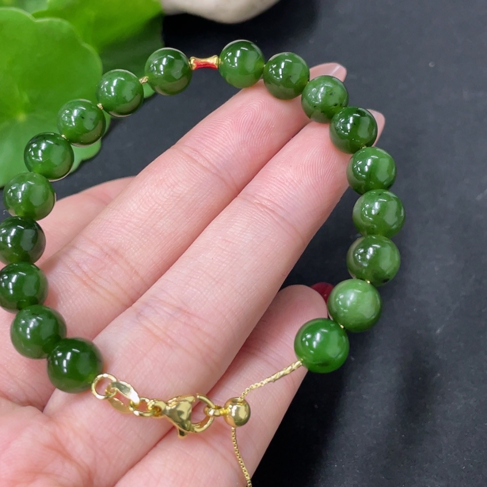 Hetian Jade Bracelet No Imprint Tested Gold Content Marked Red 18k Gold Others Non-Gold Size Approx. 7.8mm Total Weight Approx. 14.9g