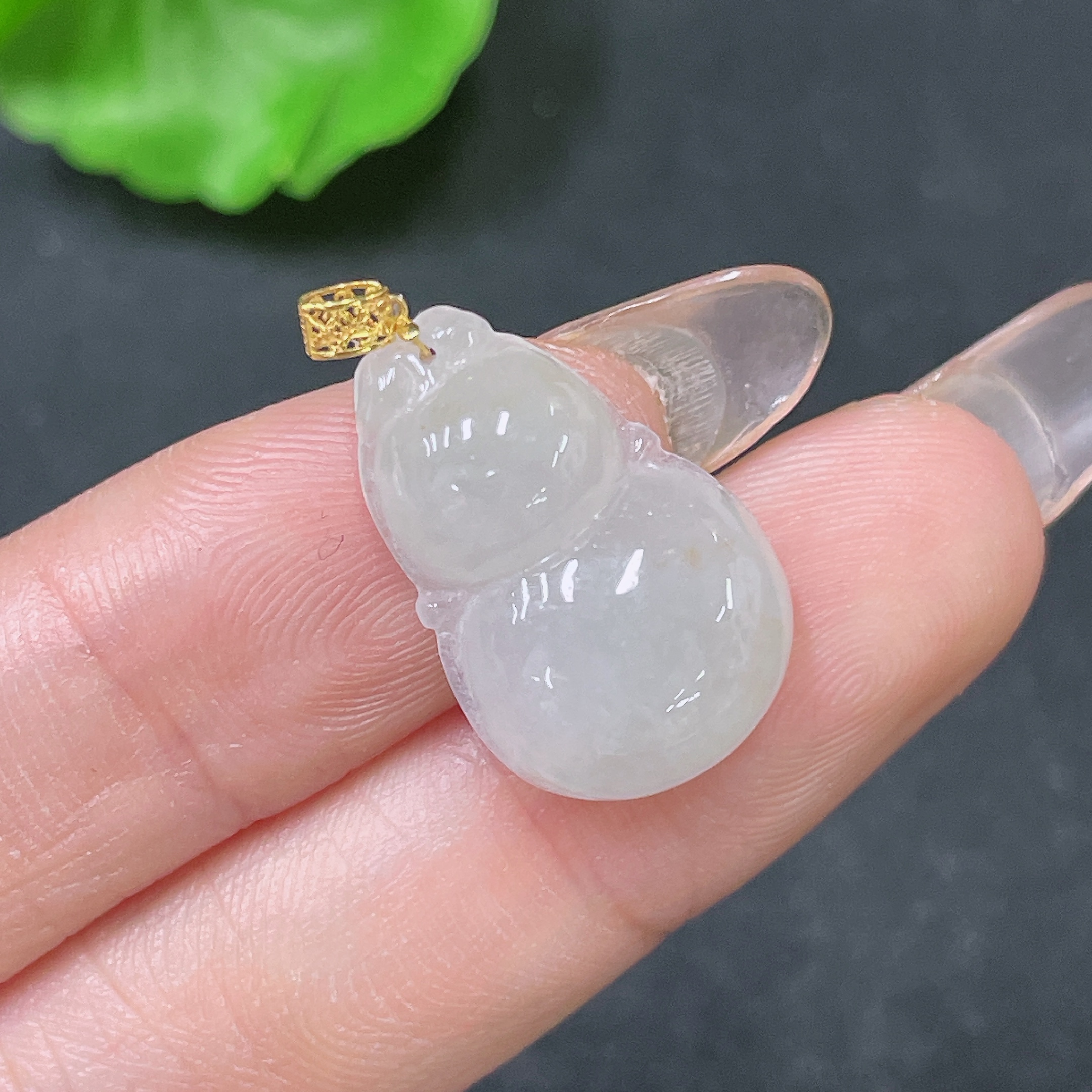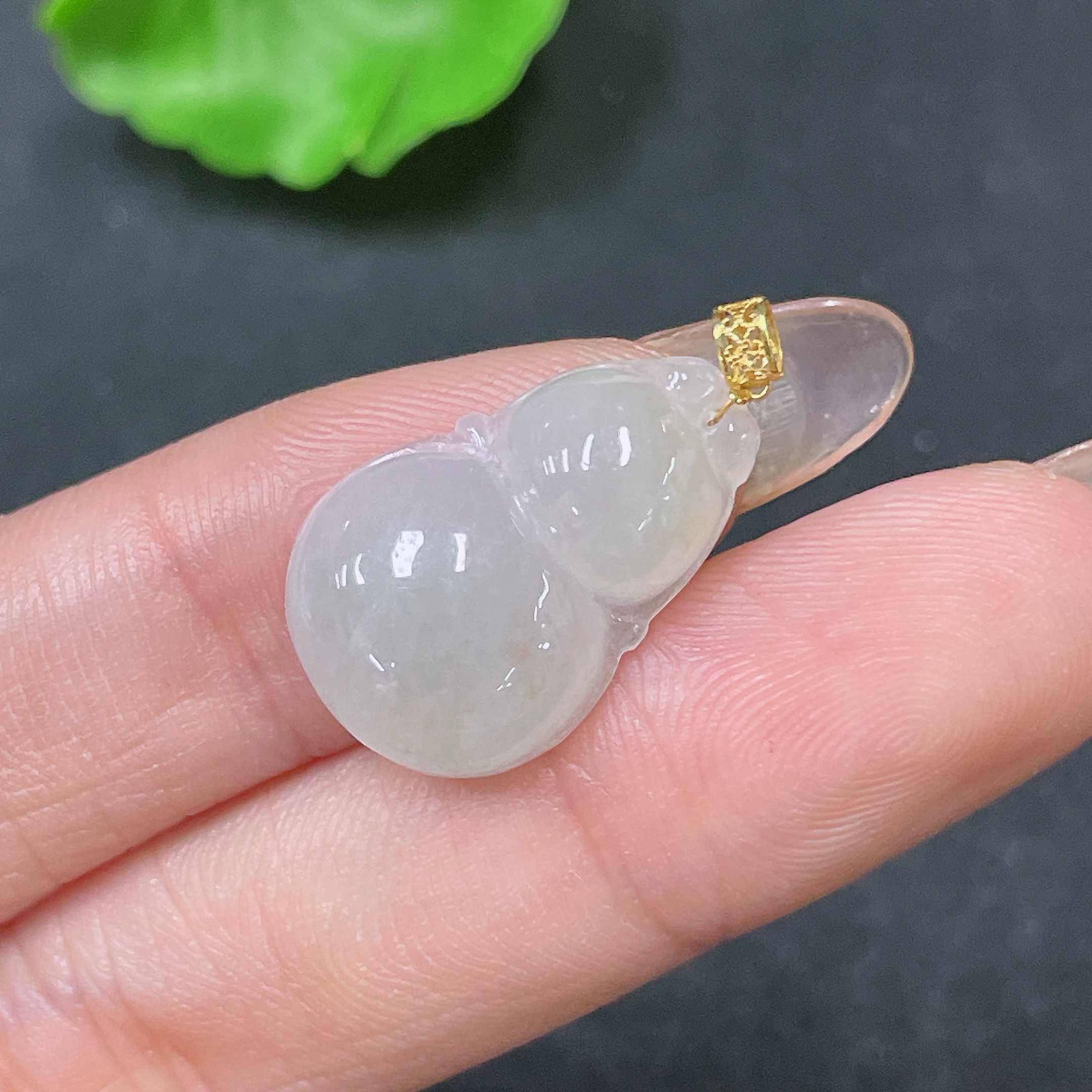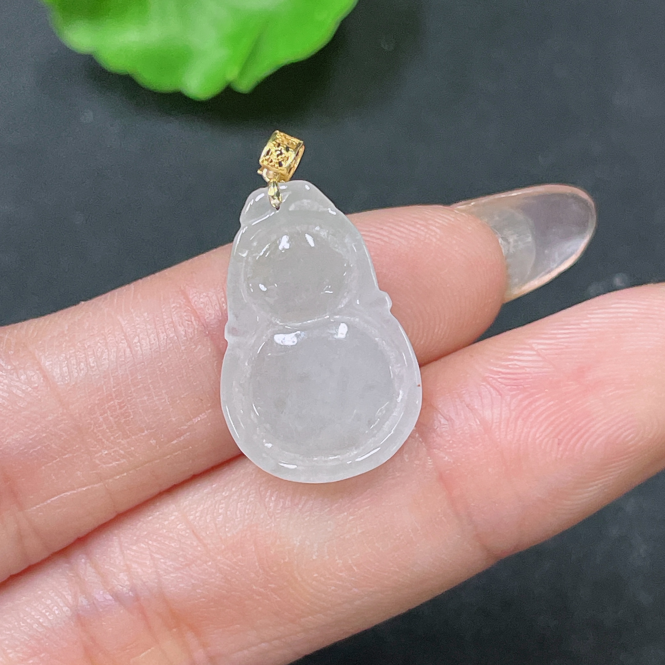 Jadeite Pendant Gourd with 18K Bail Total Weight Approx. 2.54g