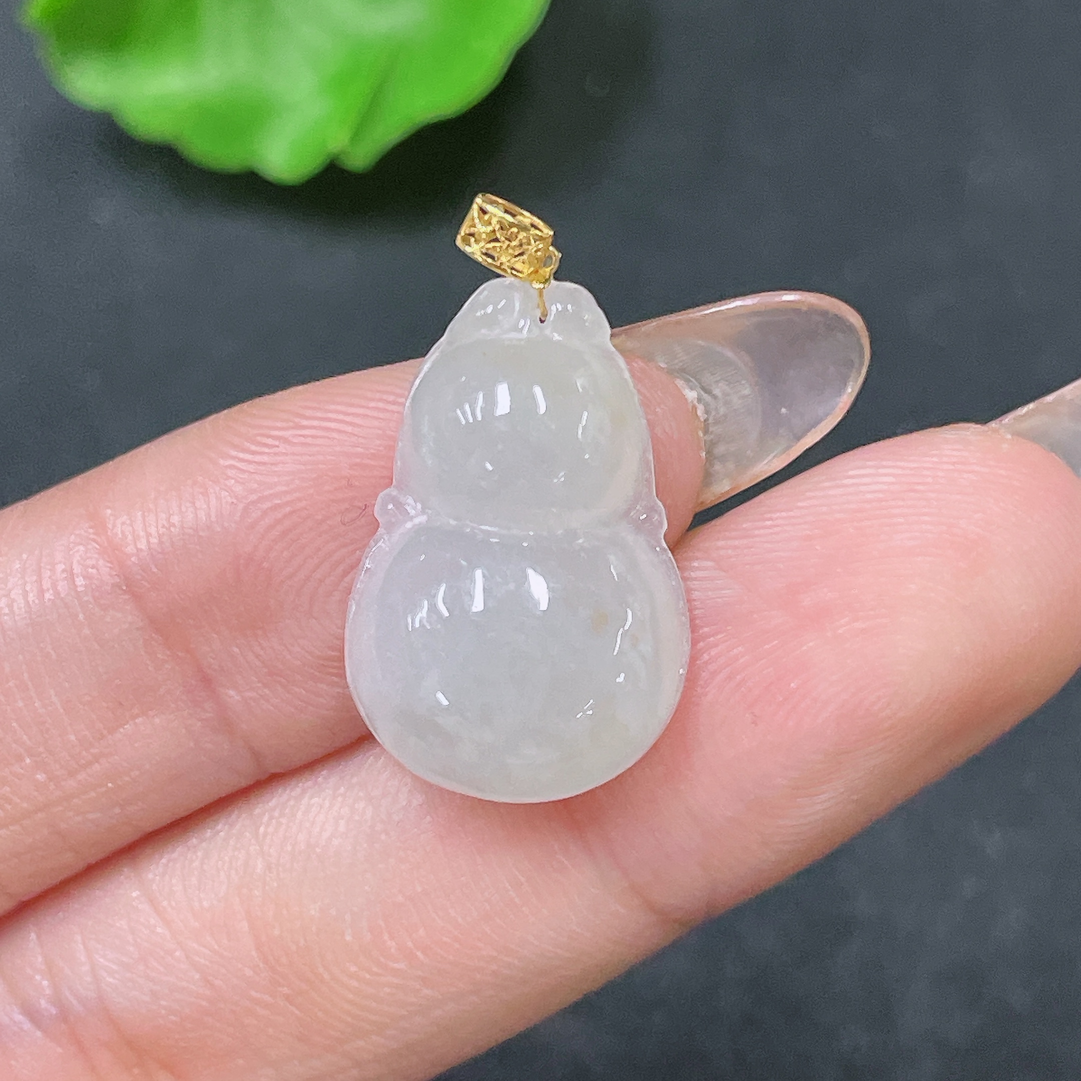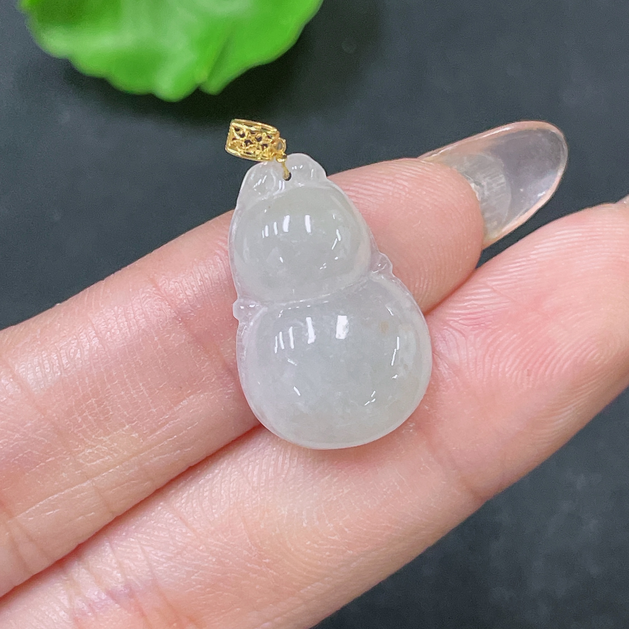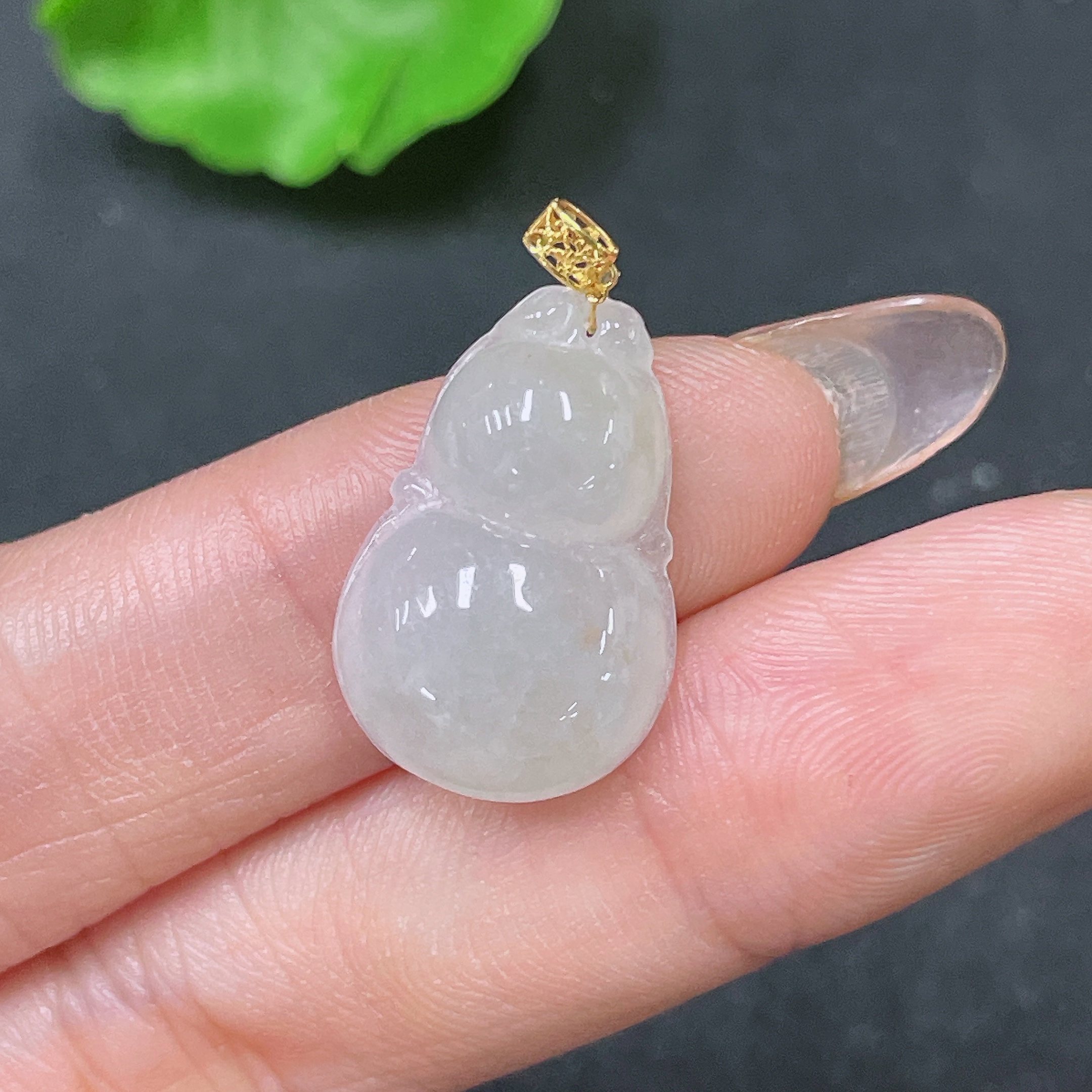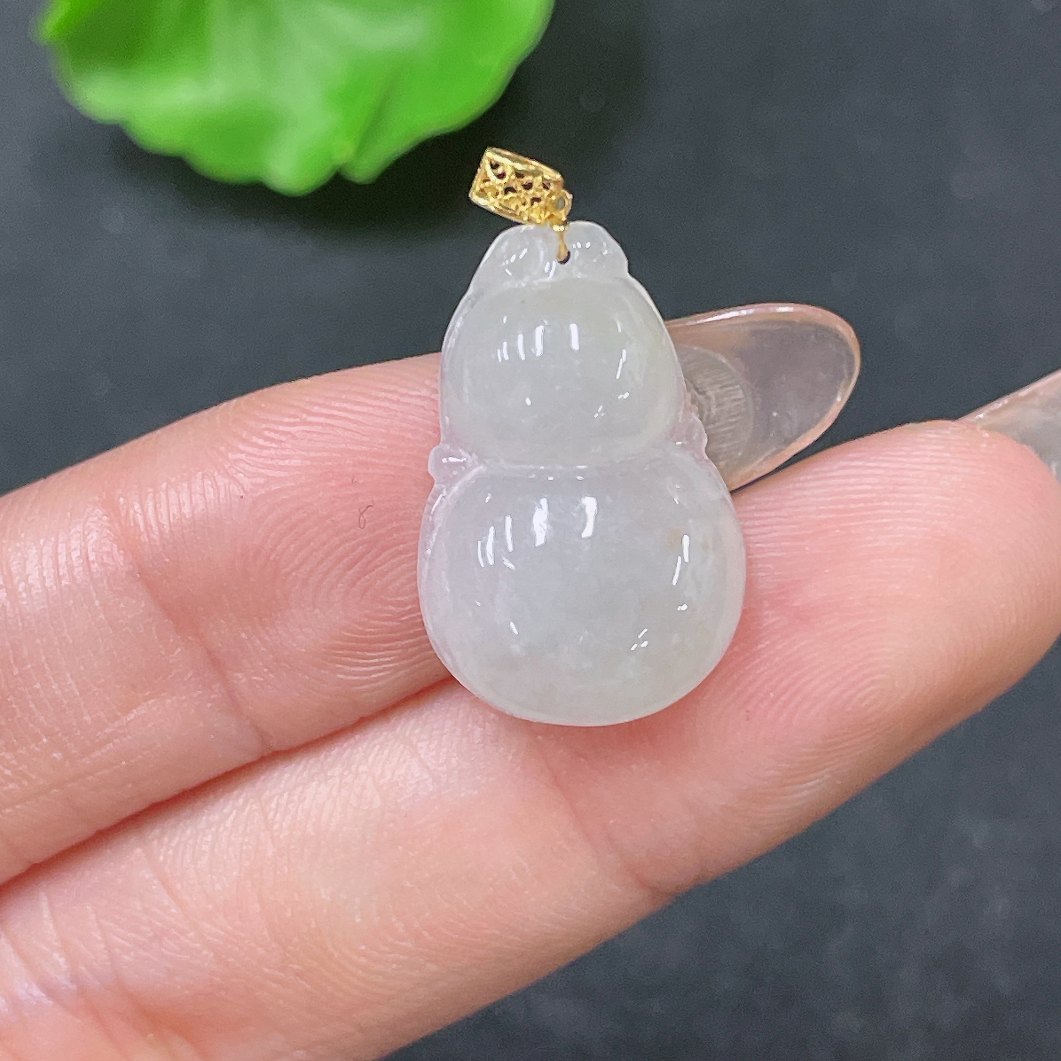 Jadeite Pendant Gourd with 18K Bail Total Weight Approx. 2.54g