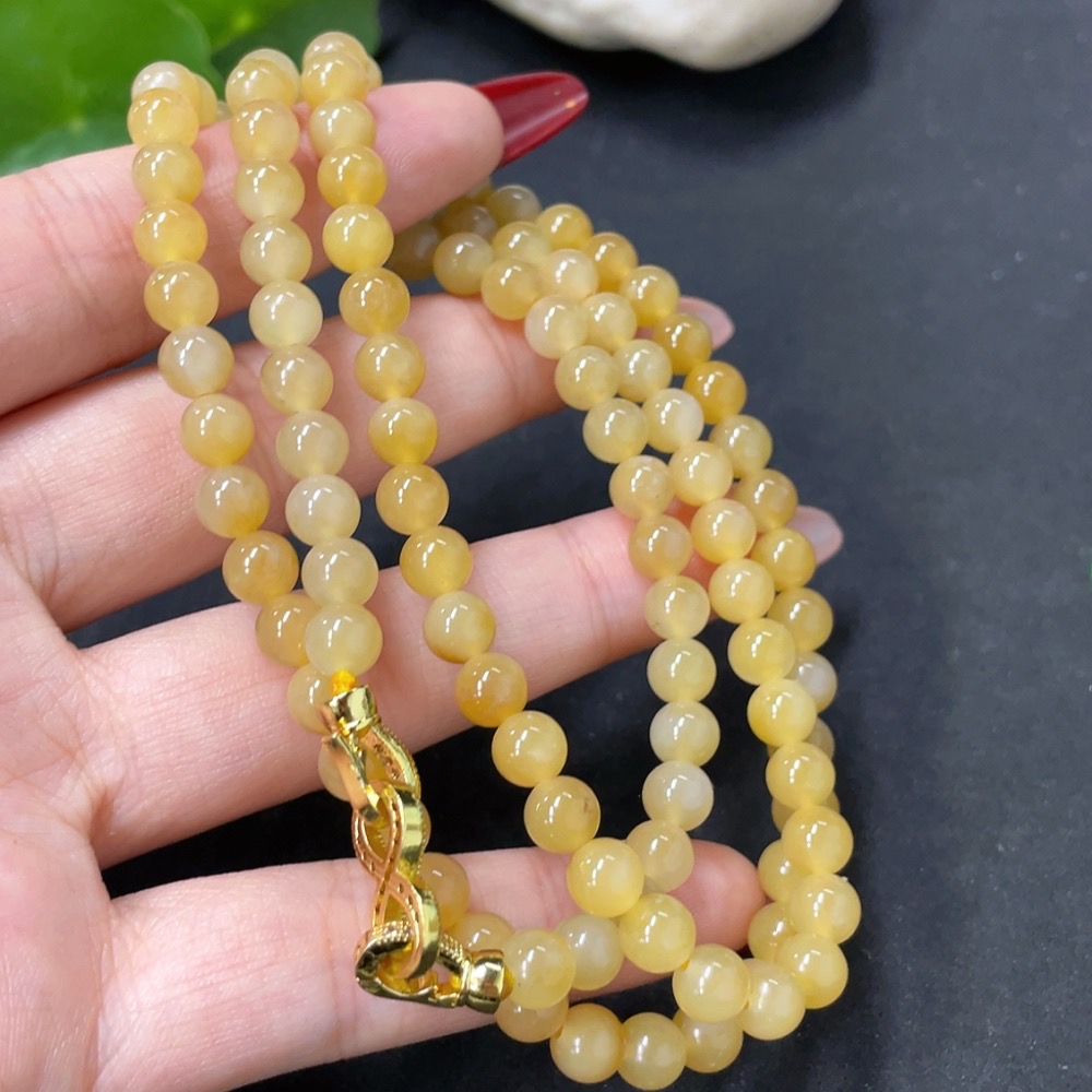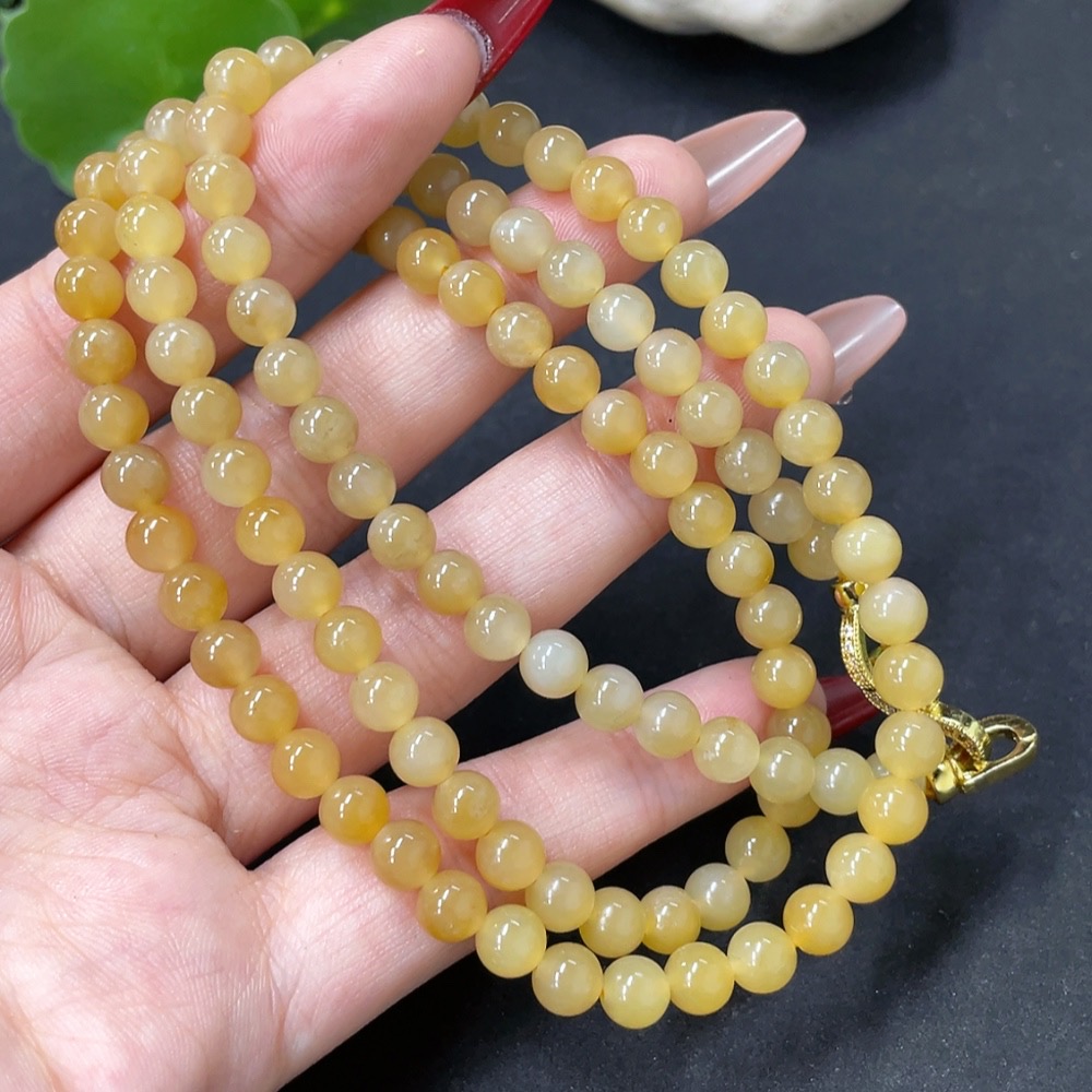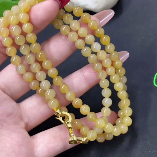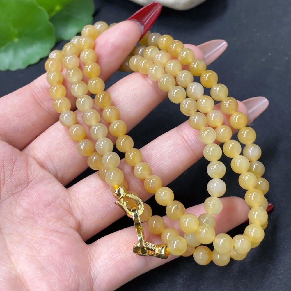 Hetian Jade Bead Necklace, Approx. 5.8mm, Non-Gold, Total Weight Approx. 36.8g