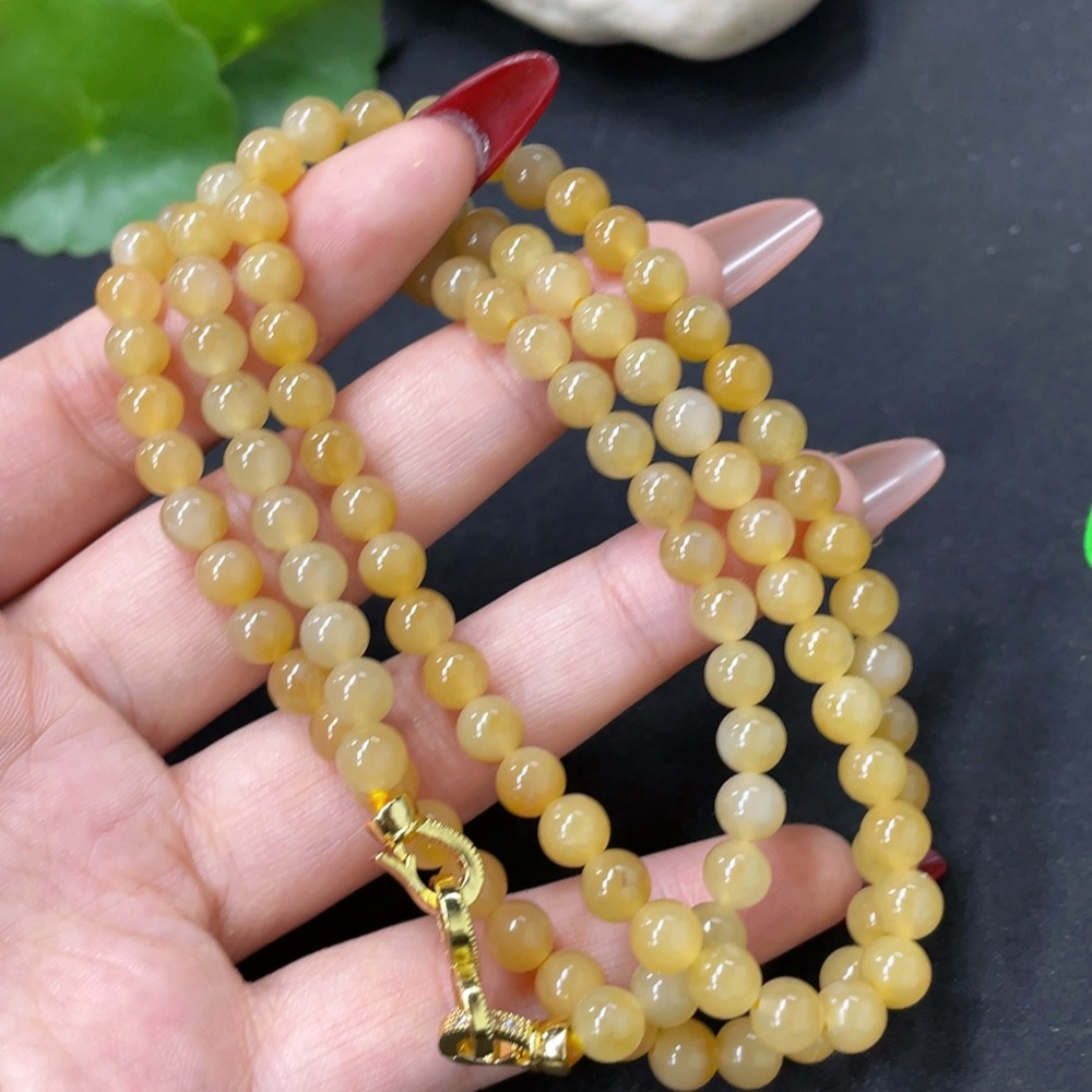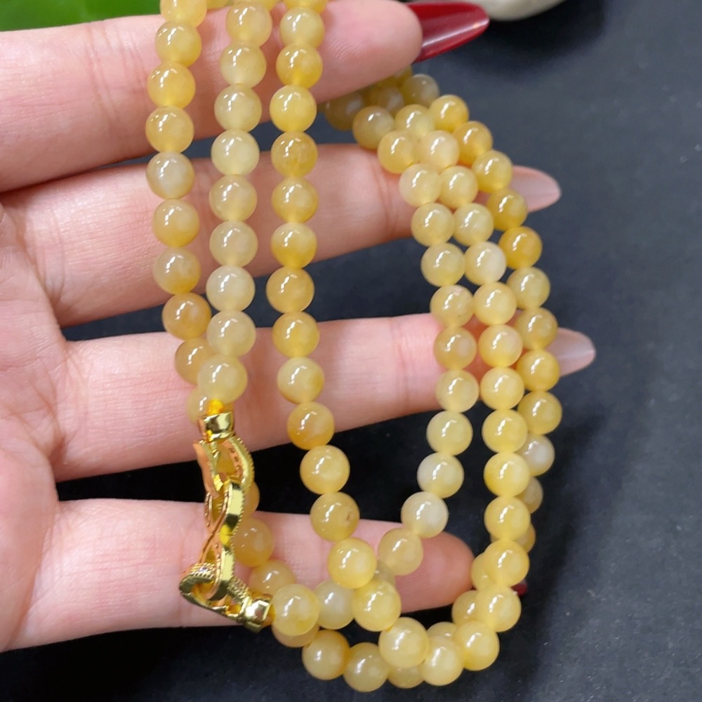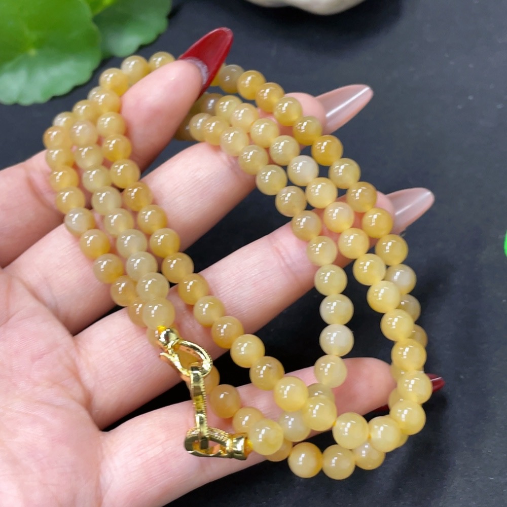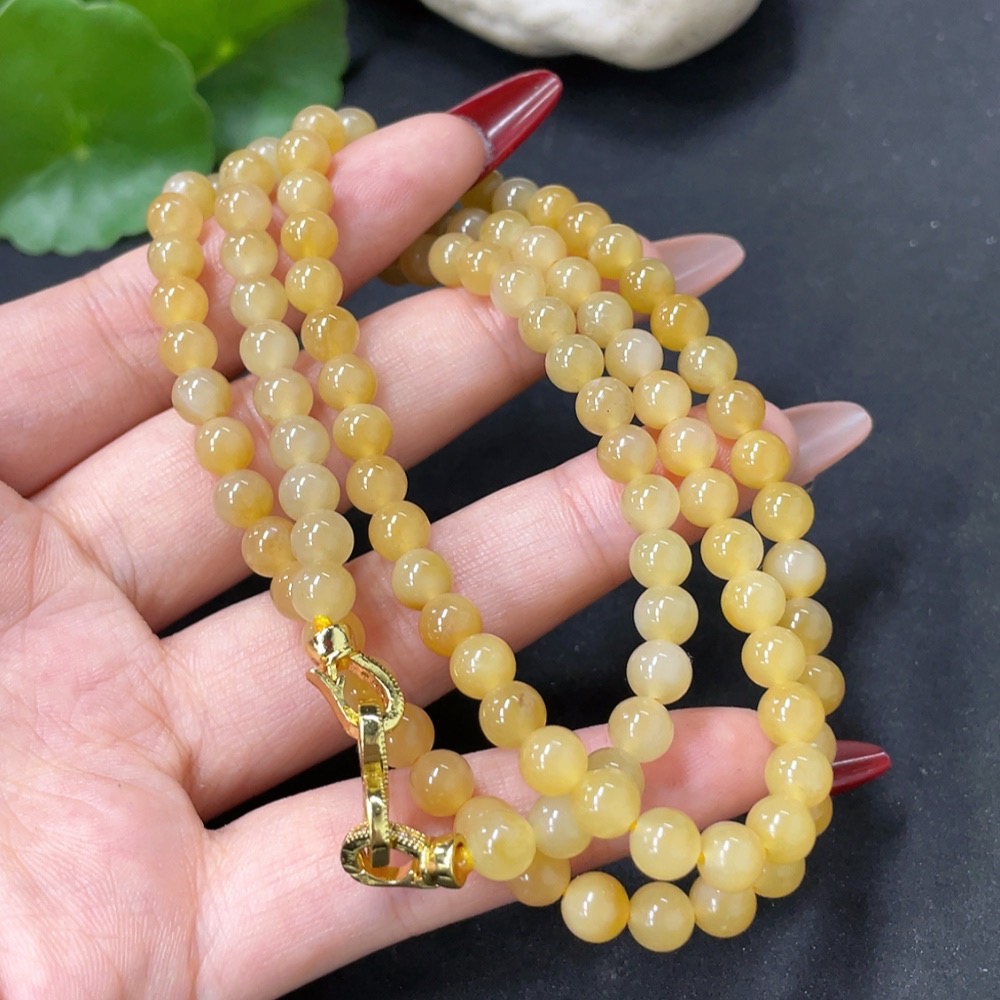 Hetian Jade Bead Necklace, Approx. 5.8mm, Non-Gold, Total Weight Approx. 36.8g