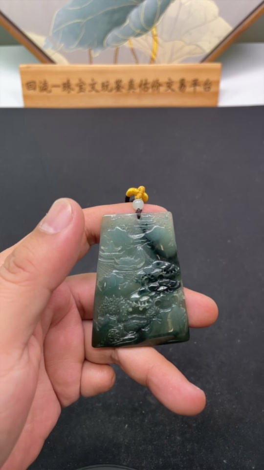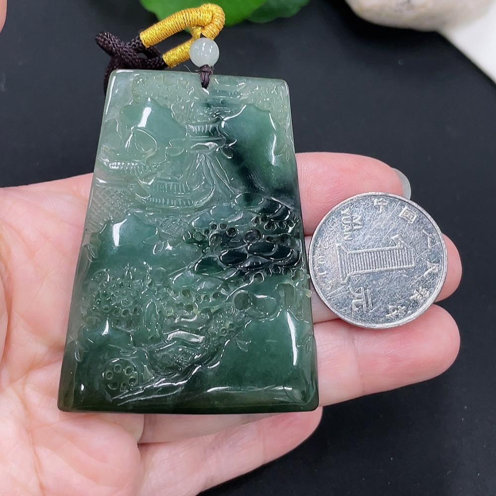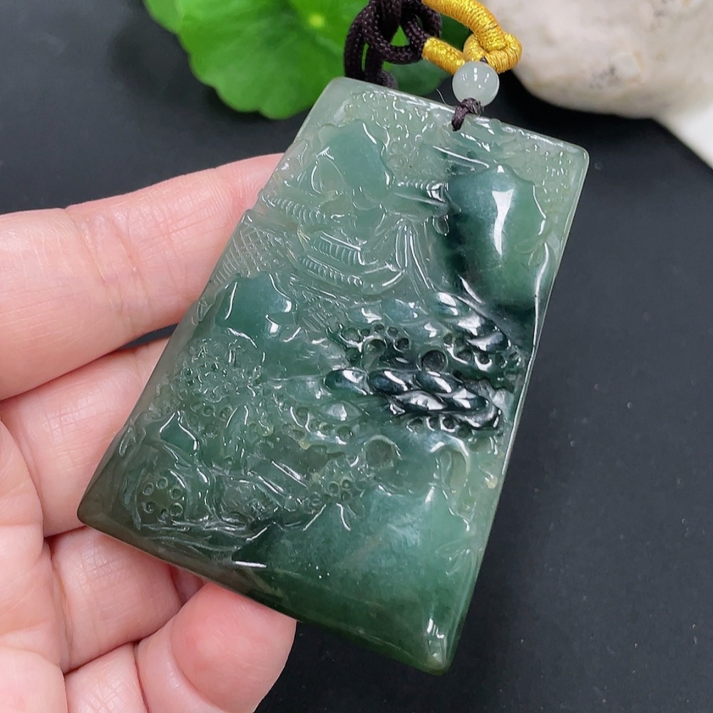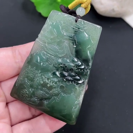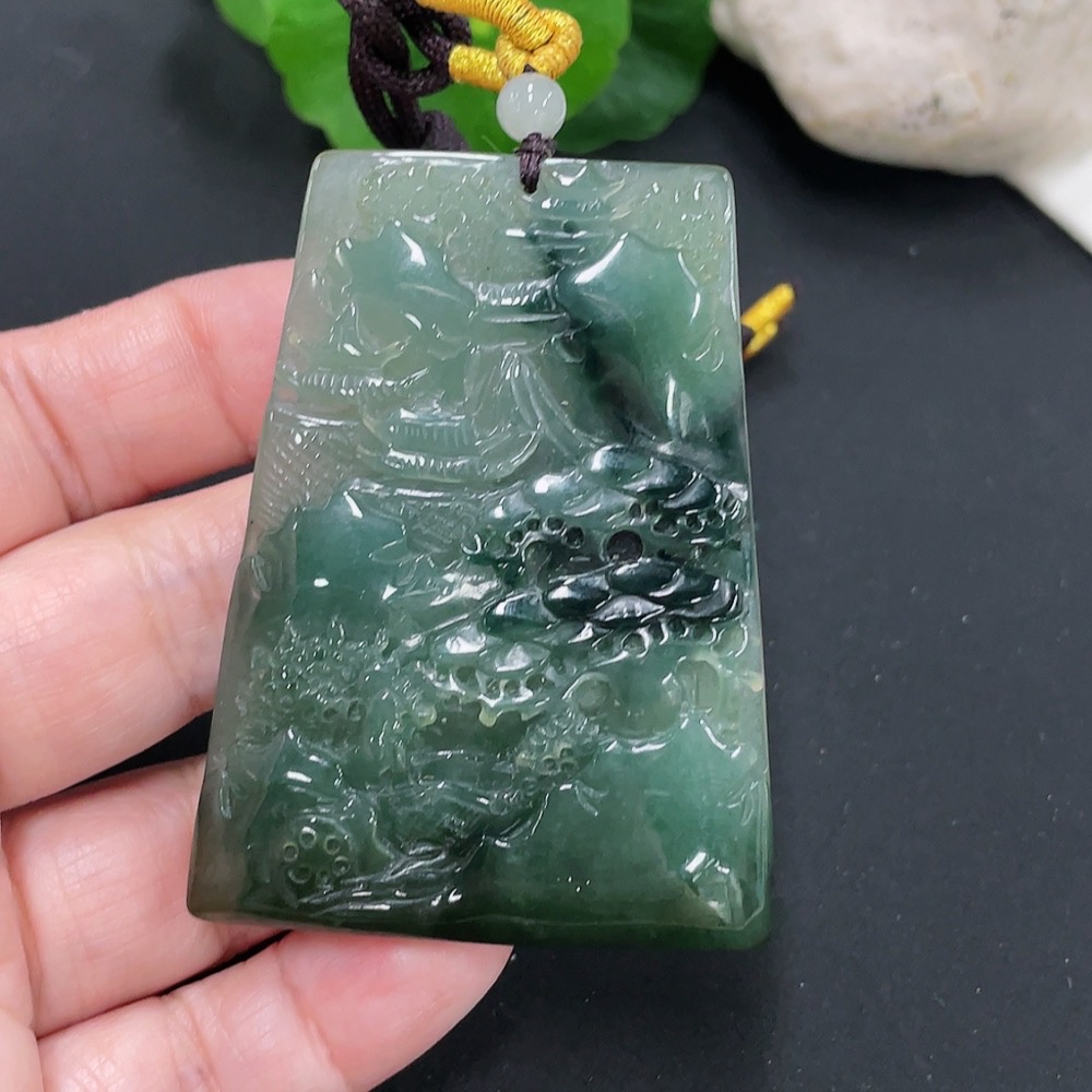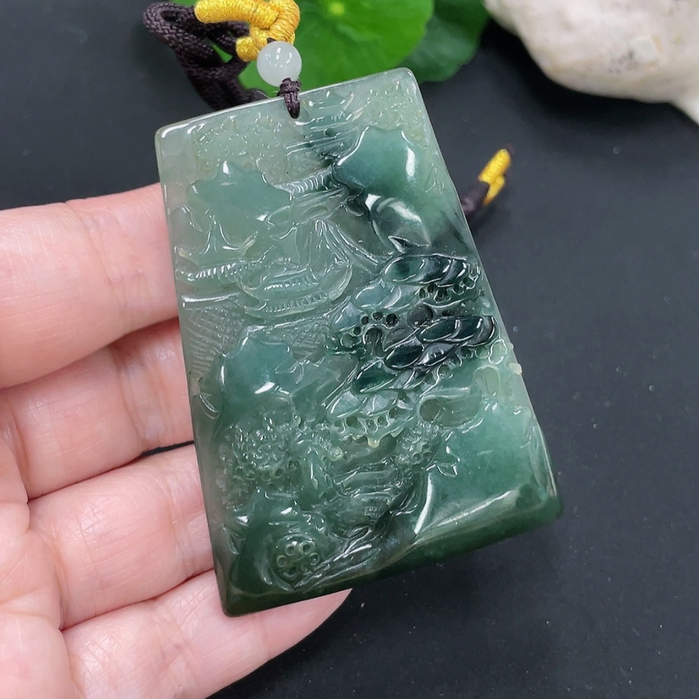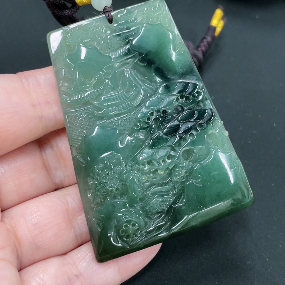 Jadeite Landscape Pendant with a total weight of approximately 39.2 grams (including rope weight)
