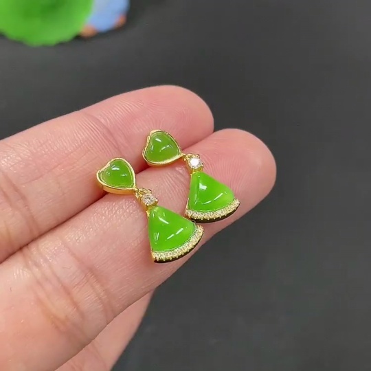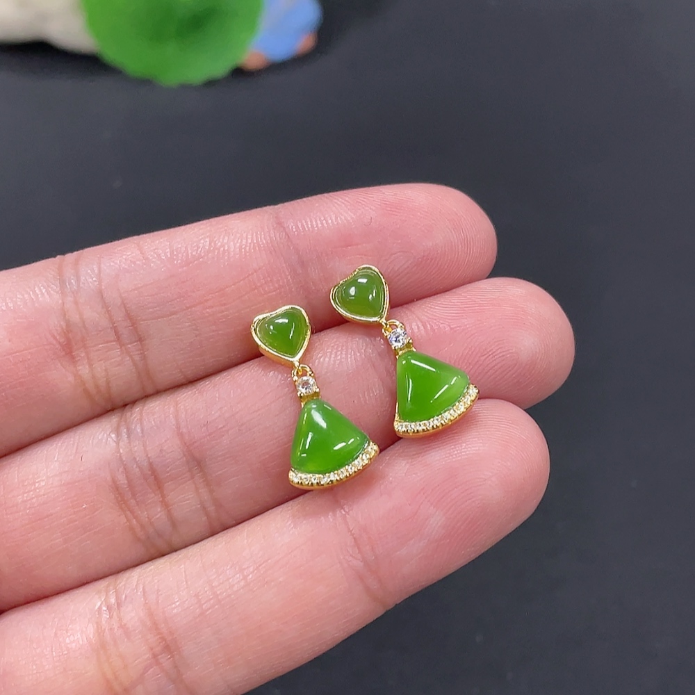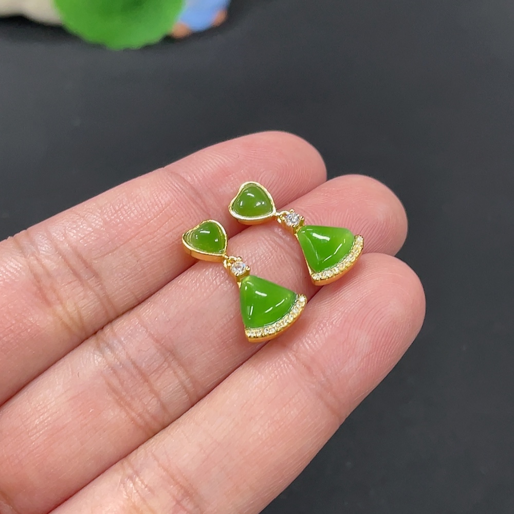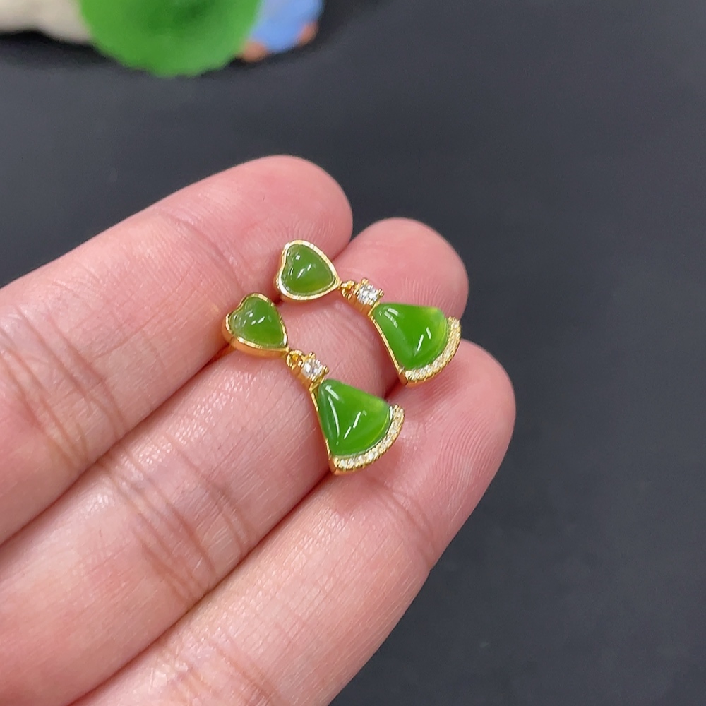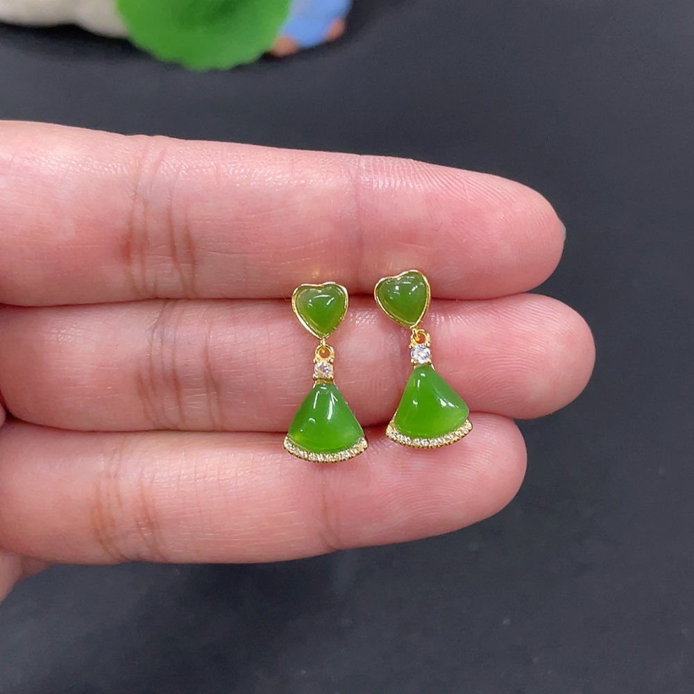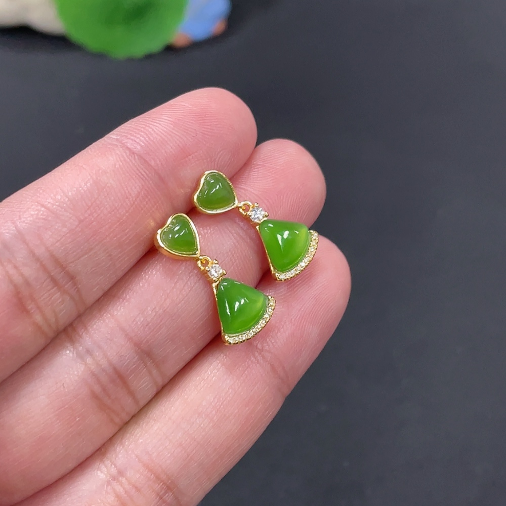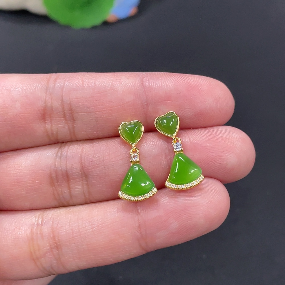 Hetian Jade Inlaid Earrings Total Weight Approx. 1.9g Non-Gold