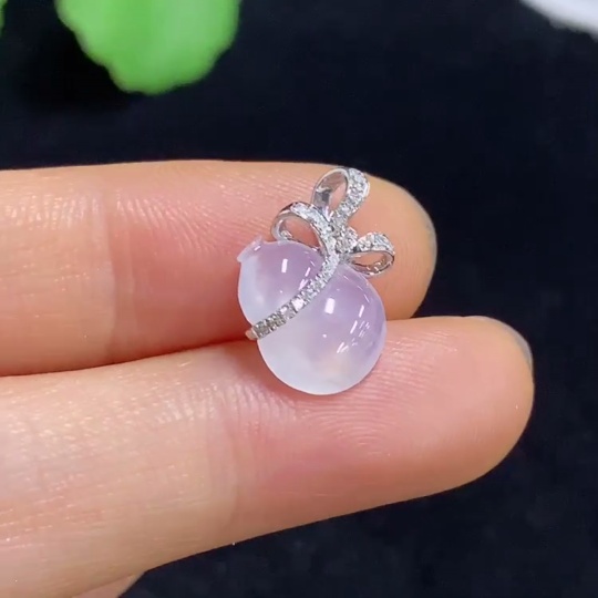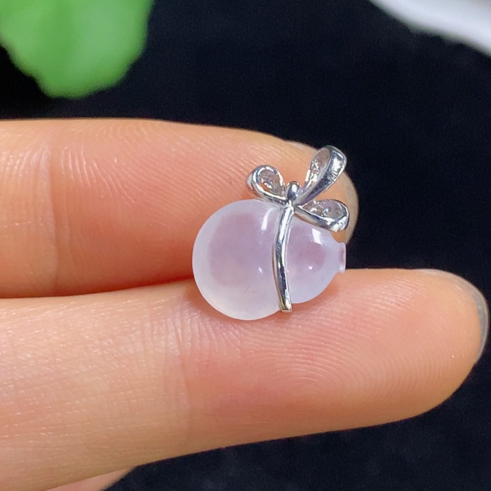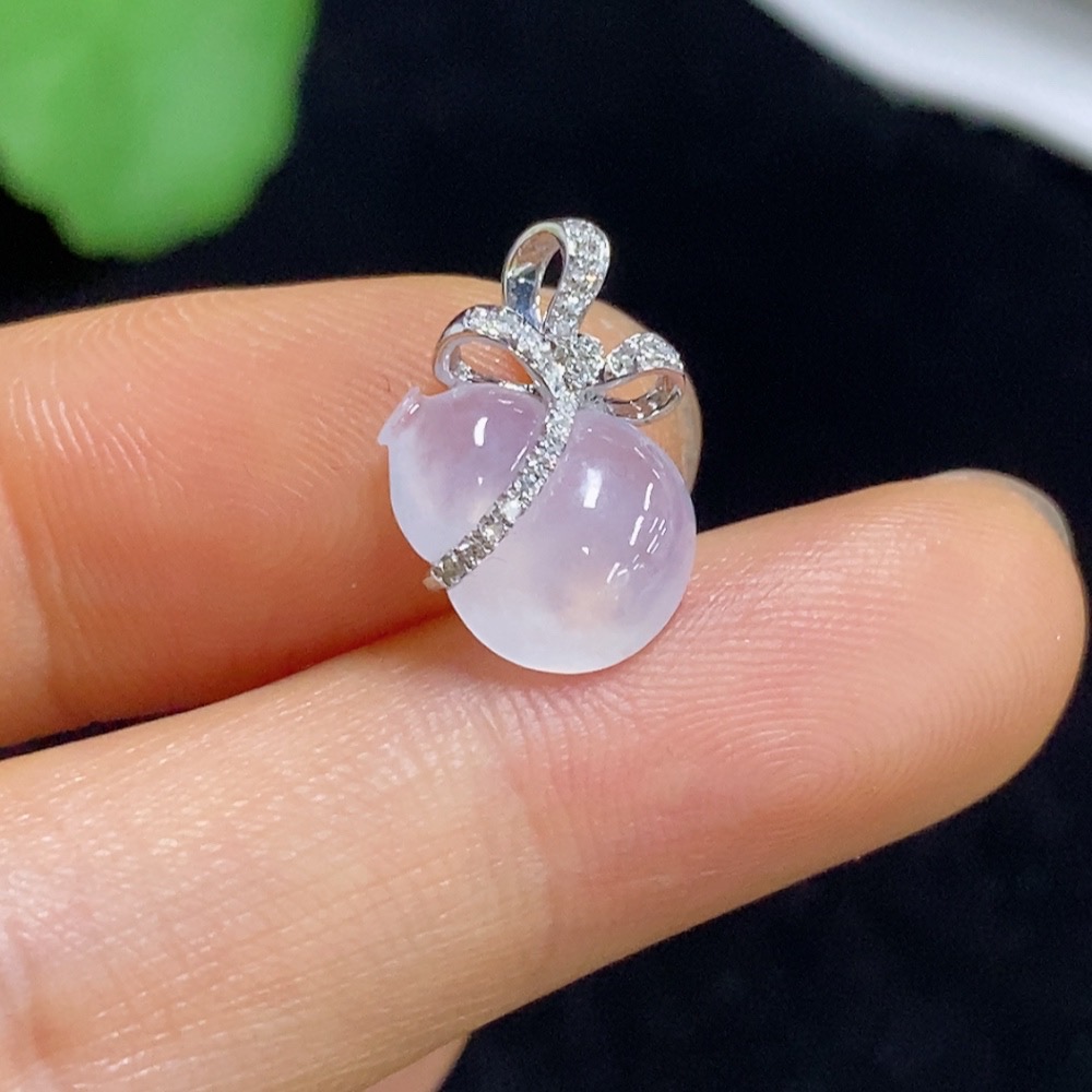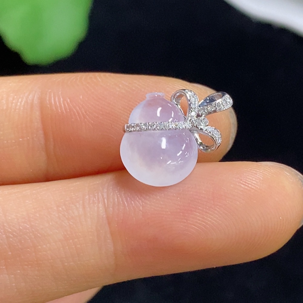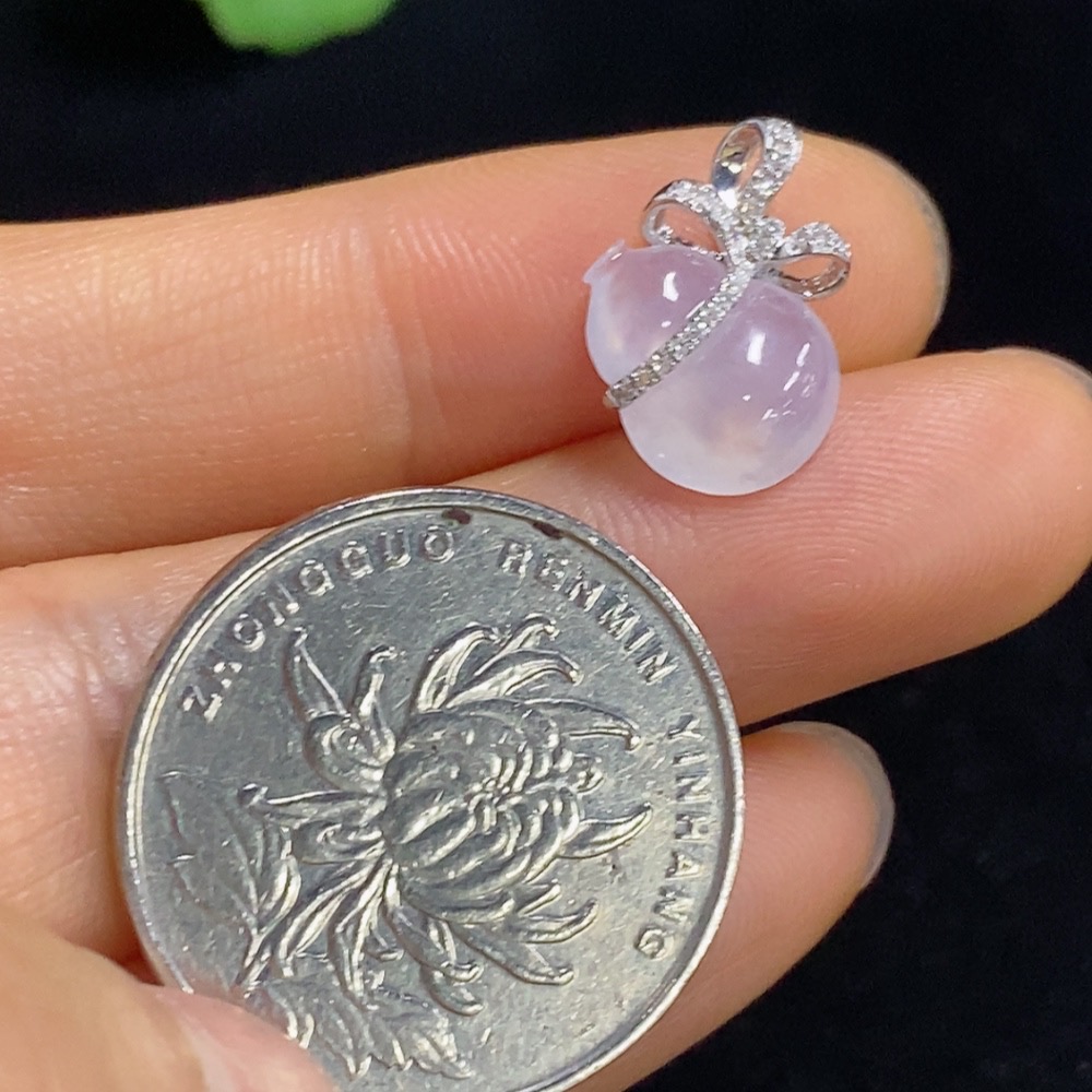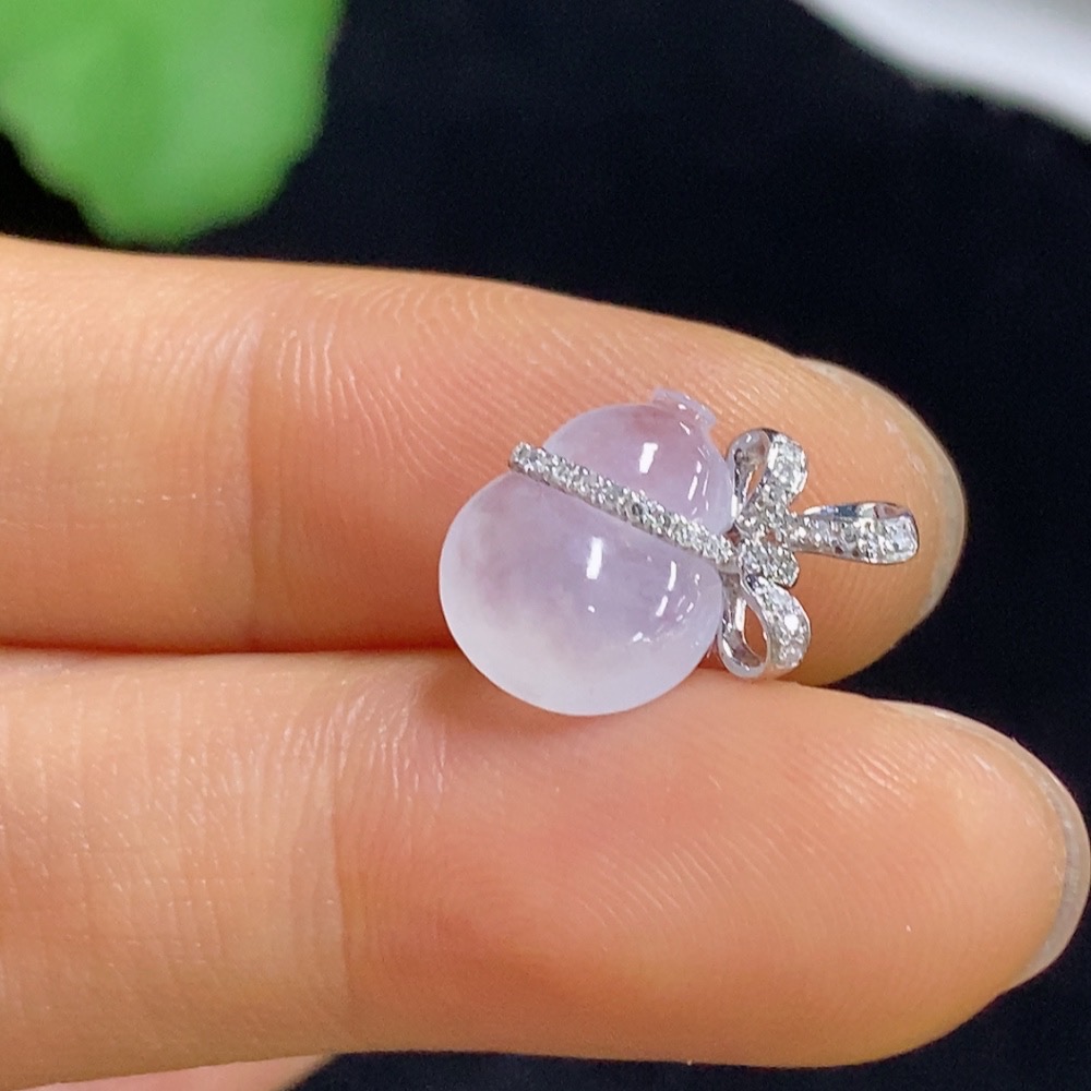 Jadeite Gourd Pendant with 18k Gold and Diamond Accents, Total Weight Approximately 1.05g