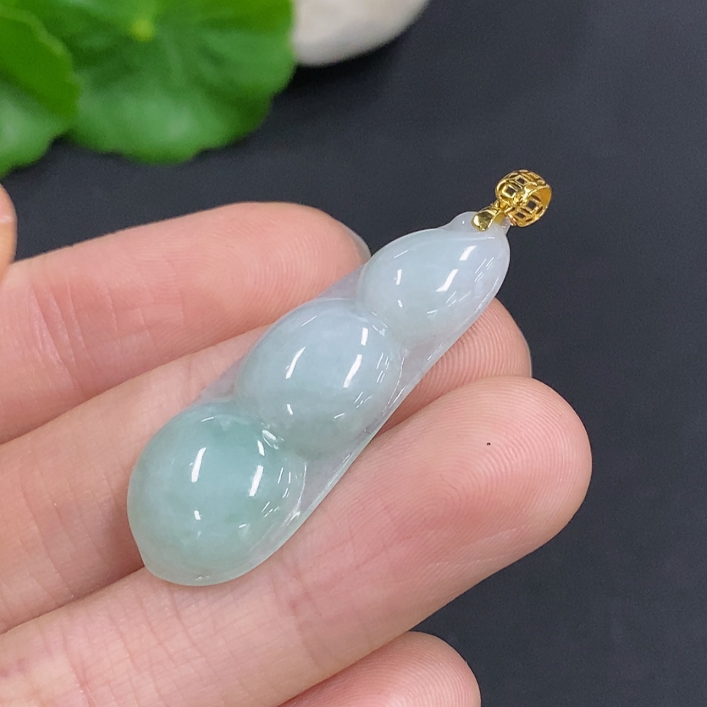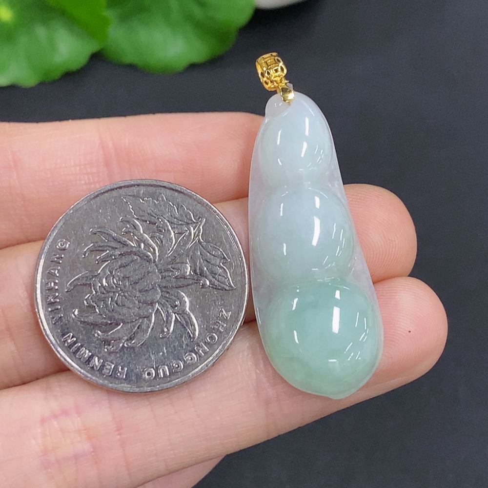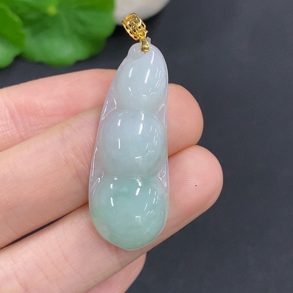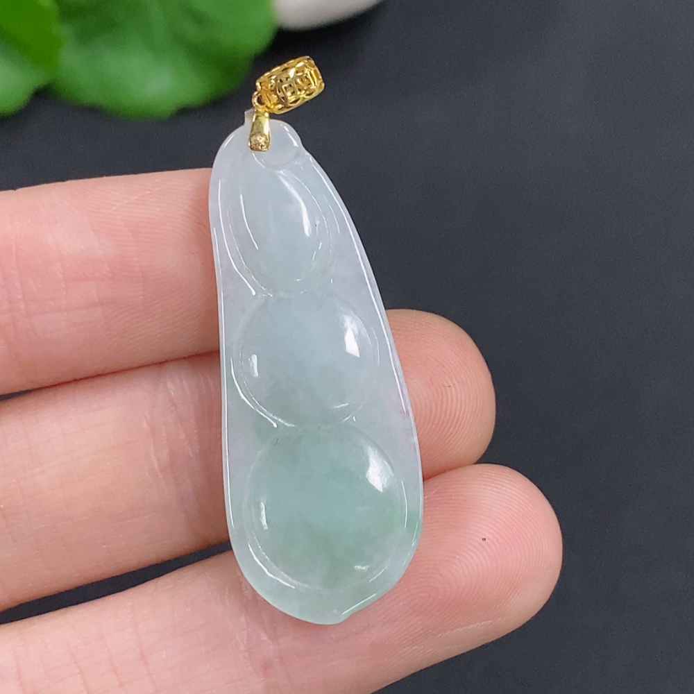 Jadeite Lucky Bean Pendant Total Weight Approx.4.69g 18k Gold Clasp