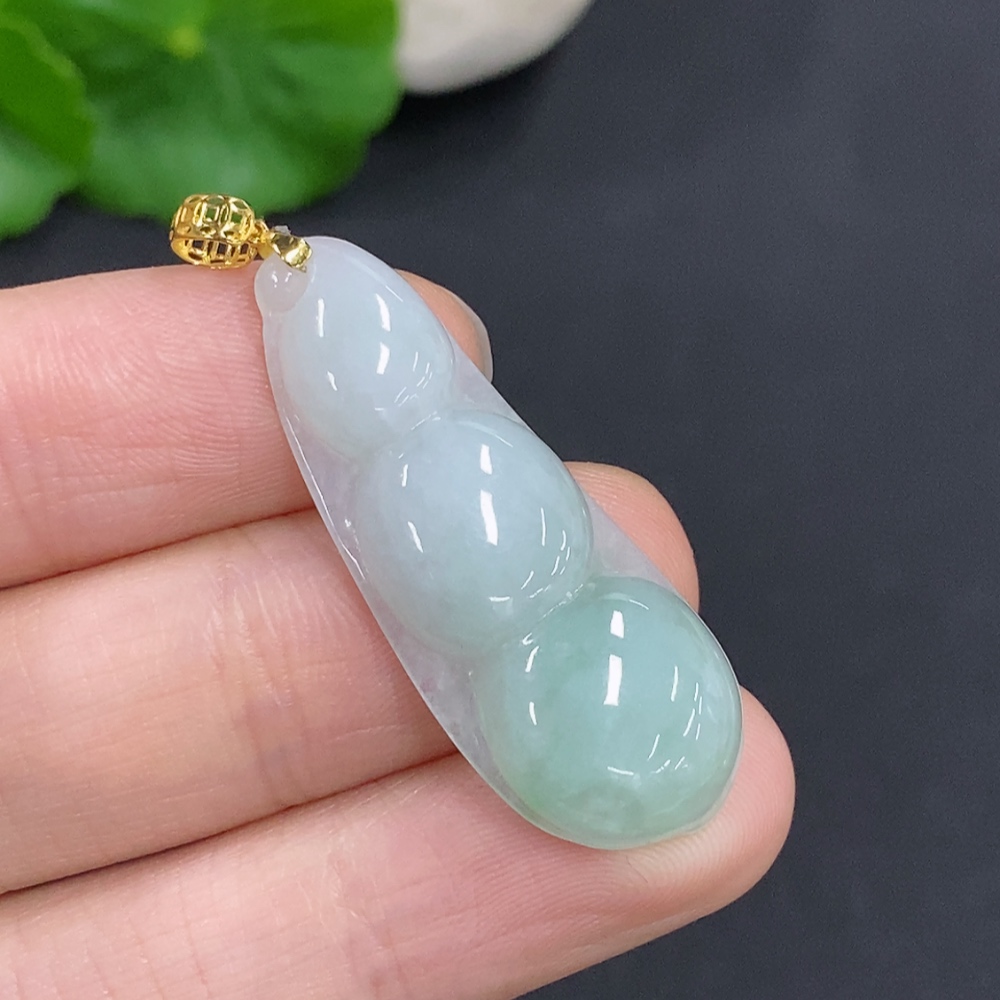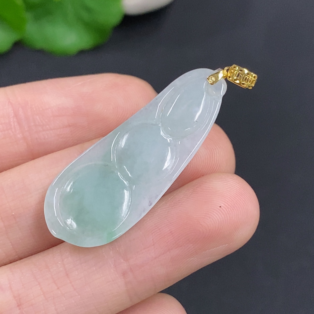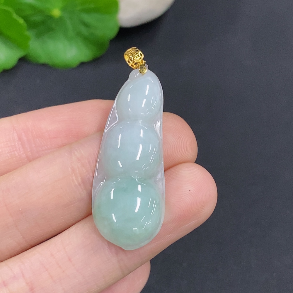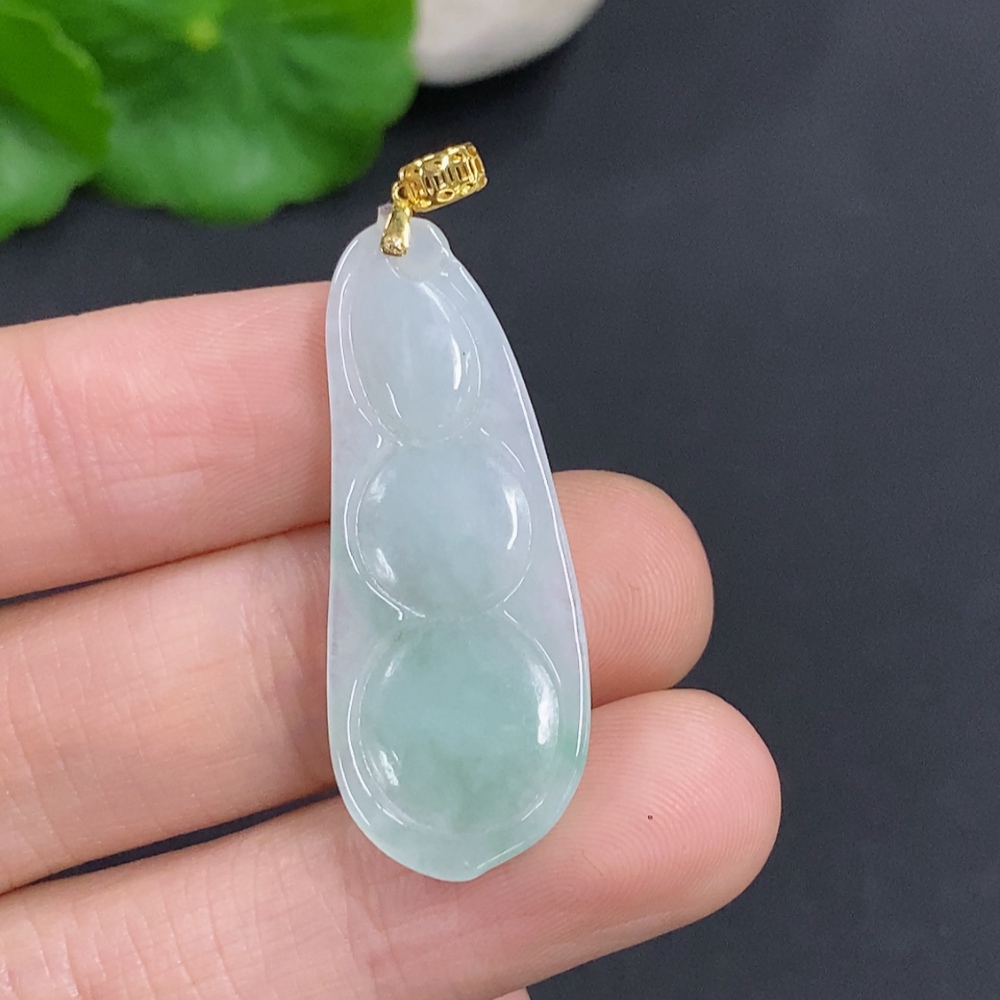 Jadeite Lucky Bean Pendant Total Weight Approx.4.69g 18k Gold Clasp