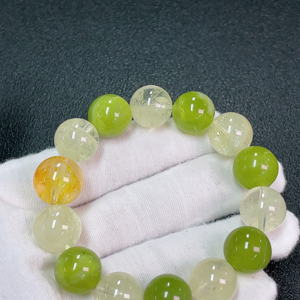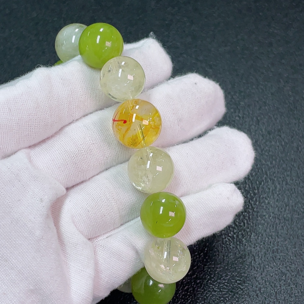 Crystal Bracelet Total Weight Approx. 49.67g Size 13.7mm with Xiuyan Jade Accent Stones May Be Non-Natural