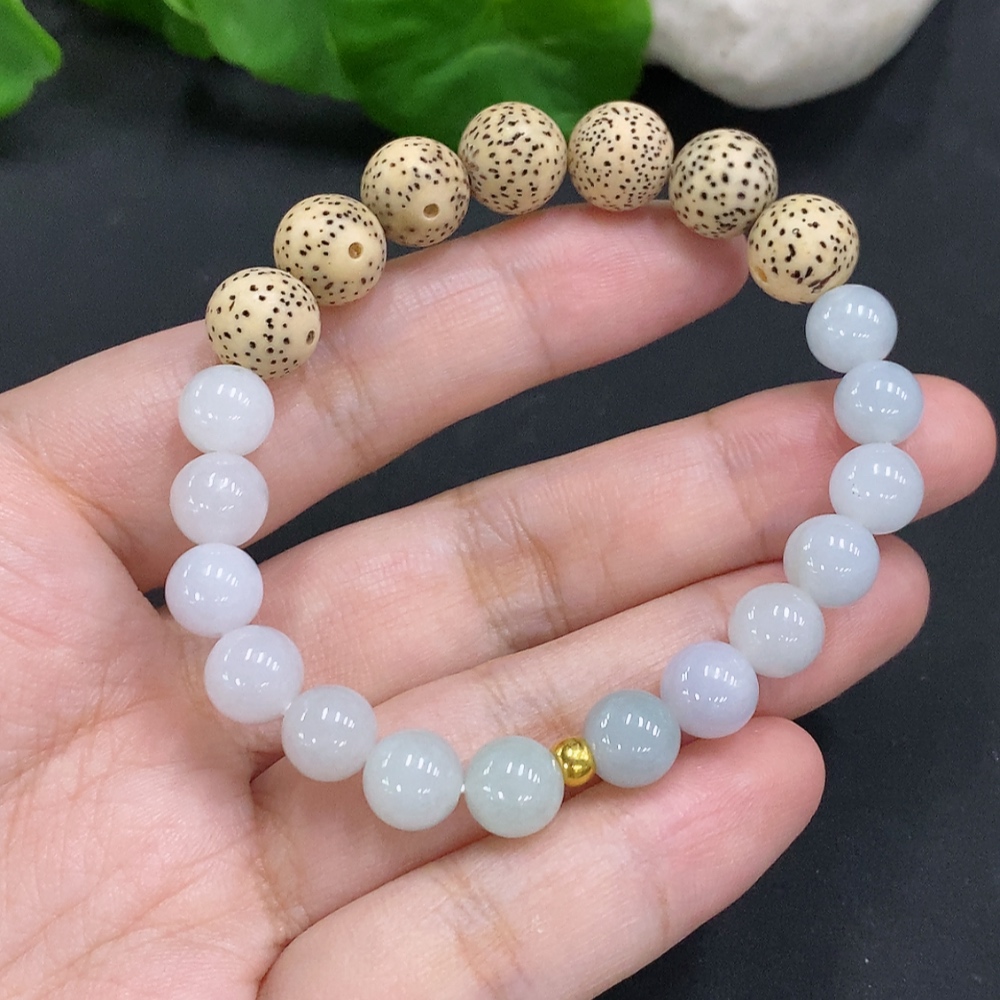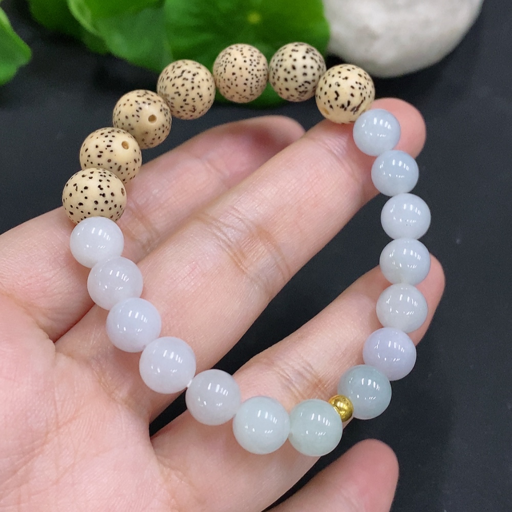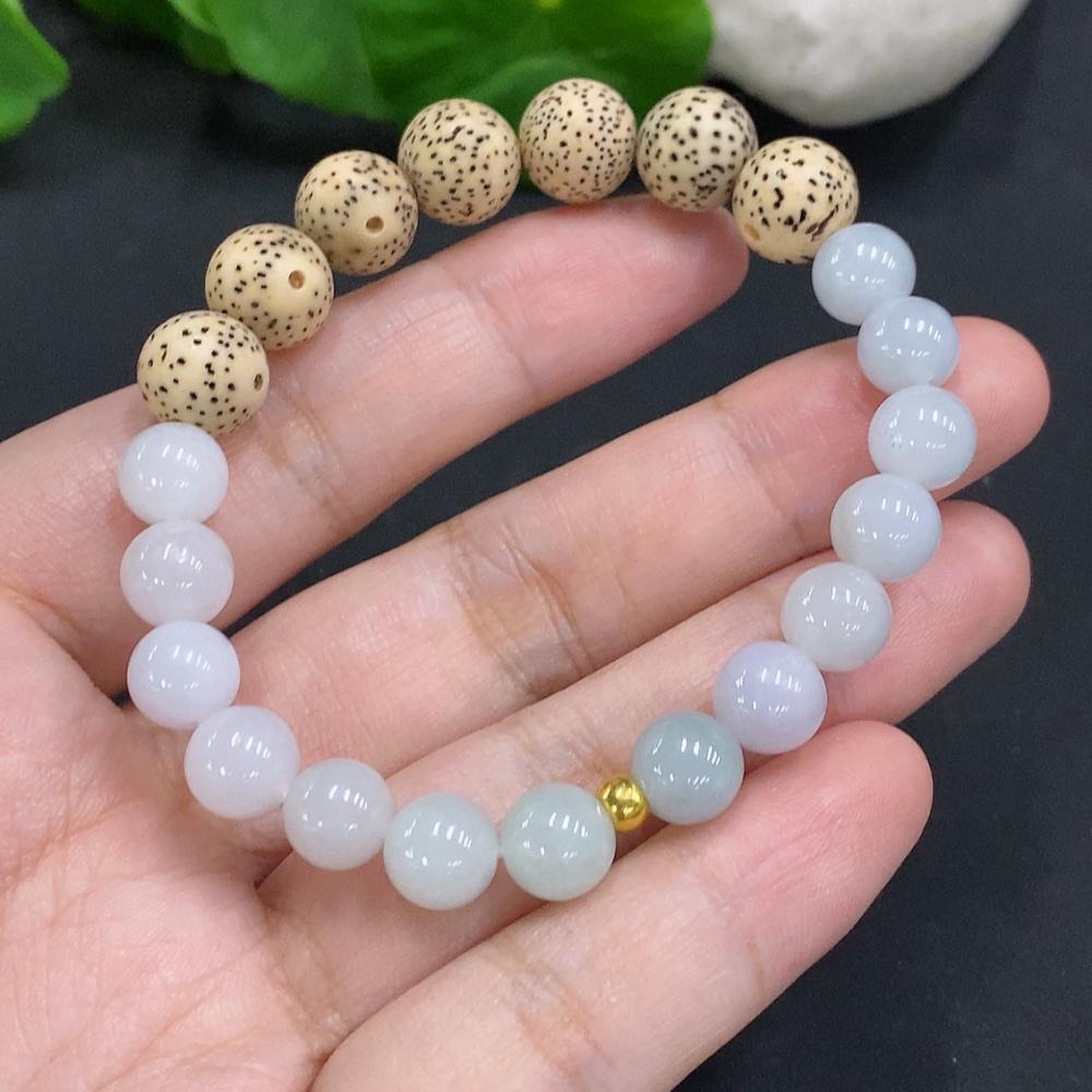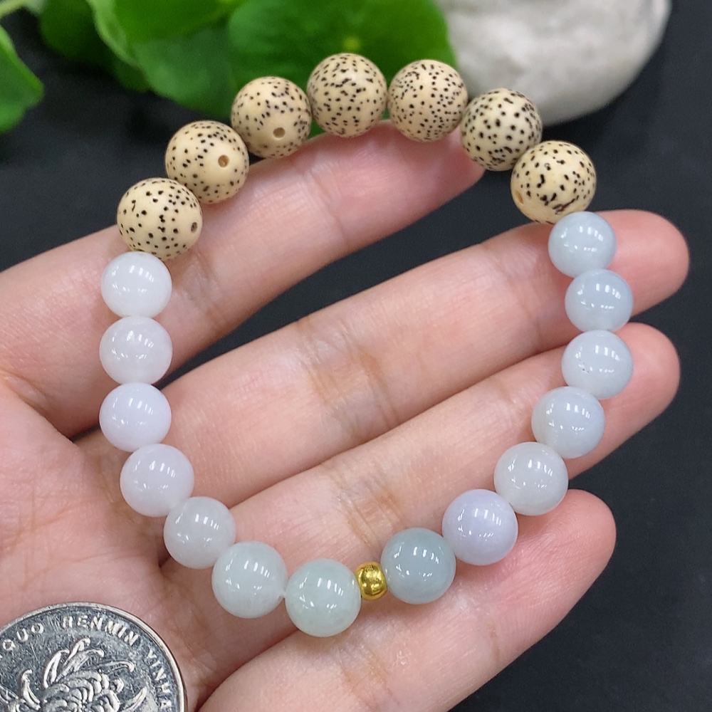 Jadeite Bead Necklace Approx. 7.7mm (Au99%) Total Weight Approx. 15.9g (Matching Beads Non-A)