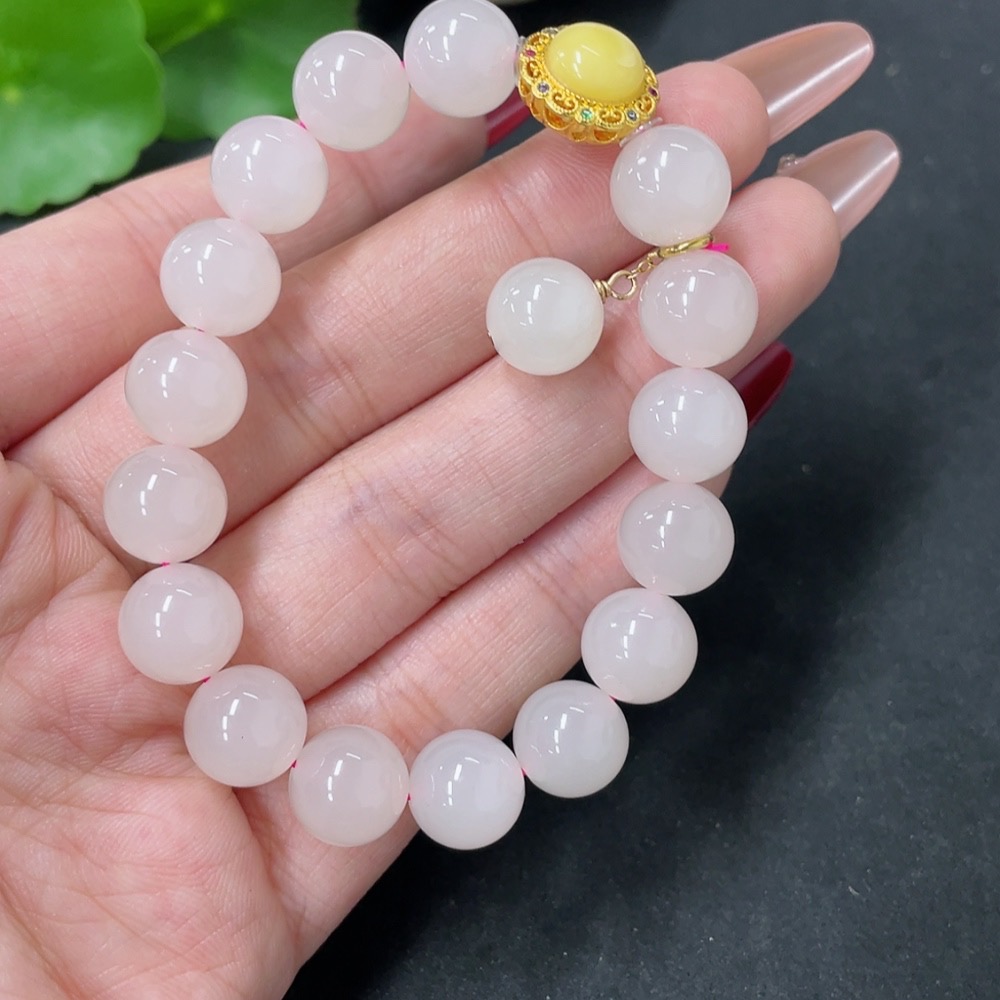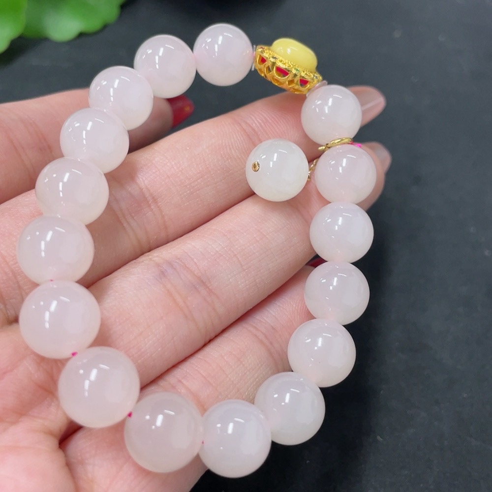 Hetian Jade Bracelet, Approx. 9.6mm, Total Weight Approx. 26.1g, Non-Hetian Jade Beads, Red Marked Suspected Gold-Plated, Rest Gold Content 41%