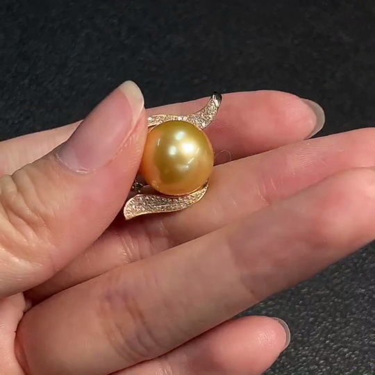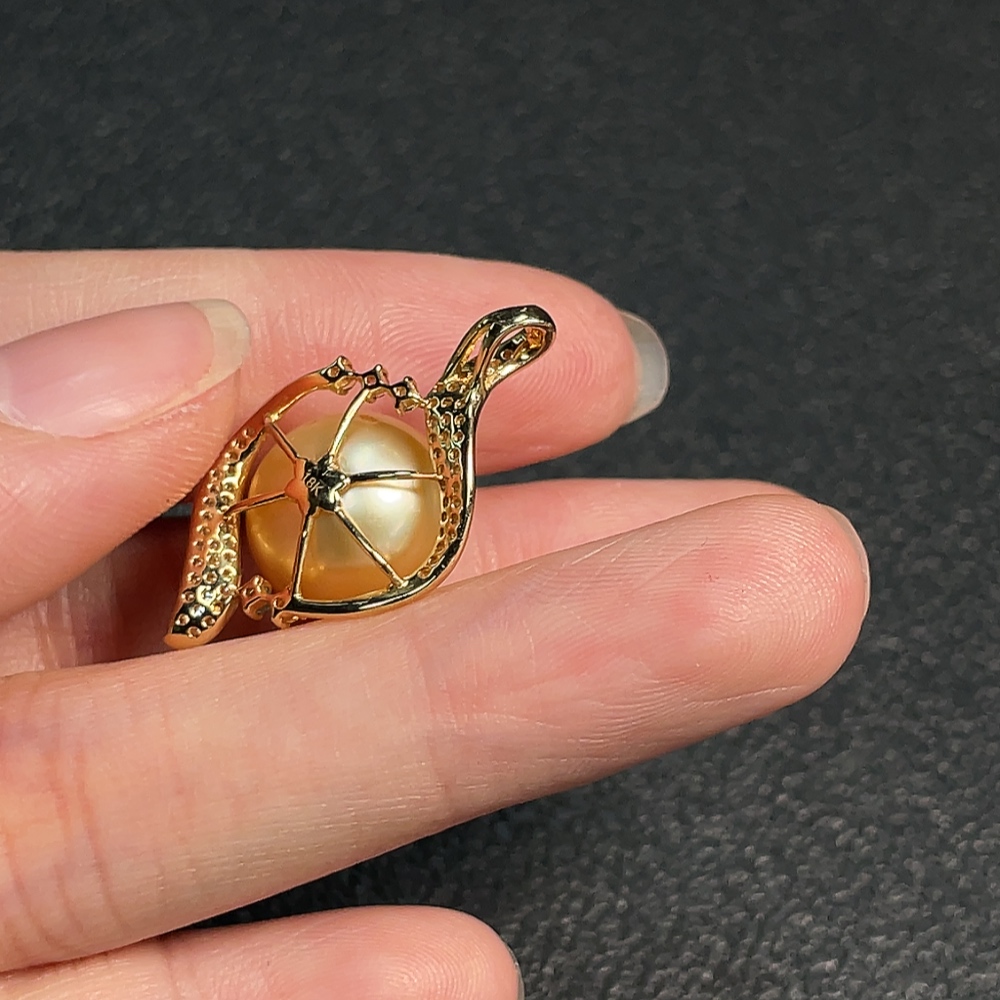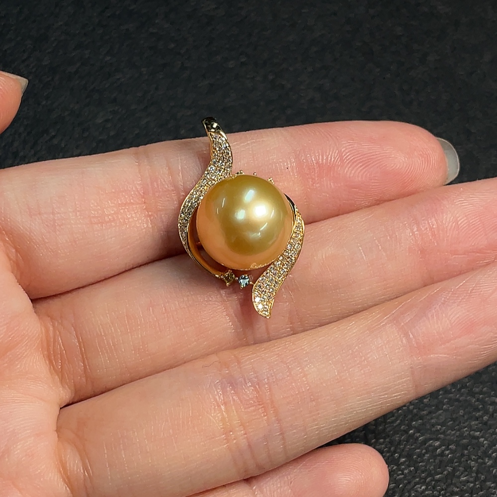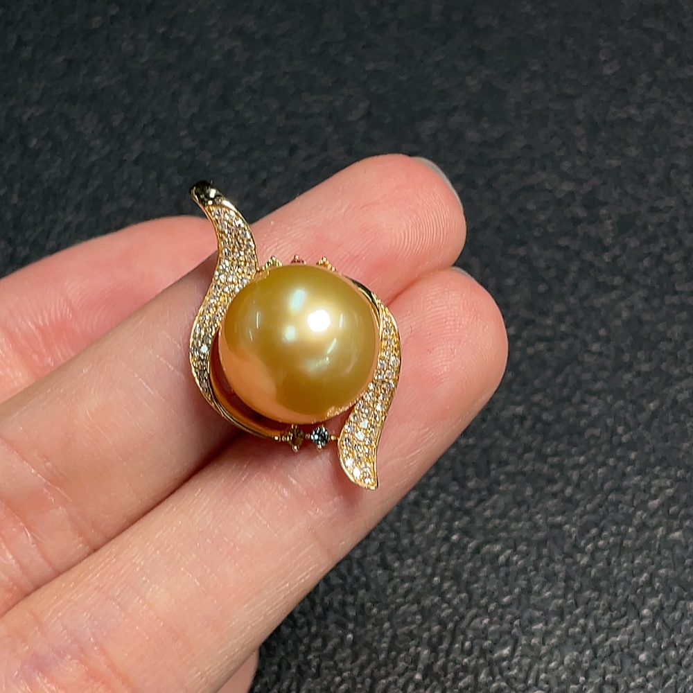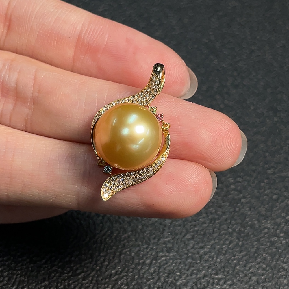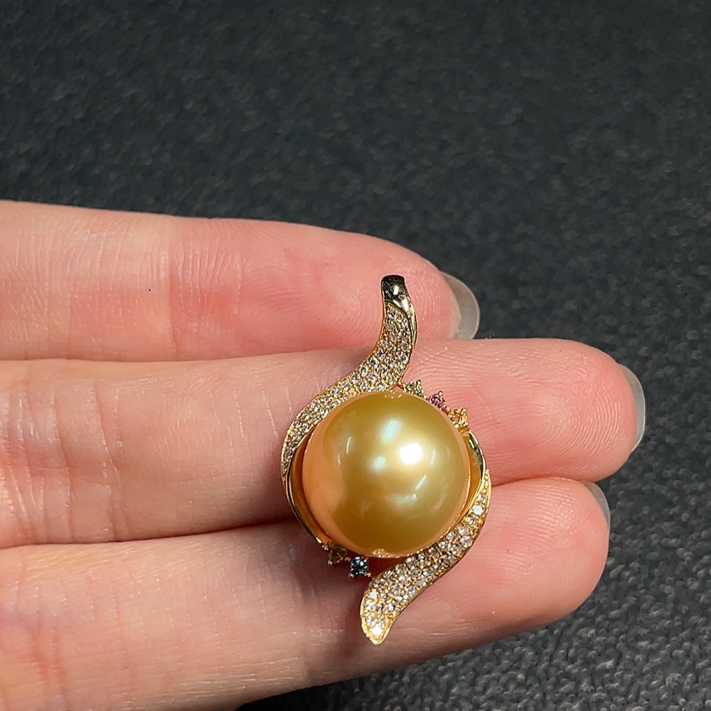 Seawater Pearl Pendant Color Origin Undetermined with Diamond Accents 74% Au Total Weight Approx. 4.38g Size Approx. 12.4mm