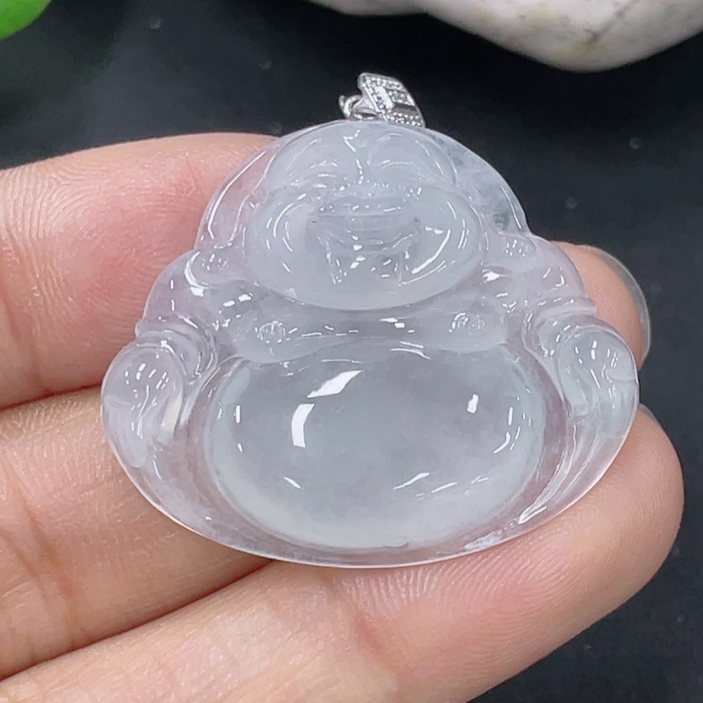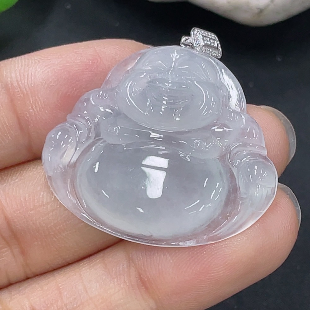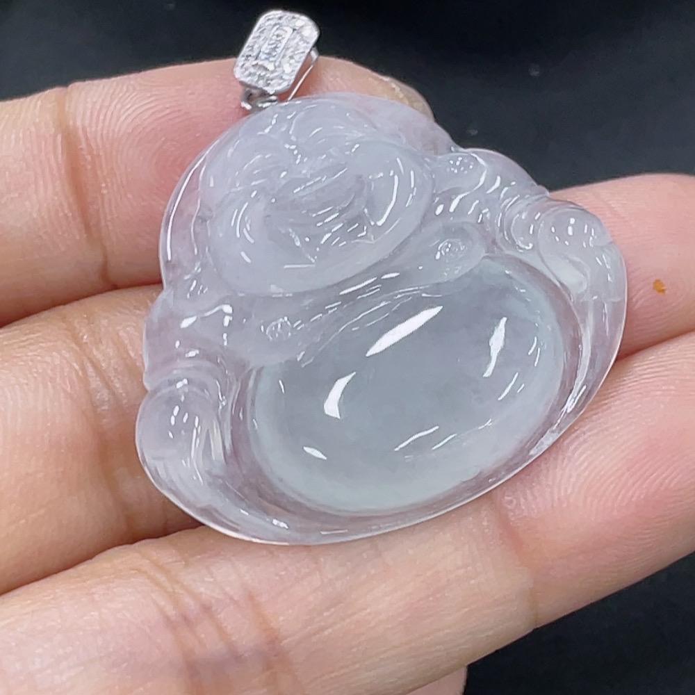 Jadeite Buddha Pendant with 18K Gold and Diamond Accents, Total Weight Approximately 6.52 Grams