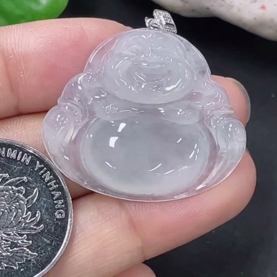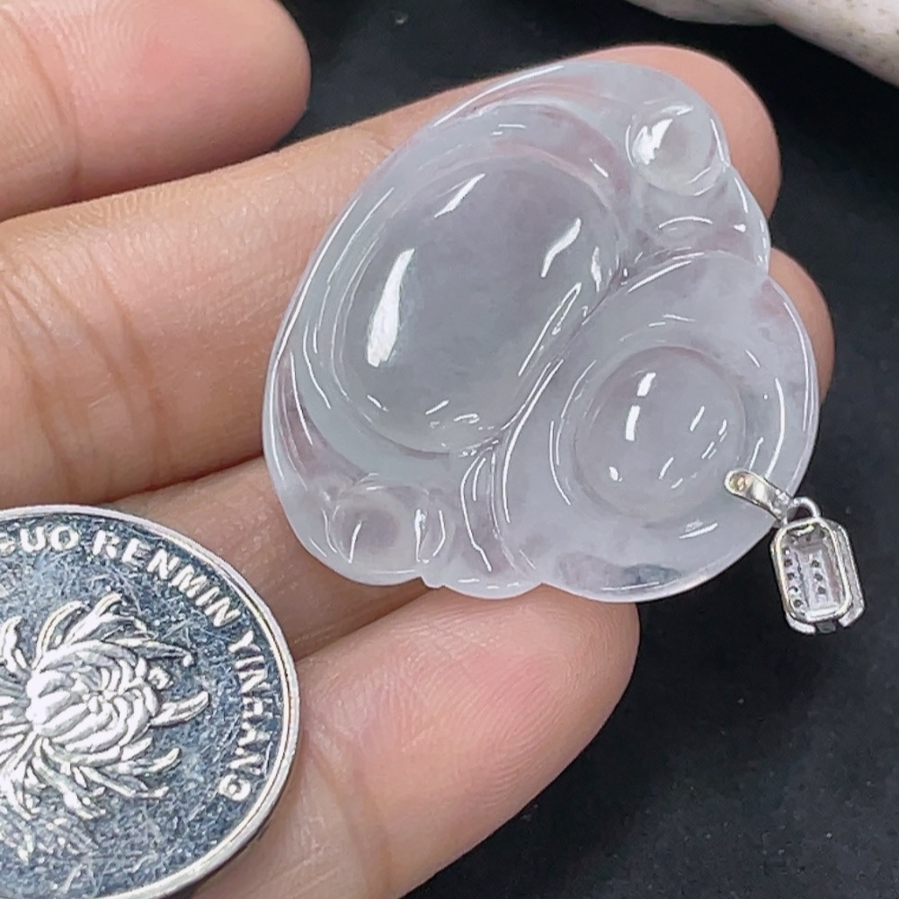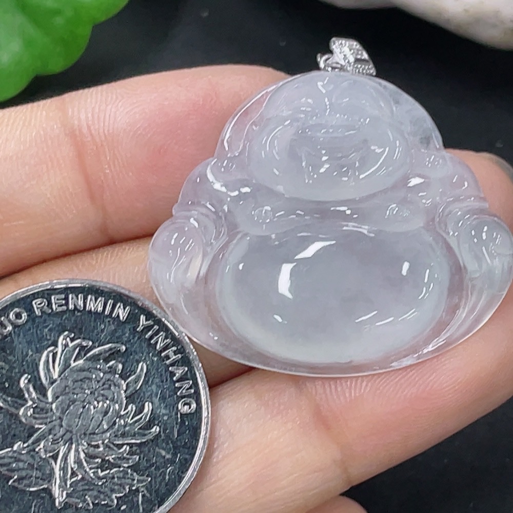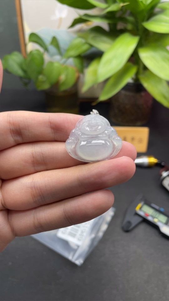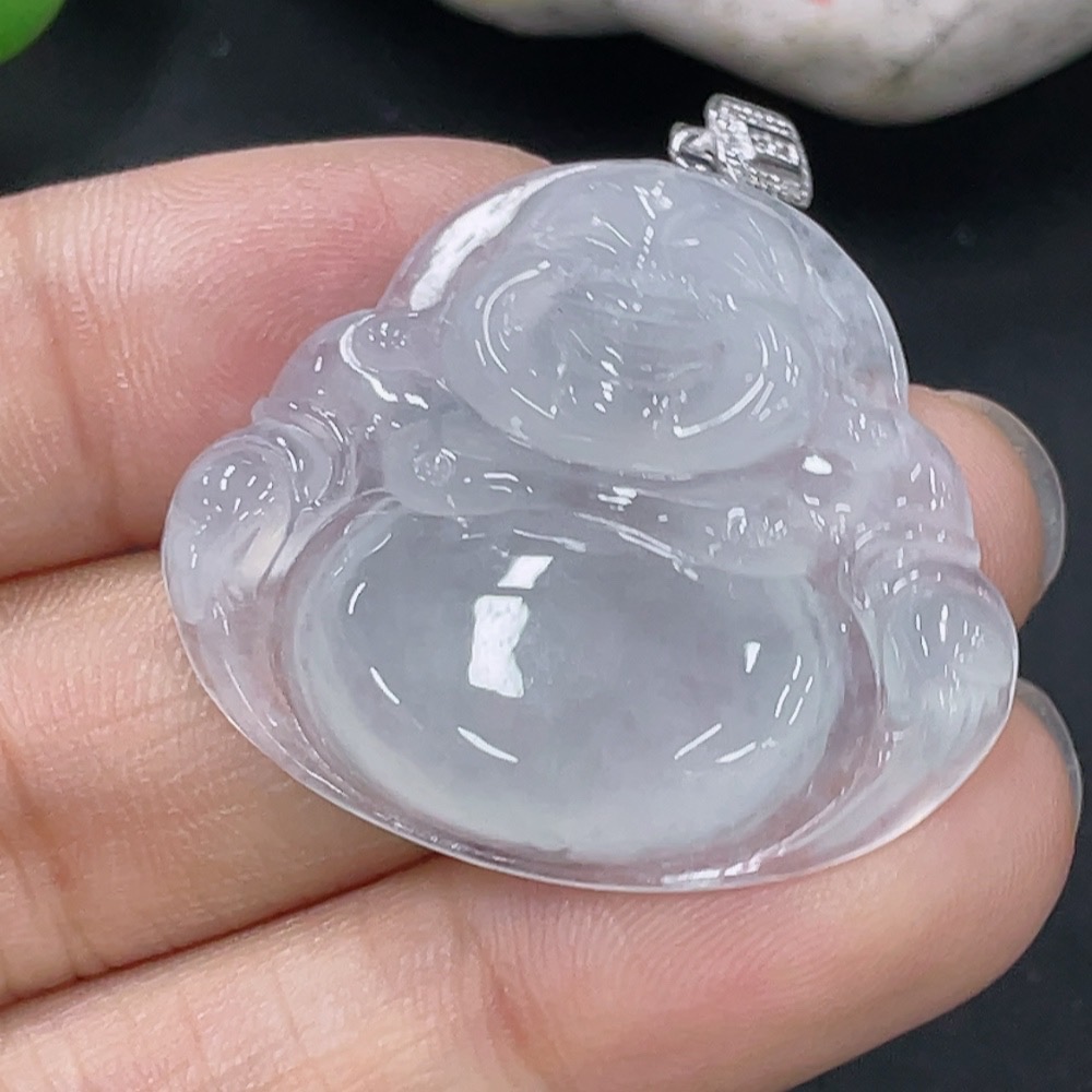 Jadeite Buddha Pendant with 18K Gold and Diamond Accents, Total Weight Approximately 6.52 Grams