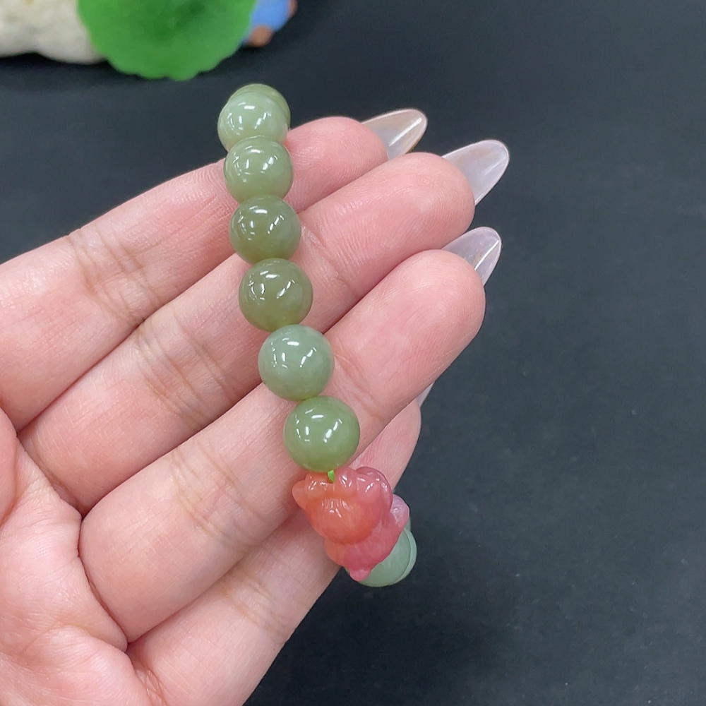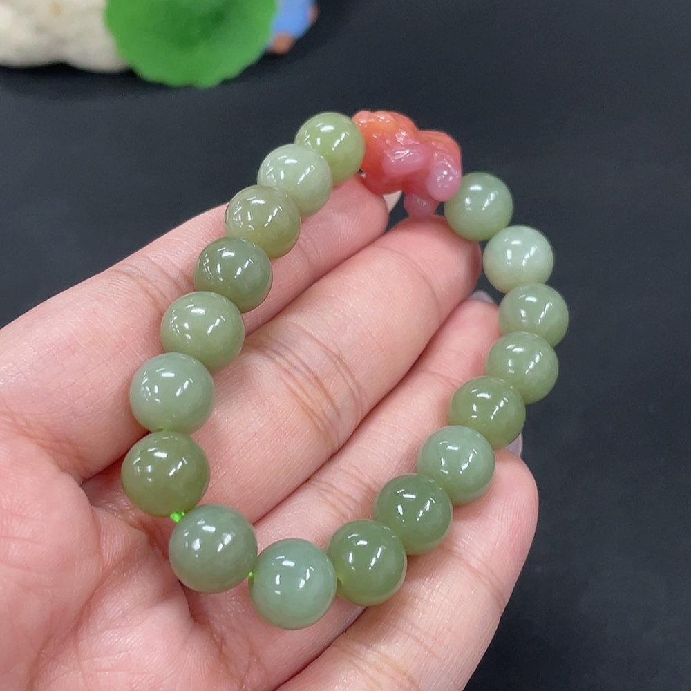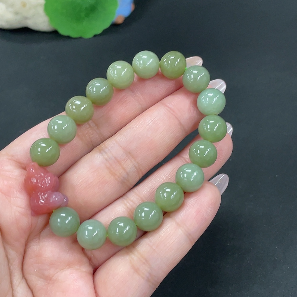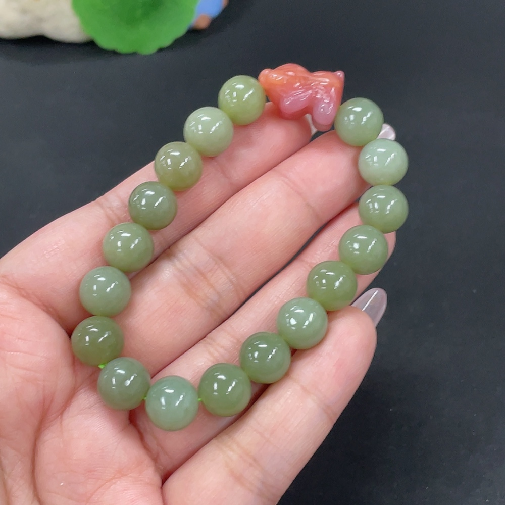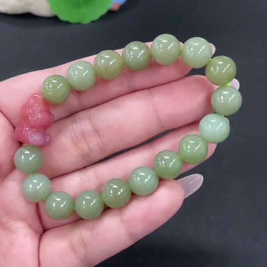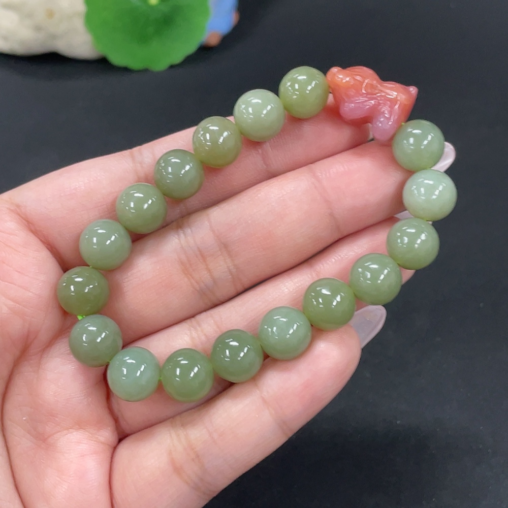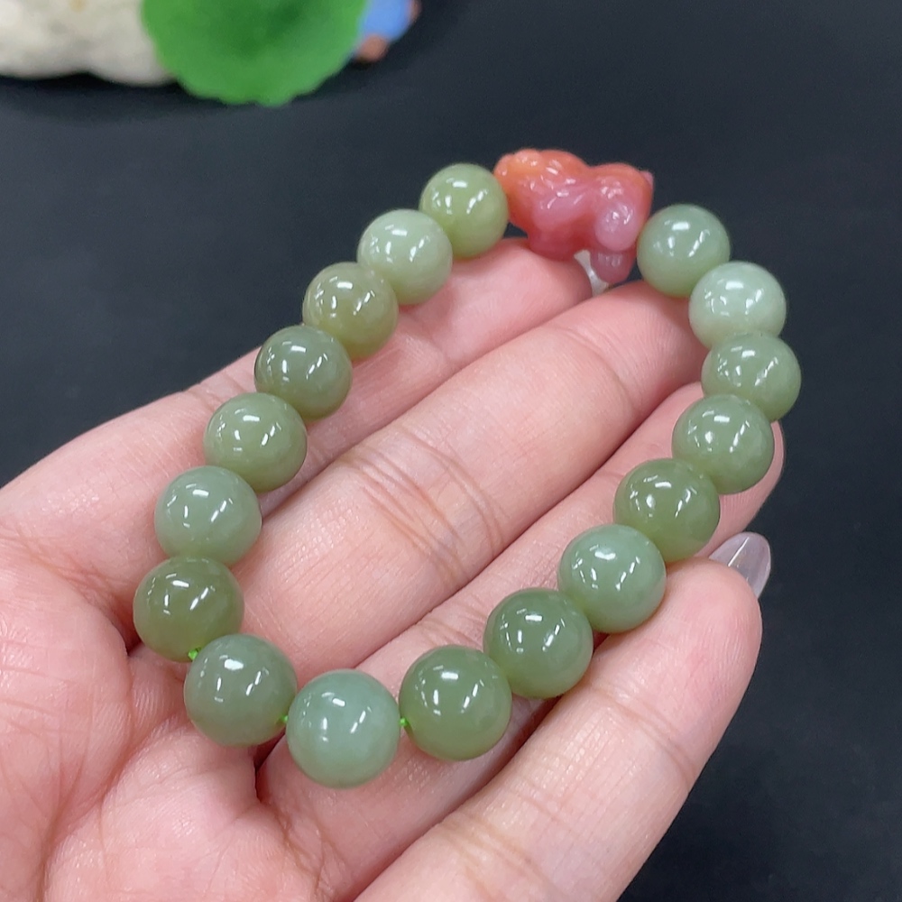 Hetian Jade Bracelet, Approx. 9.7mm, Total Weight Approx. 27.1g, Beads Not Hetian Jade