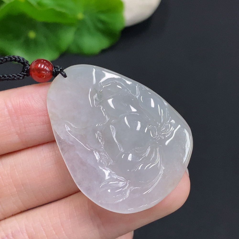 Jadeite Flower of Wealth and Honor Pendant, total weight with cord approx. 12.1g (matching beads non-A)