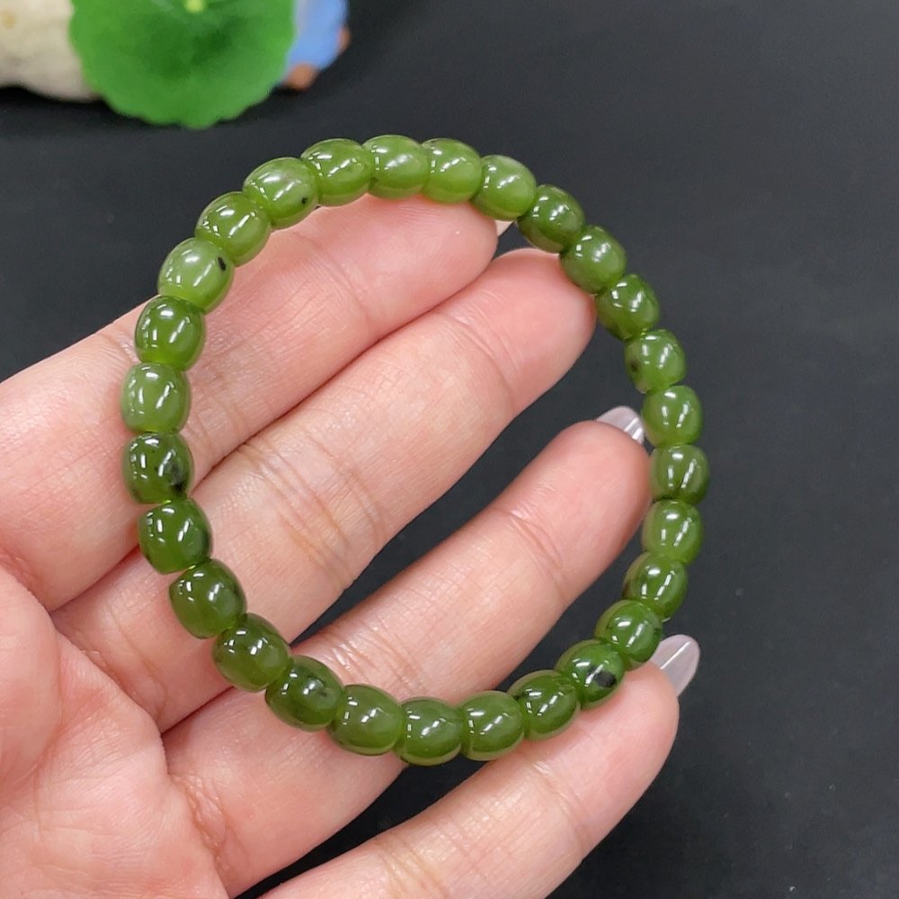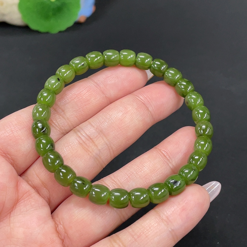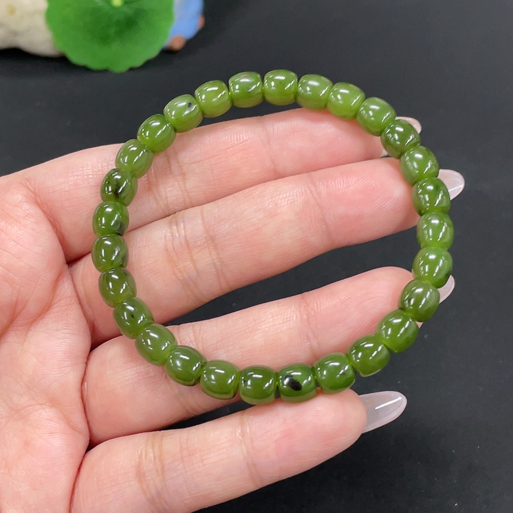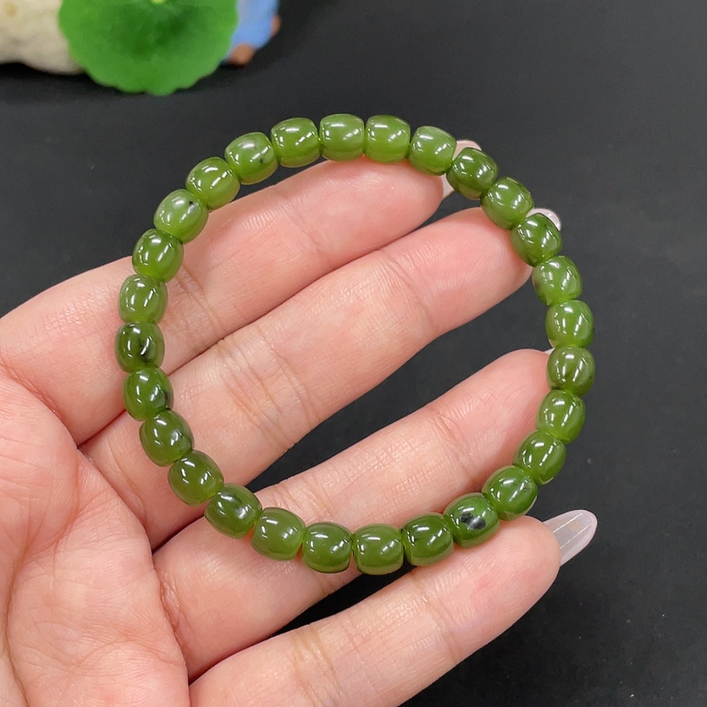 Hetian Jade Jasper Bead Necklace, approx. 6.6mm, total weight approx. 16.3g