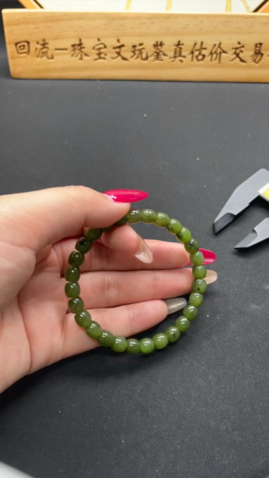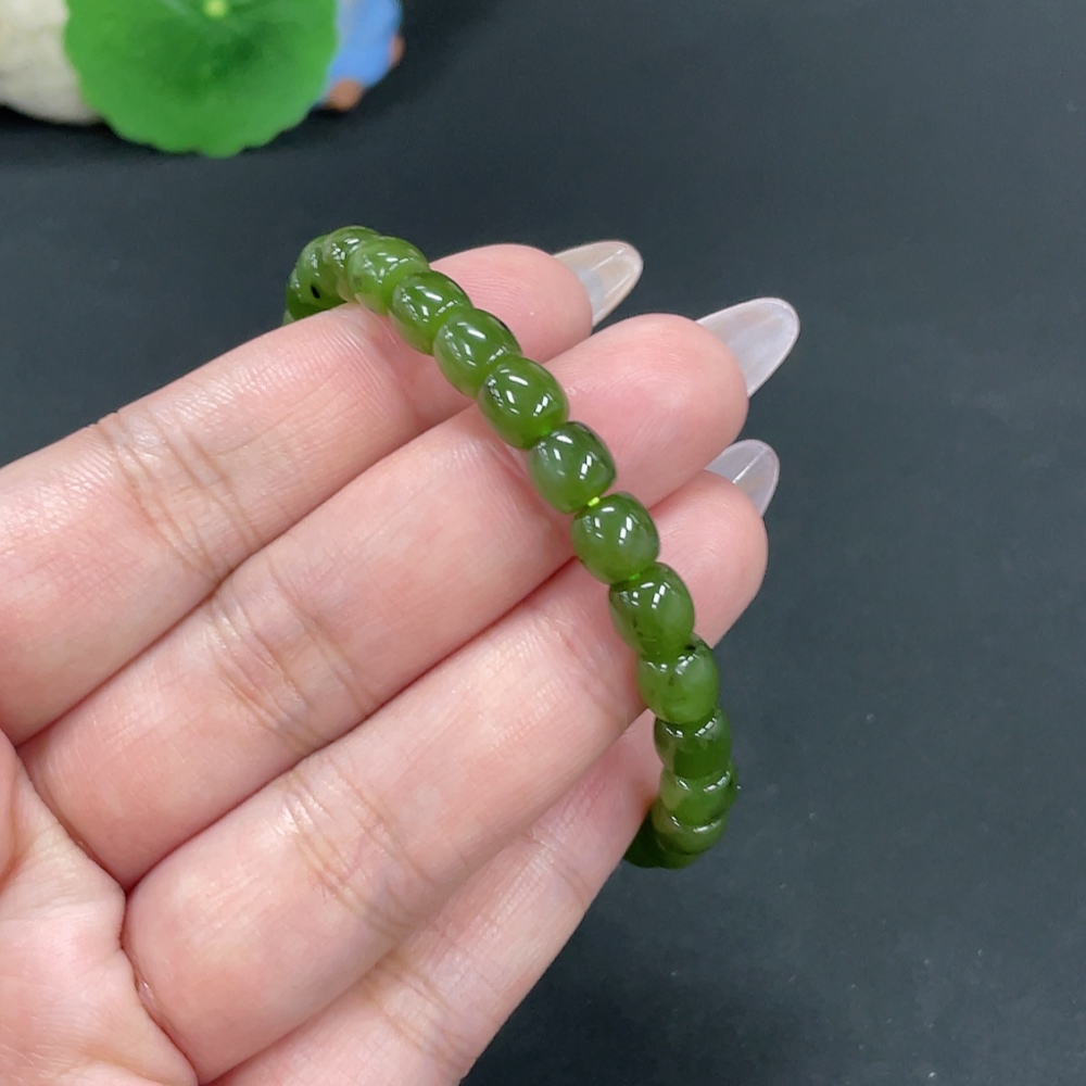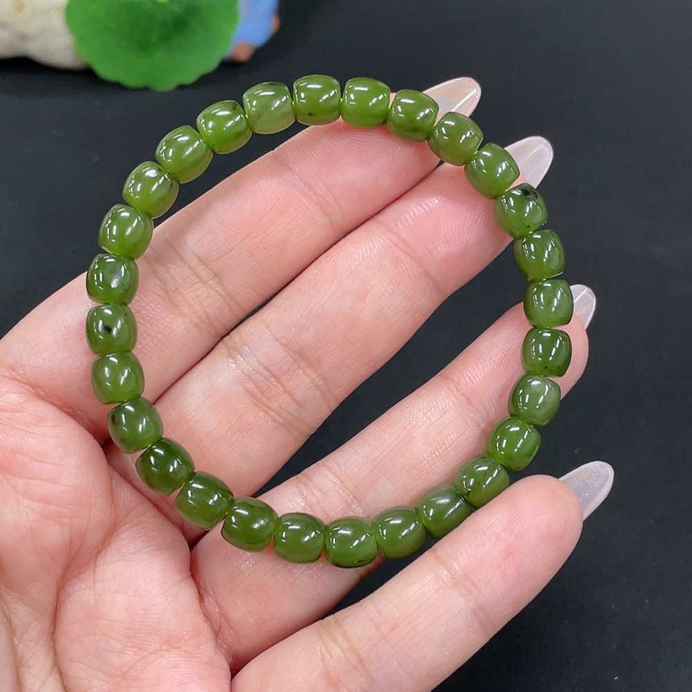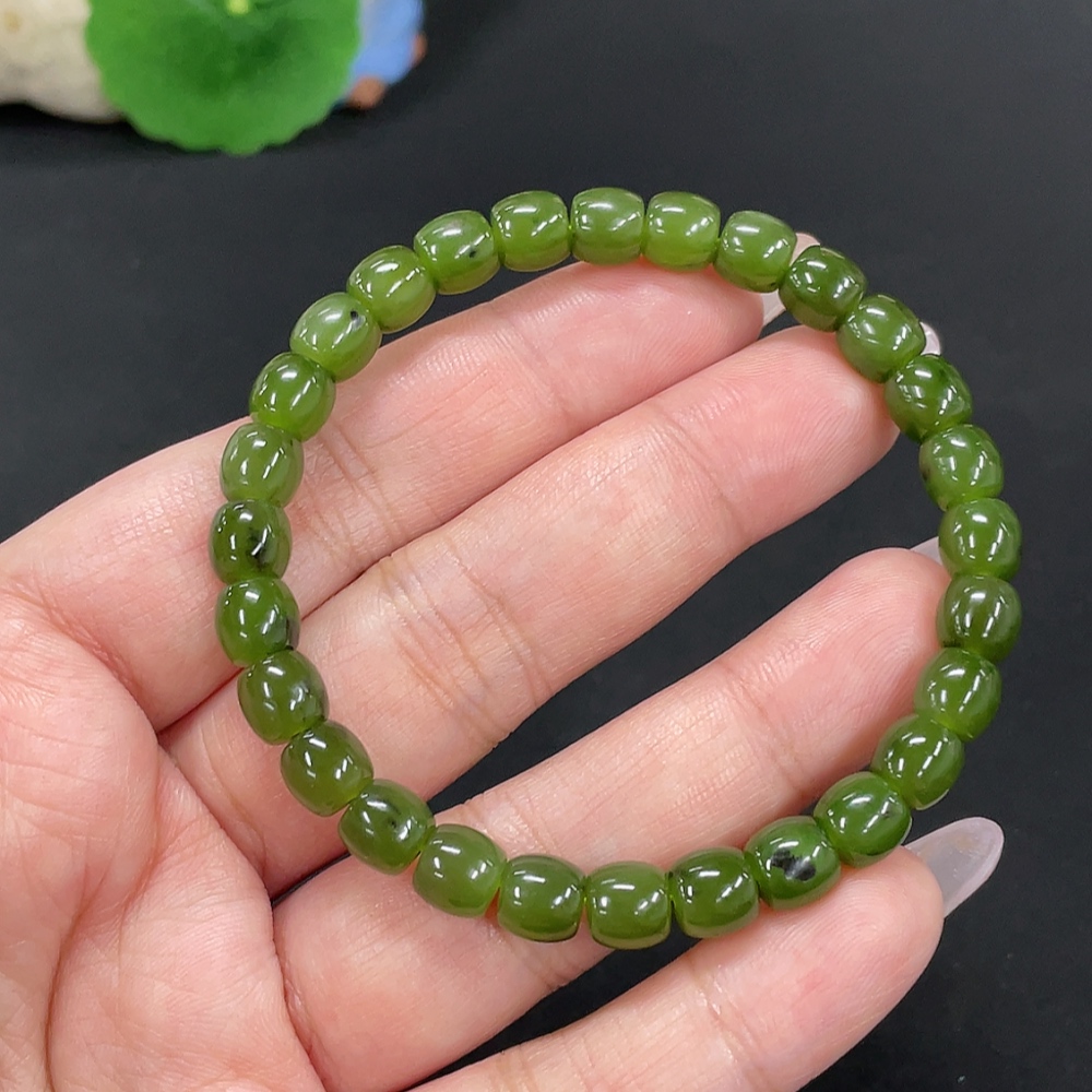 Hetian Jade Jasper Bead Necklace, approx. 6.6mm, total weight approx. 16.3g