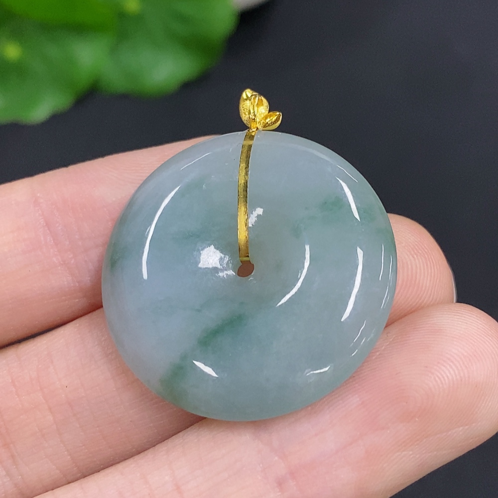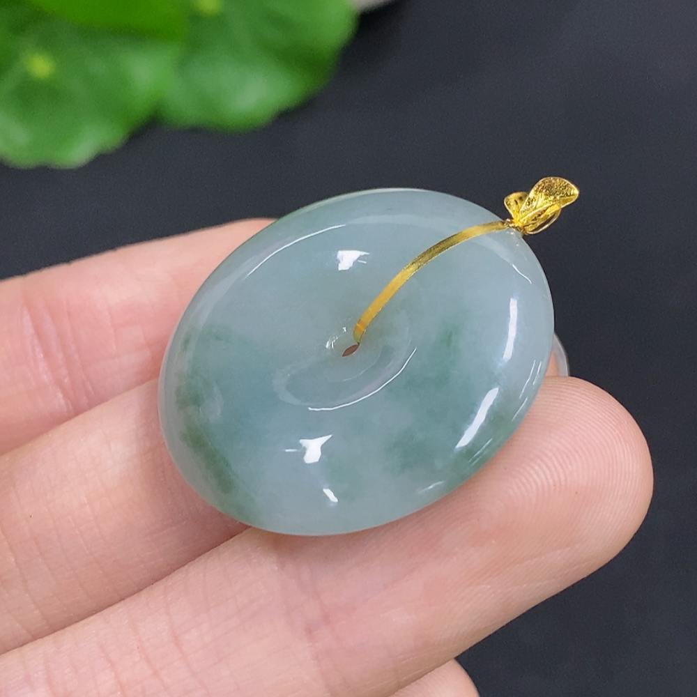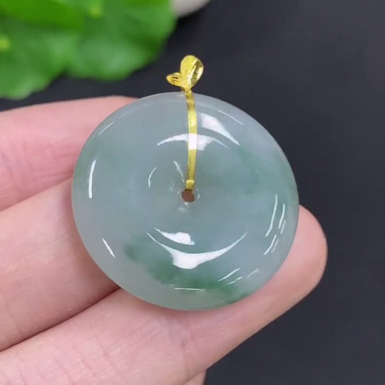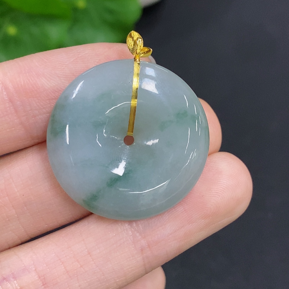 Jadeite Safety Pendant with 18k Gold Clasp, Total Weight Approx. 8.97g