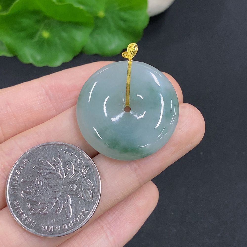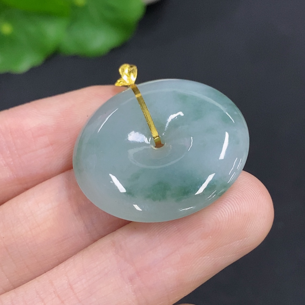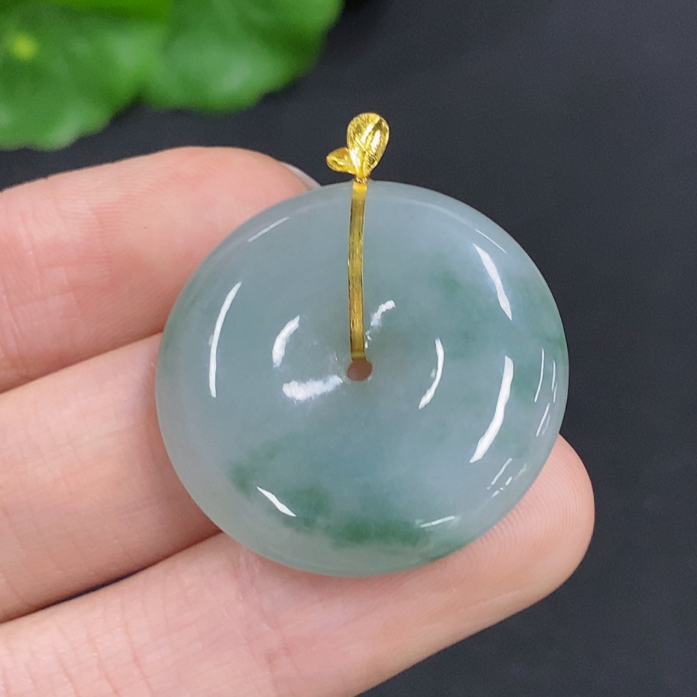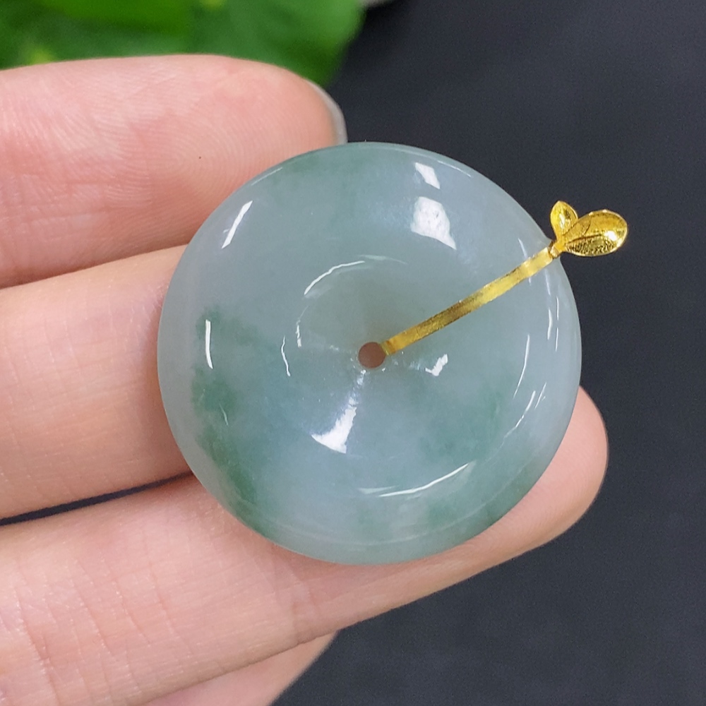 Jadeite Safety Pendant with 18k Gold Clasp, Total Weight Approx. 8.97g